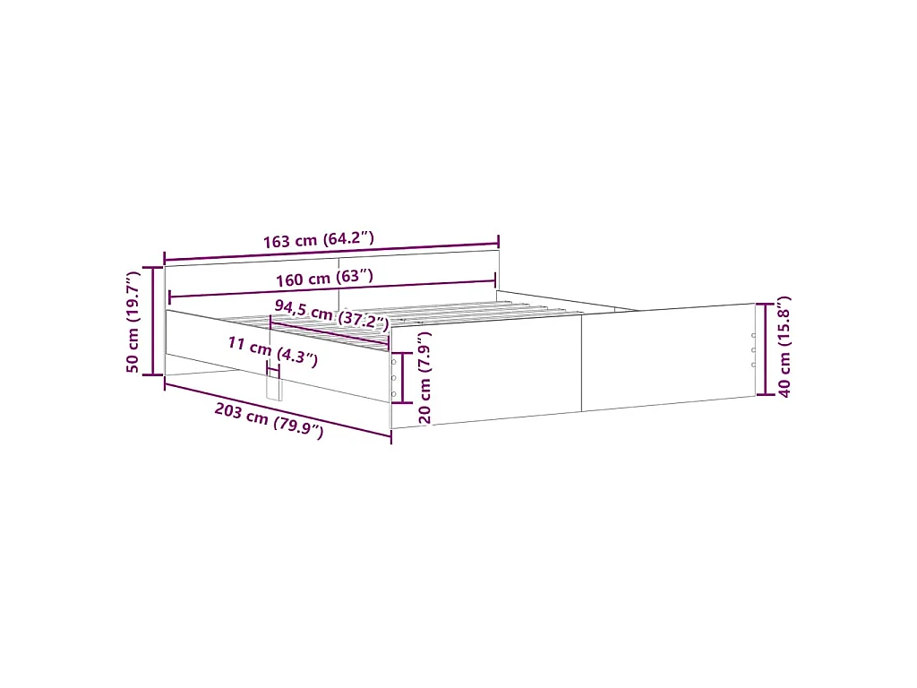 Cadre de lit sans matelas chêne marron 160x200 cm