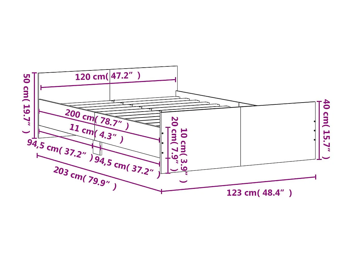 Cadre de lit tête de lit et pied de lit chêne sonoma 120x200