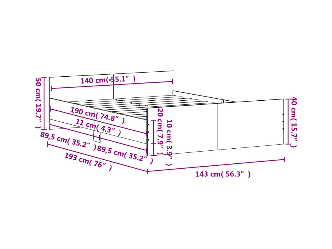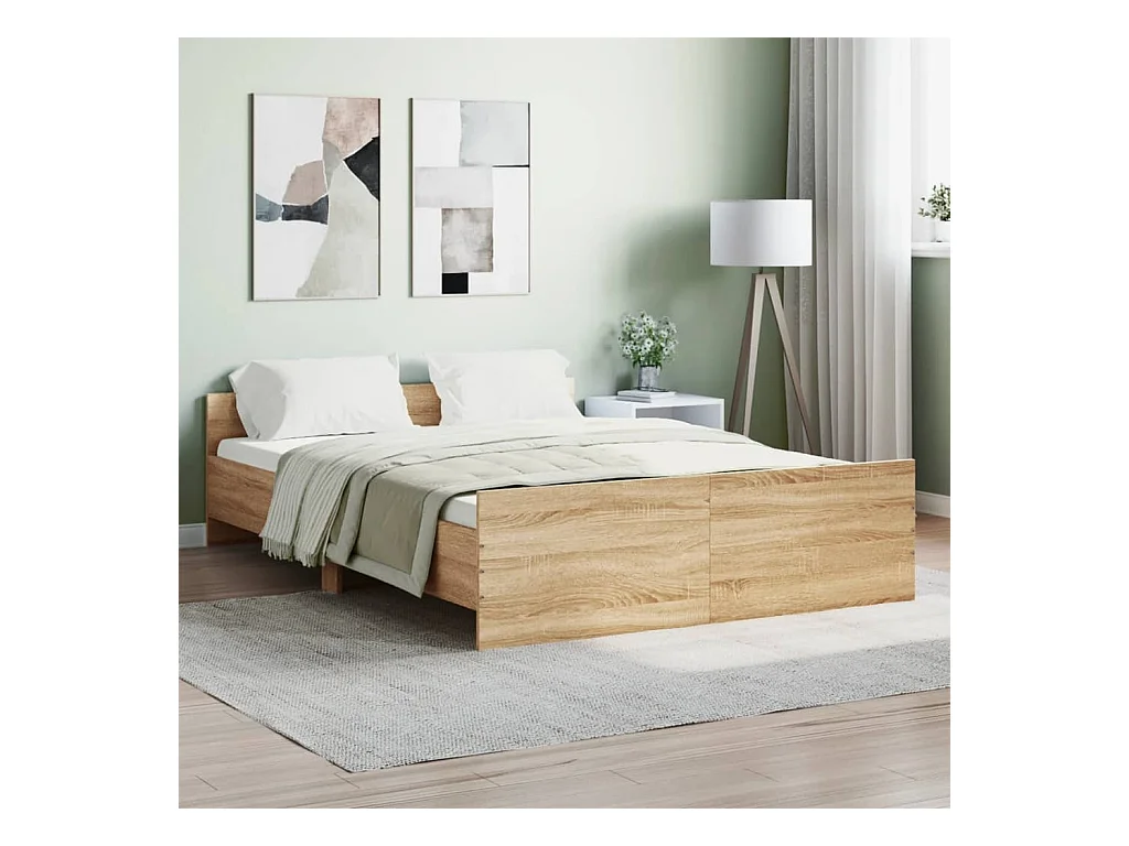 Cadre de lit tête de lit et pied de lit chêne sonoma 140x190