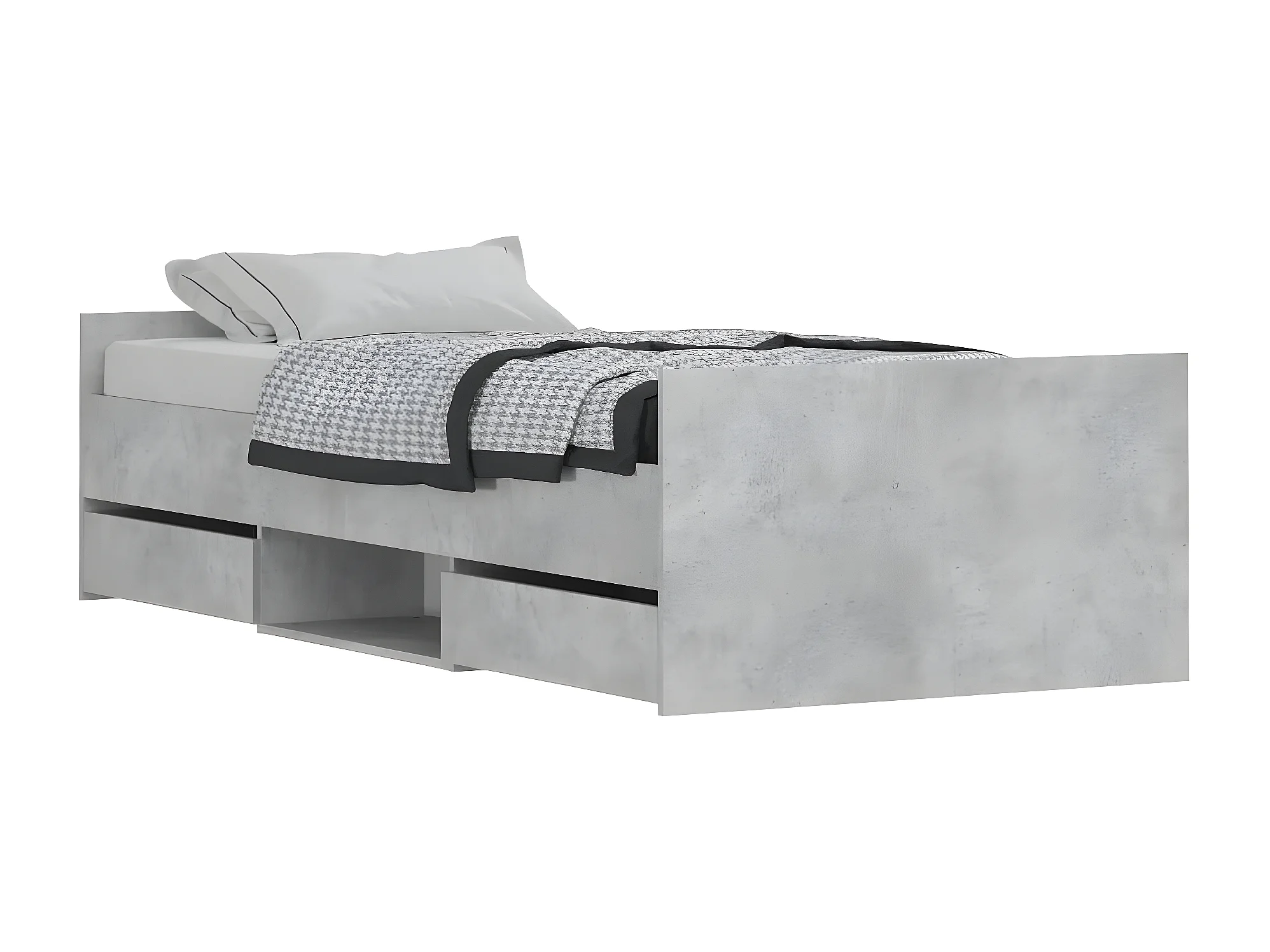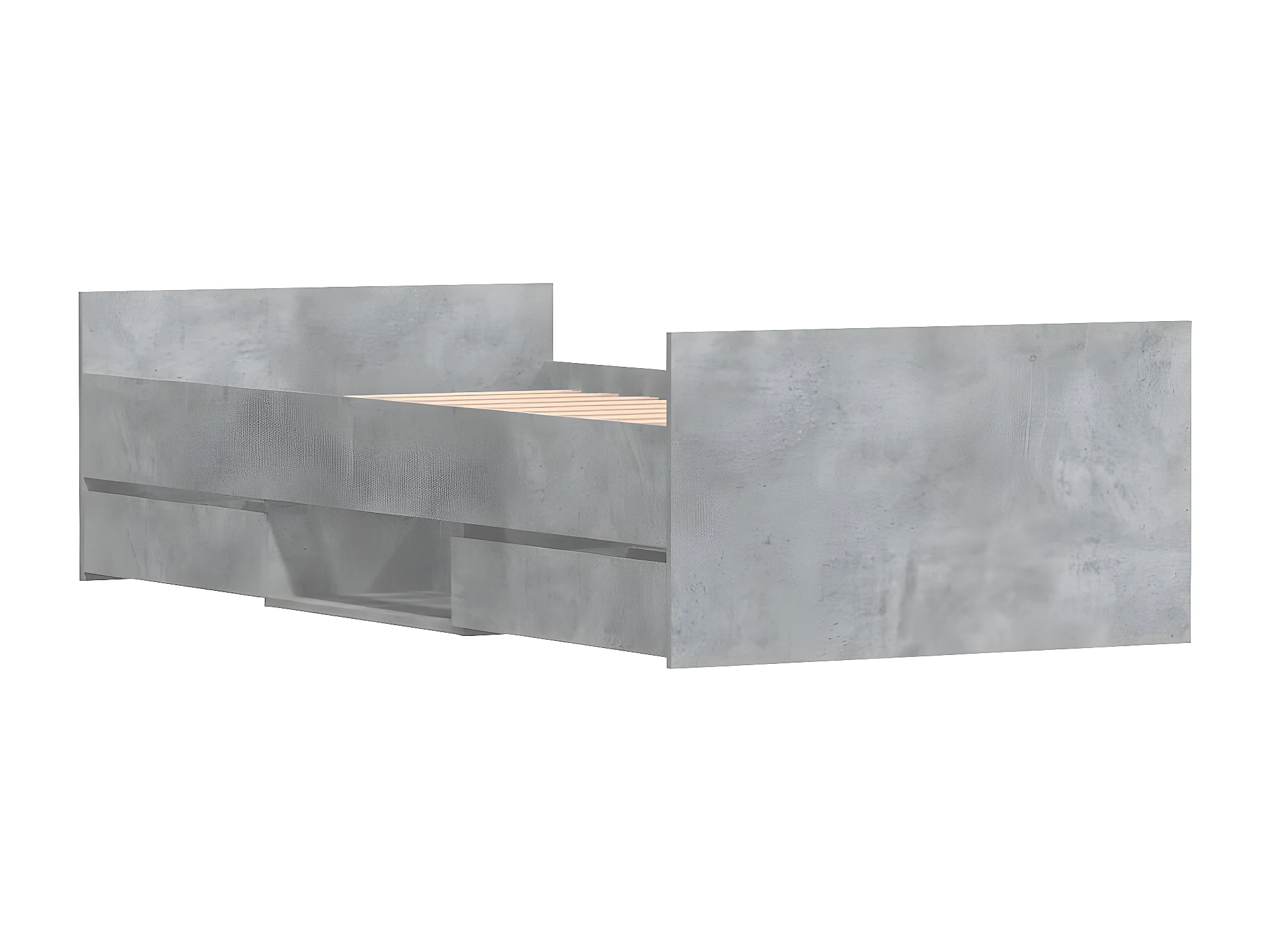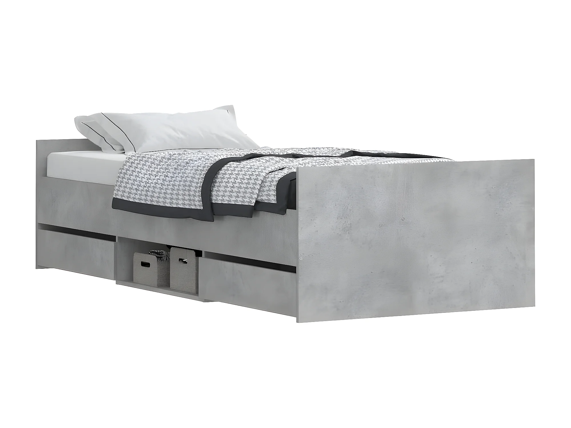 Cadre de lit tête de lit et pied de lit gris béton 90x200