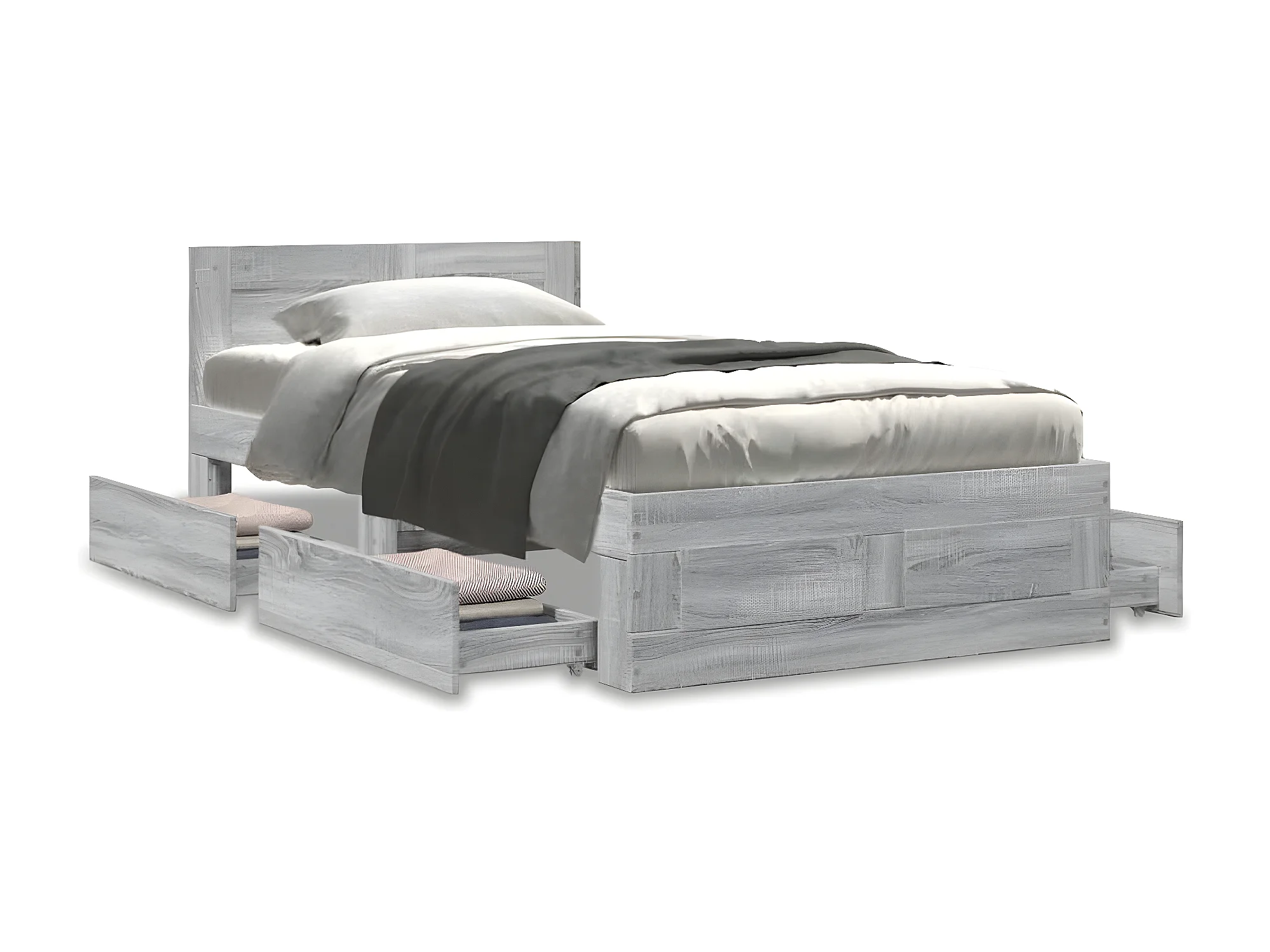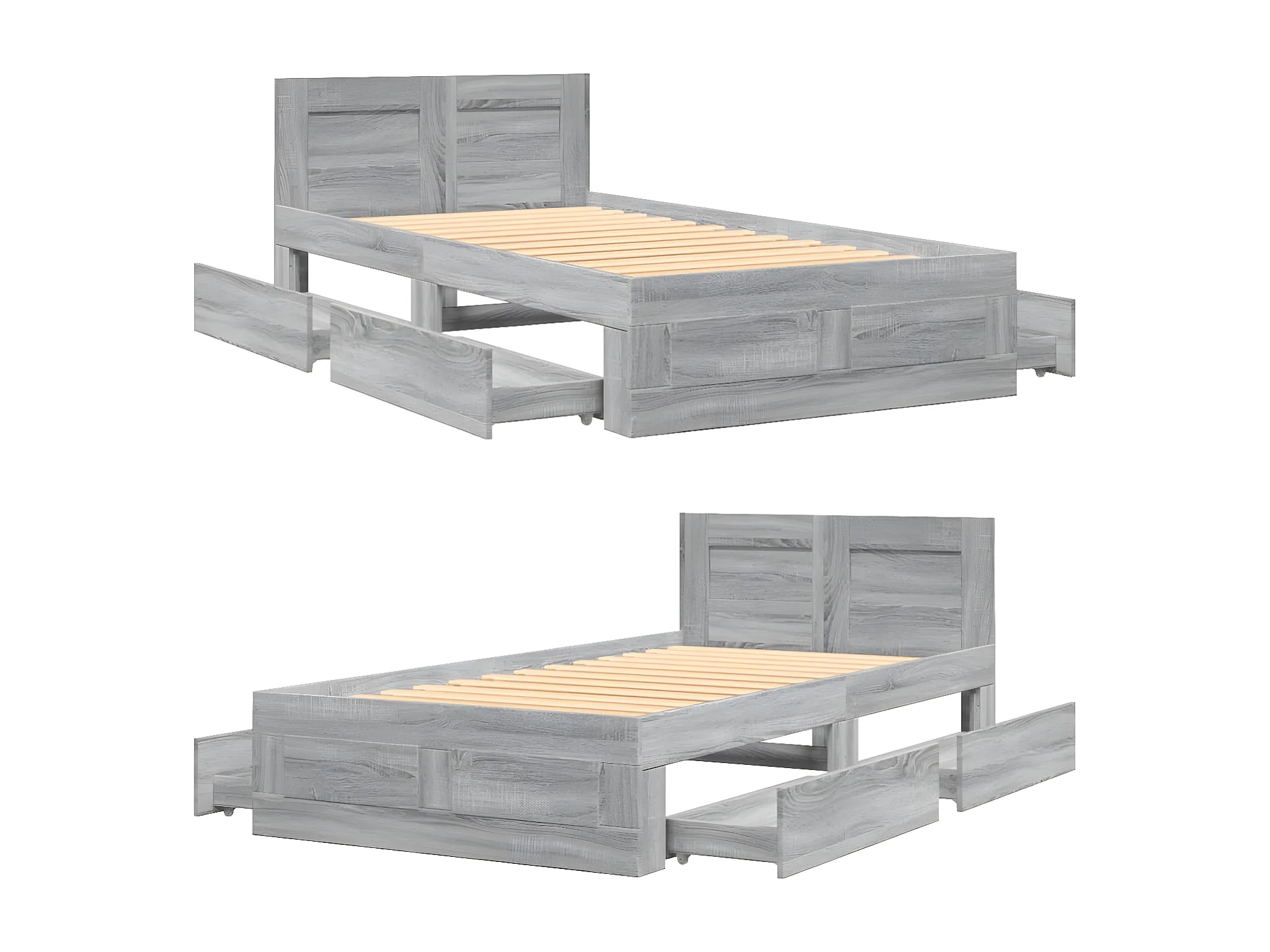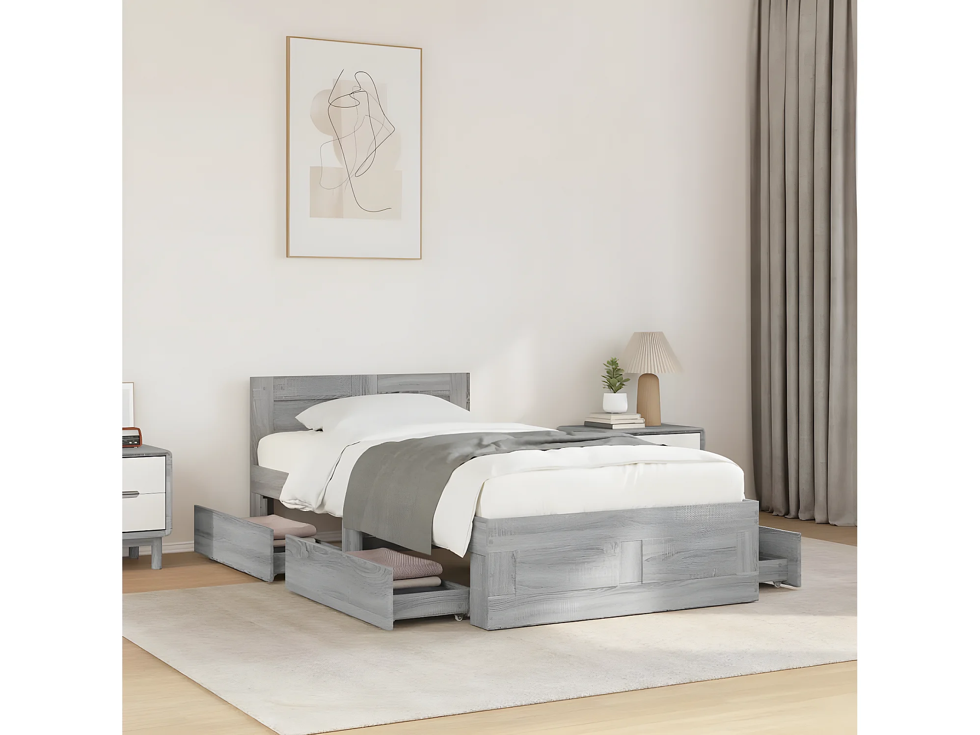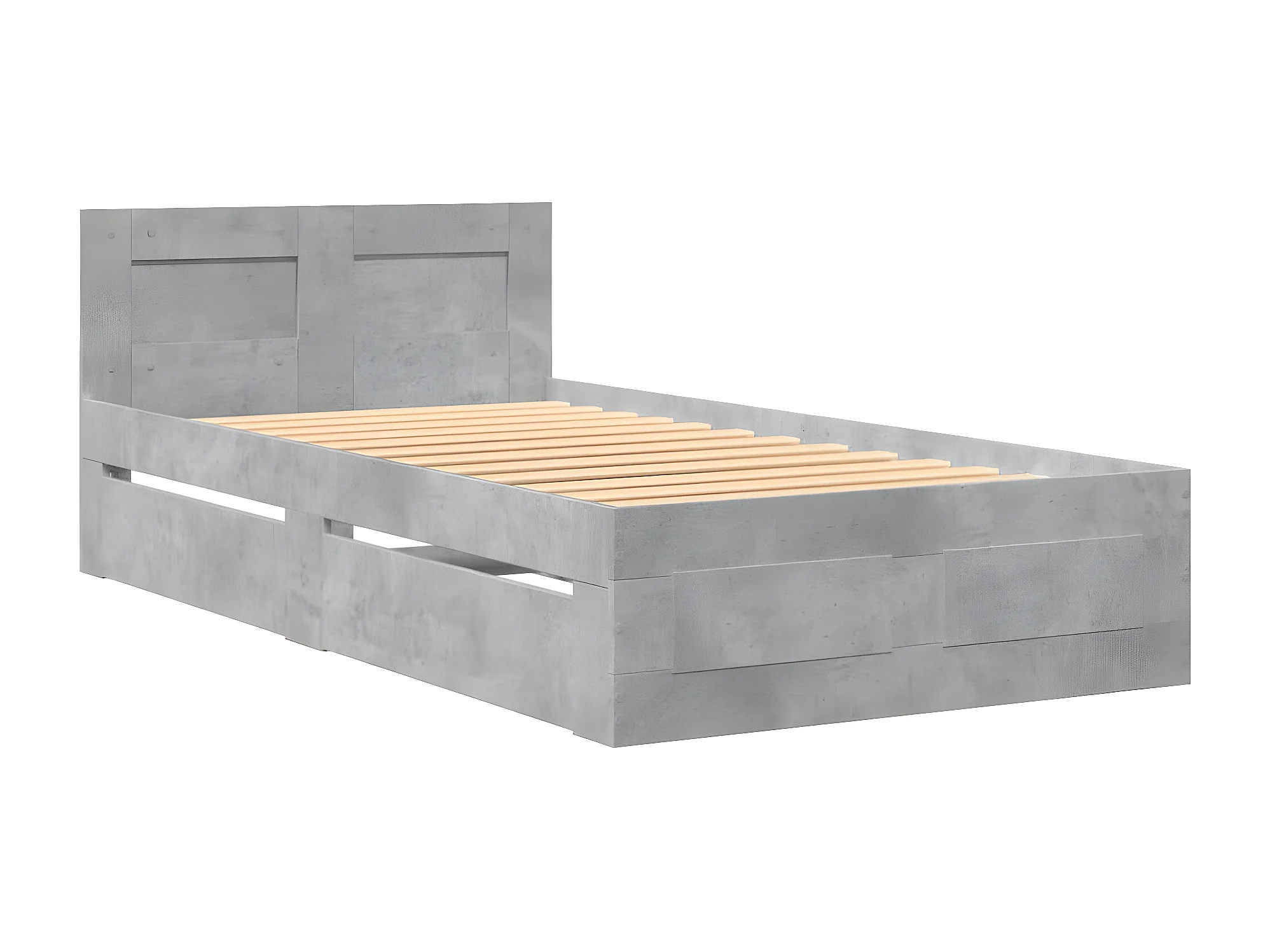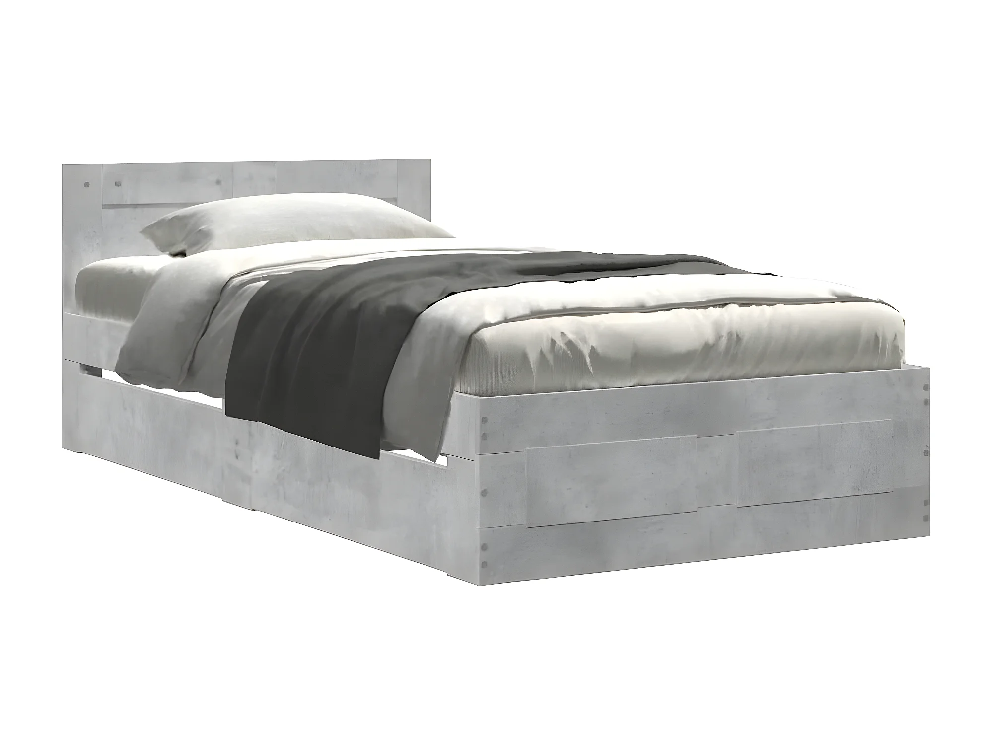 Cadre de lit tête de lit gris béton 90x190 cm bois ingénierie