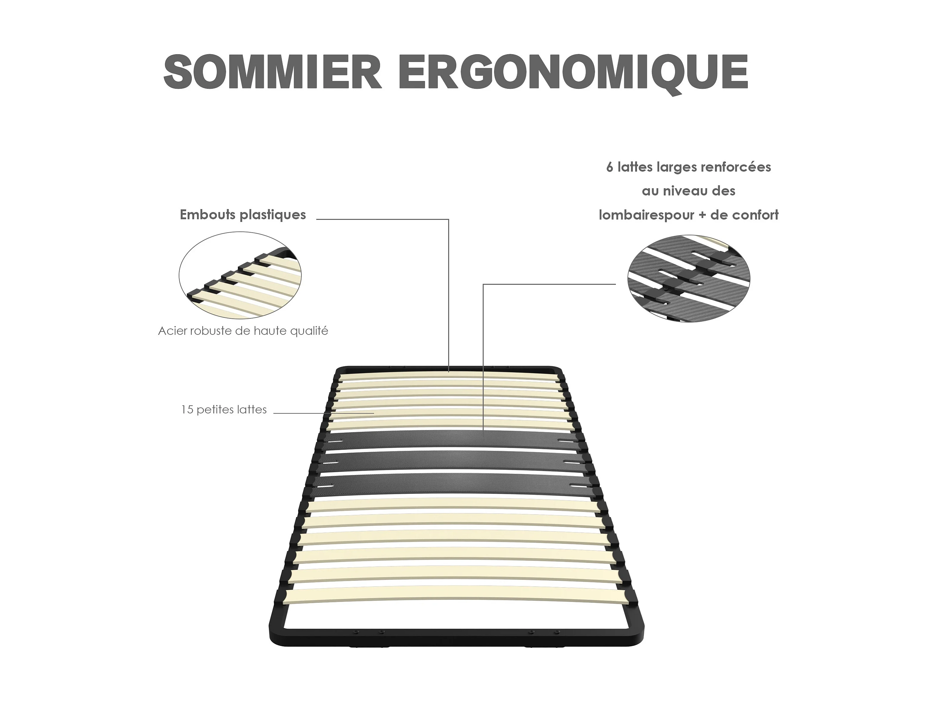 Sommier à lattes 140x190 | 2 rangées de 14 lattes | 9 pieds | Montage facile