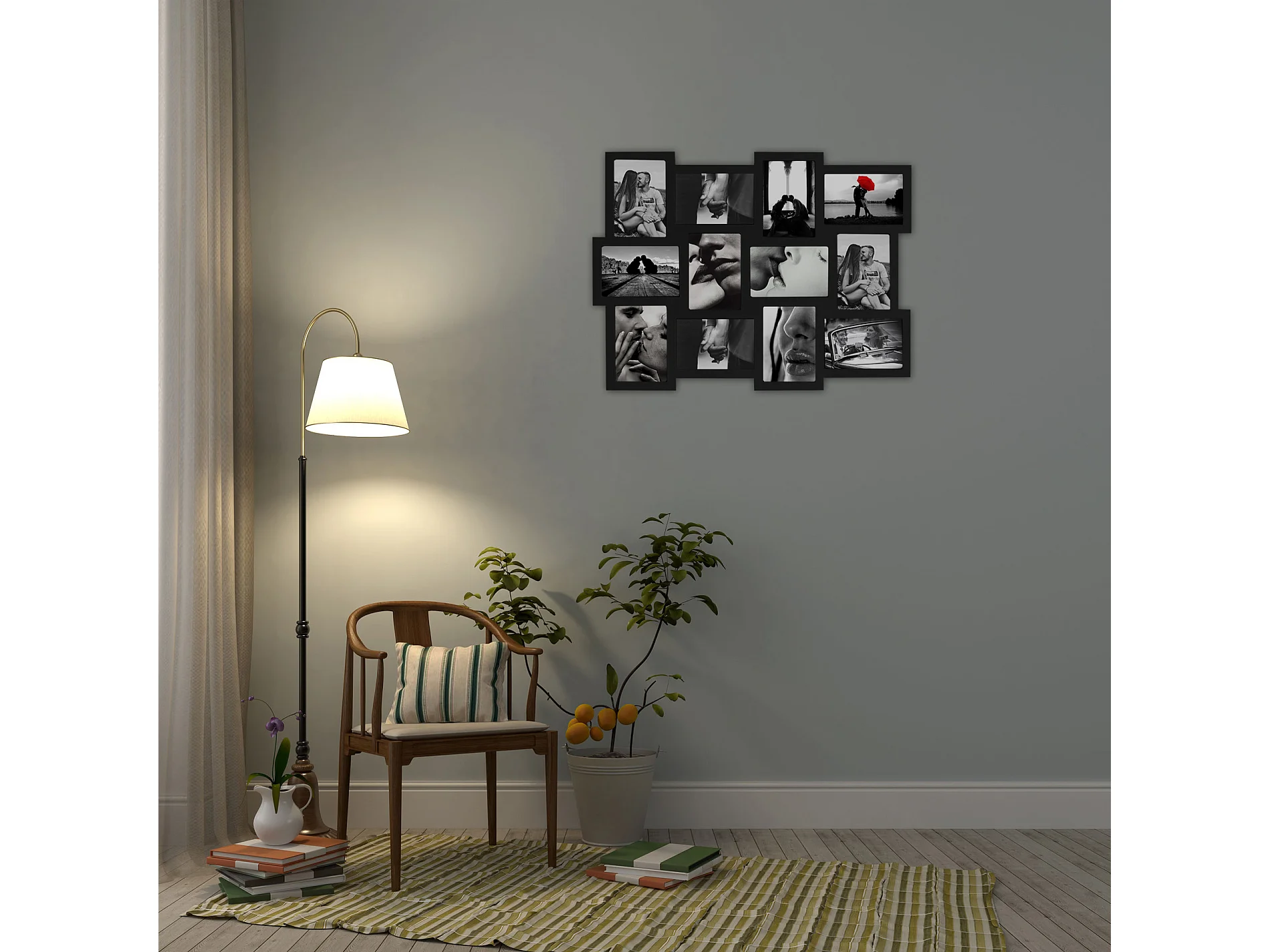 Cadre Photo Collage Rectangle 12 Imagerie Bois Noir 47x60x1,2