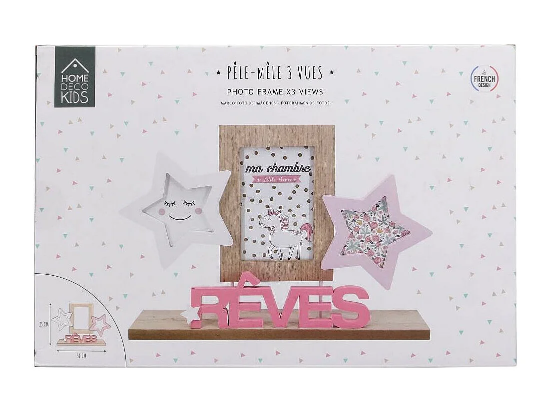 Pêle-Mêle 3 Photos "Rêves Fille" 36cm Rose