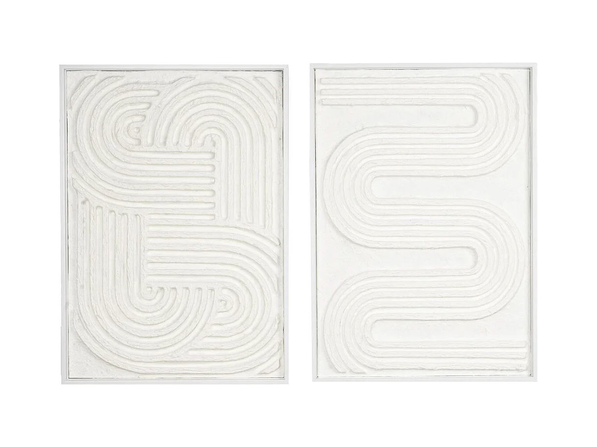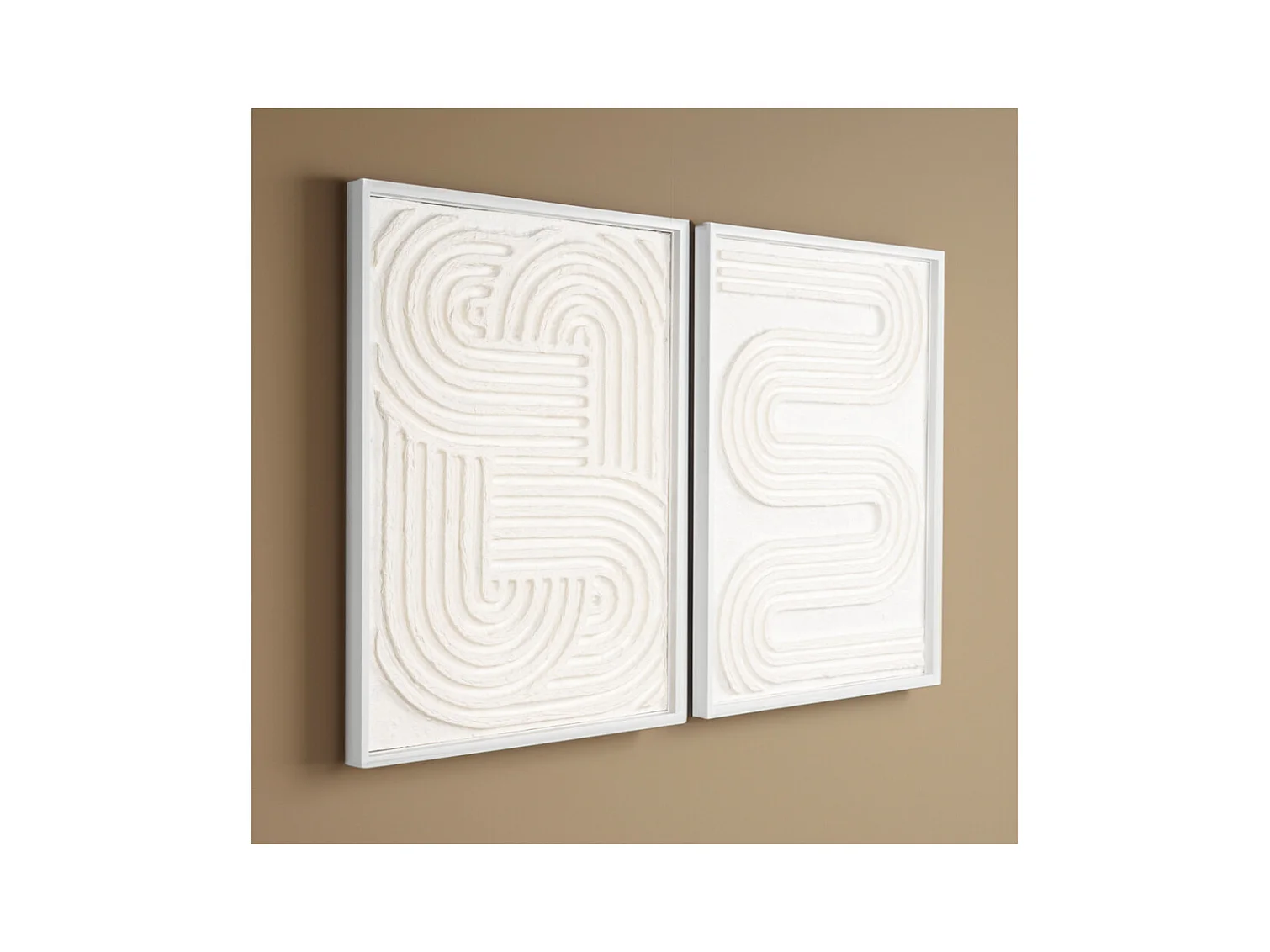 Cadres en bois blanc motifs abstraits papier maché (Lot de 2)