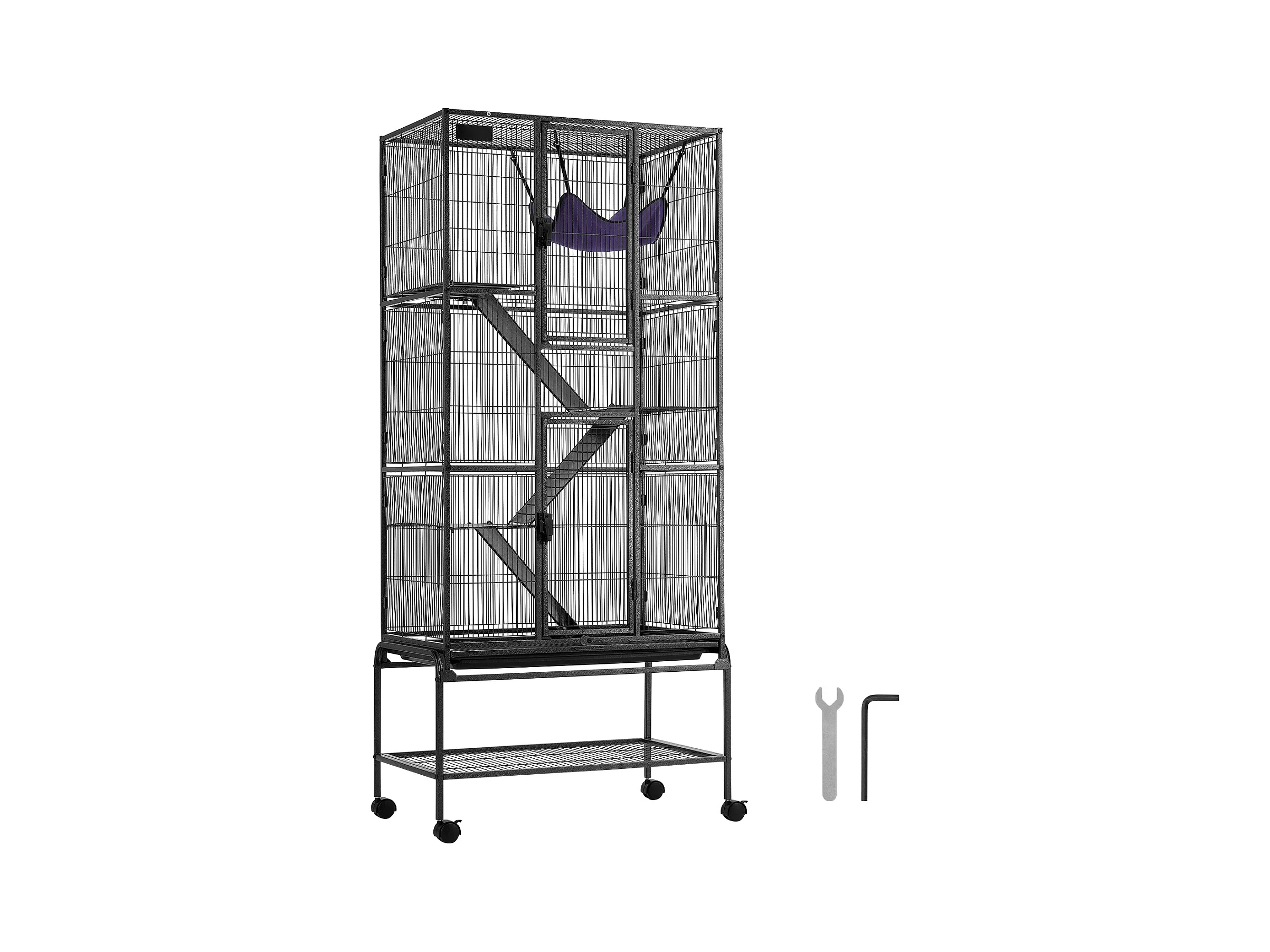 Cage à Furet SucceBuy en Métal, à 4 Niveaux de 175 cm avec Plateau et 3 Rampes pour Petits Animaux