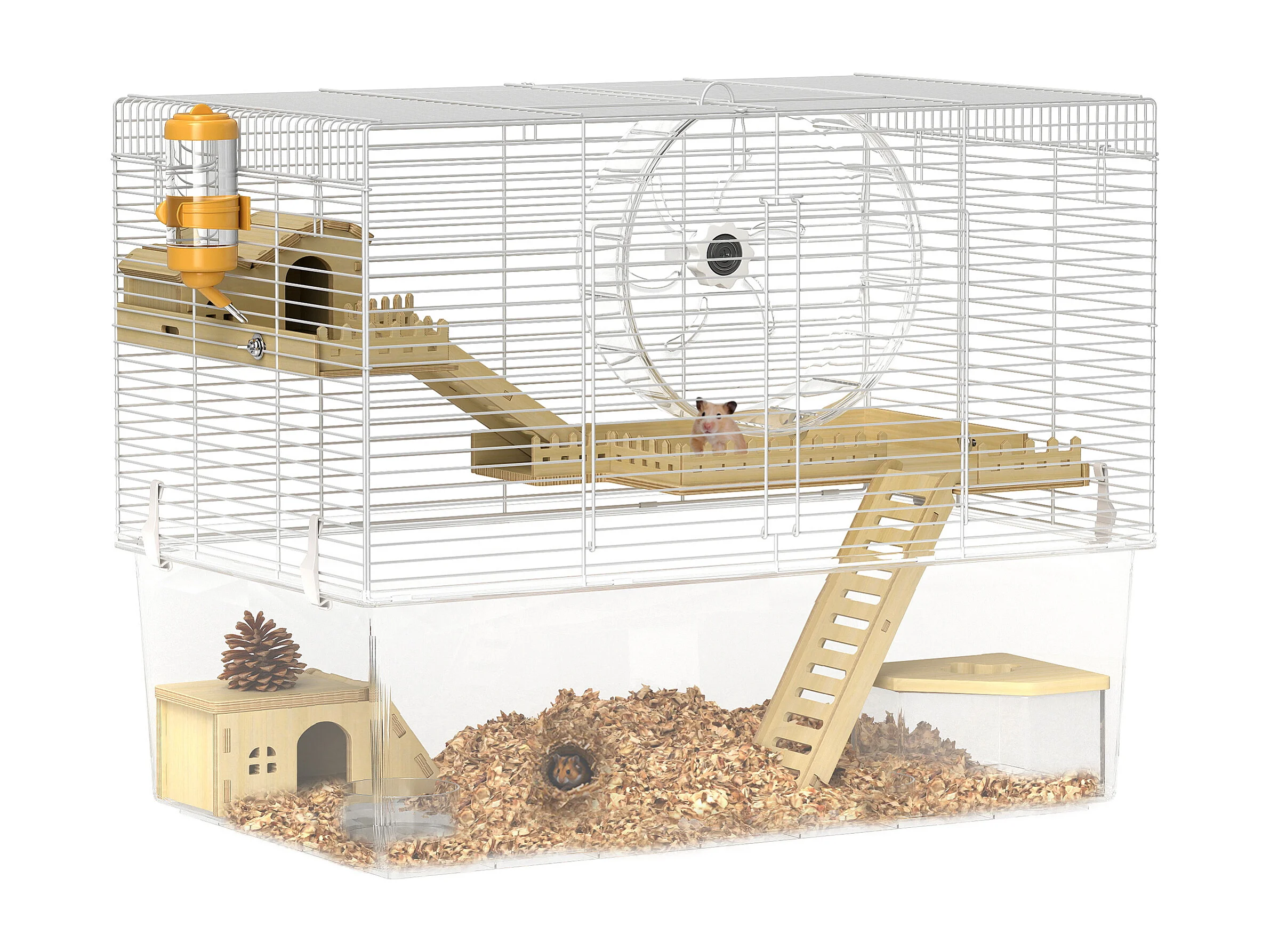 Cage à hamster à 3 niveaux avec roue d'exercice, plateau, 59 x 35,5 x 47 cm, blanc
