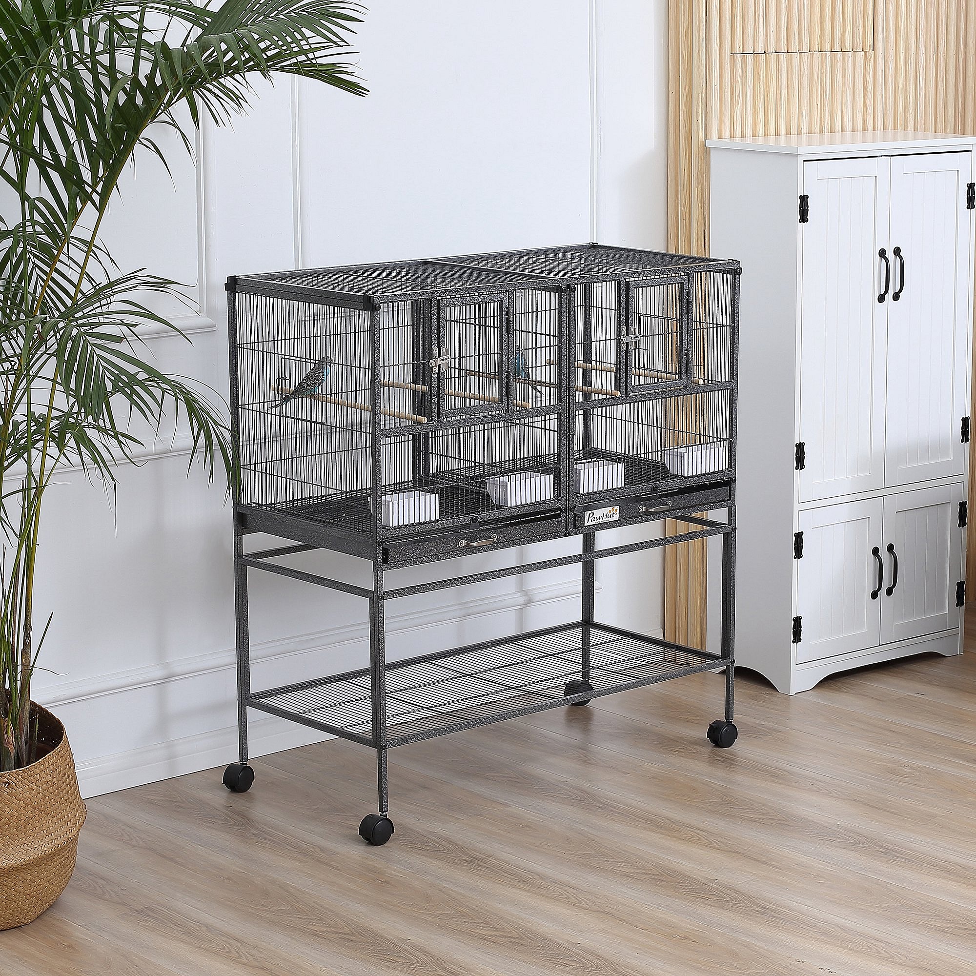 PawHut Cage à Oiseaux Portable avec 4 Mangeoires et 4 Perchoirs Pratique 81 x 48 x 163 cm Noir et Gris