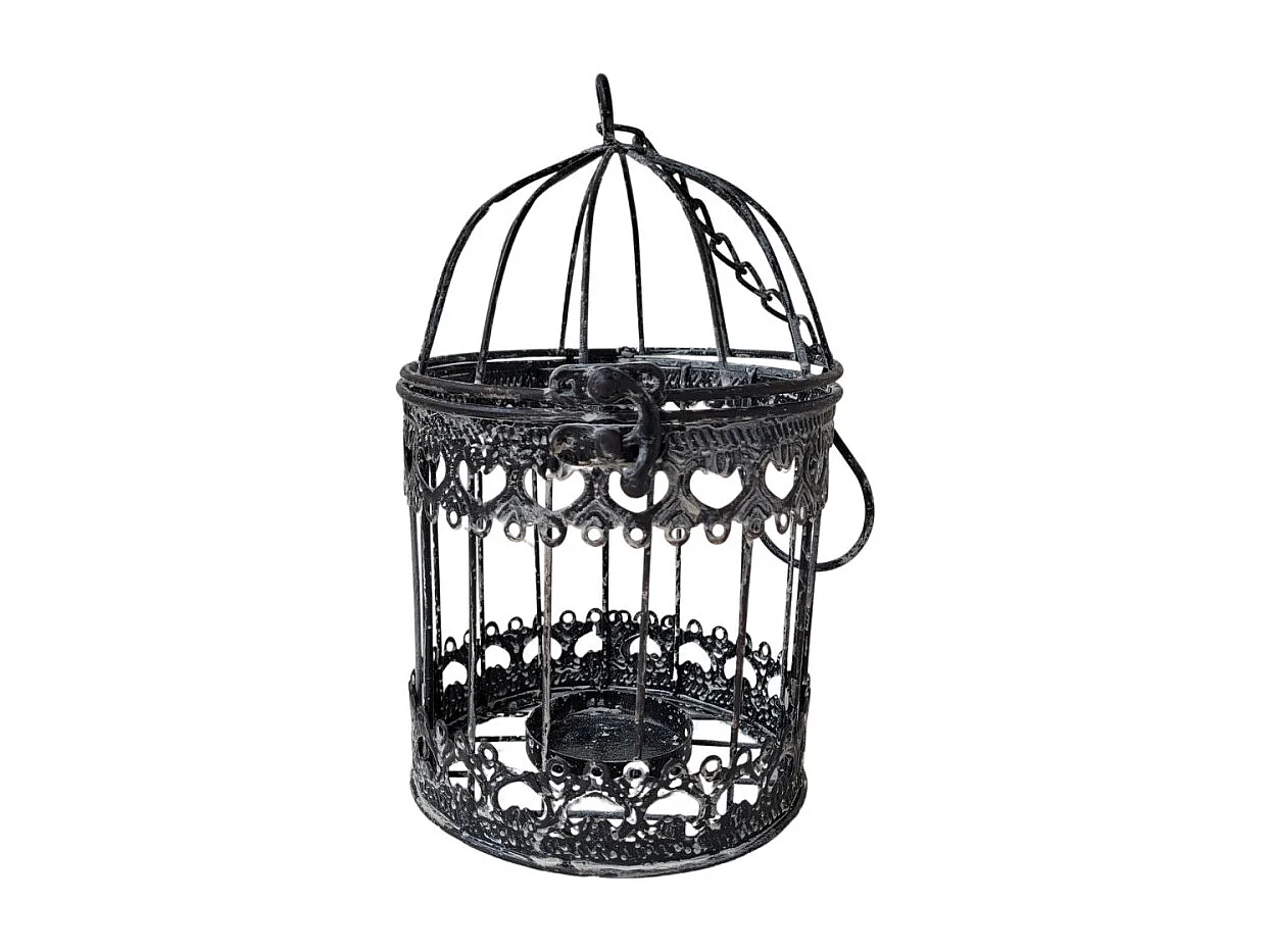 Cage à oiseaux décorative ancienne métal noir blanc Ø.13x21cm