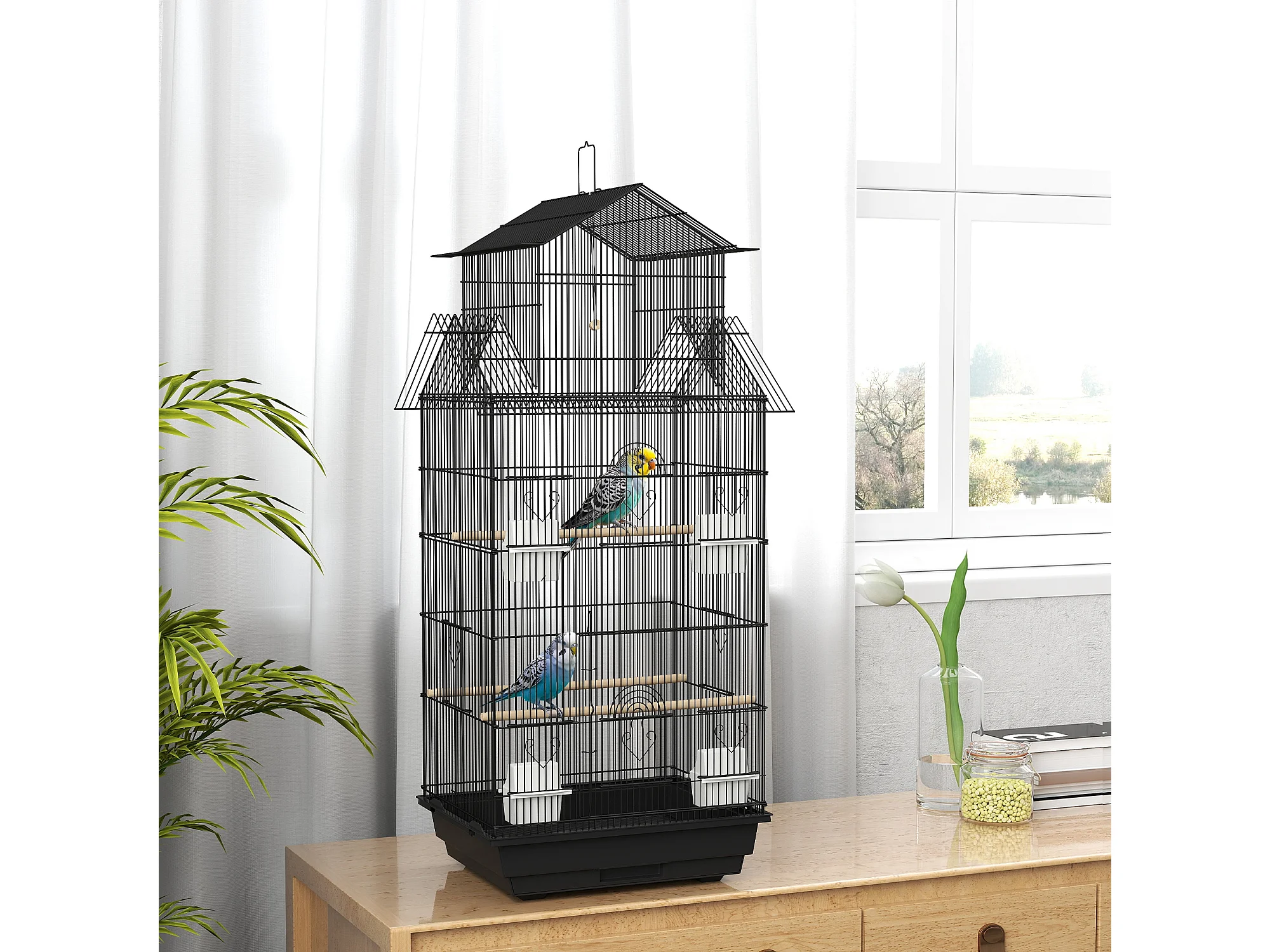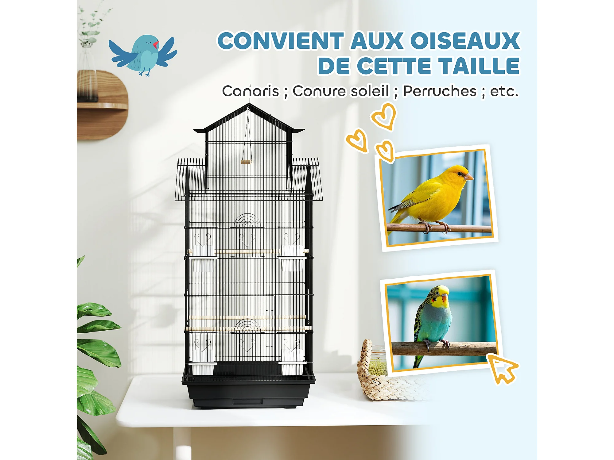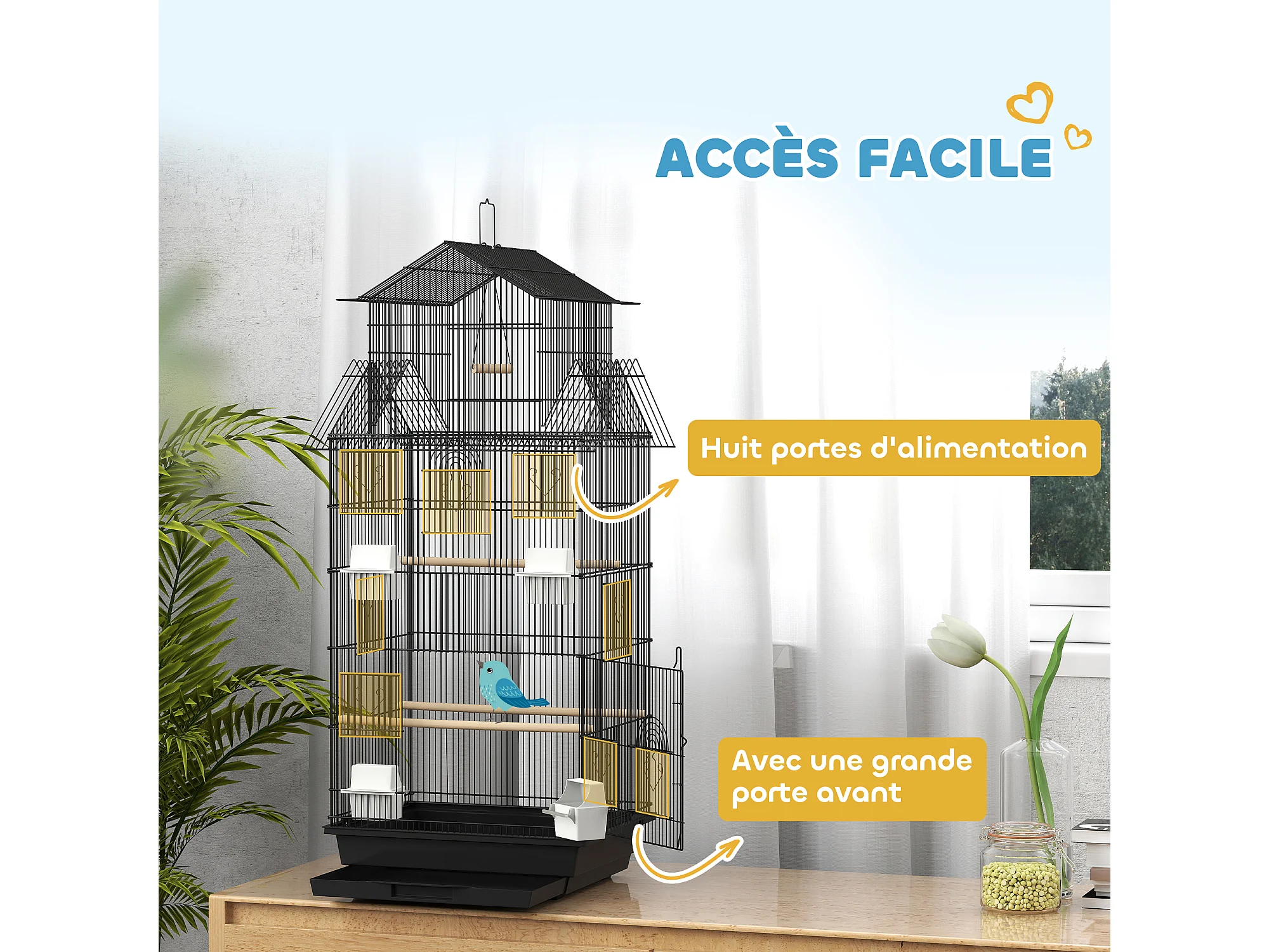 Cage à oiseaux design maison mangeoires perchoirs balançoire grande porte 8 trappes plateau déjection