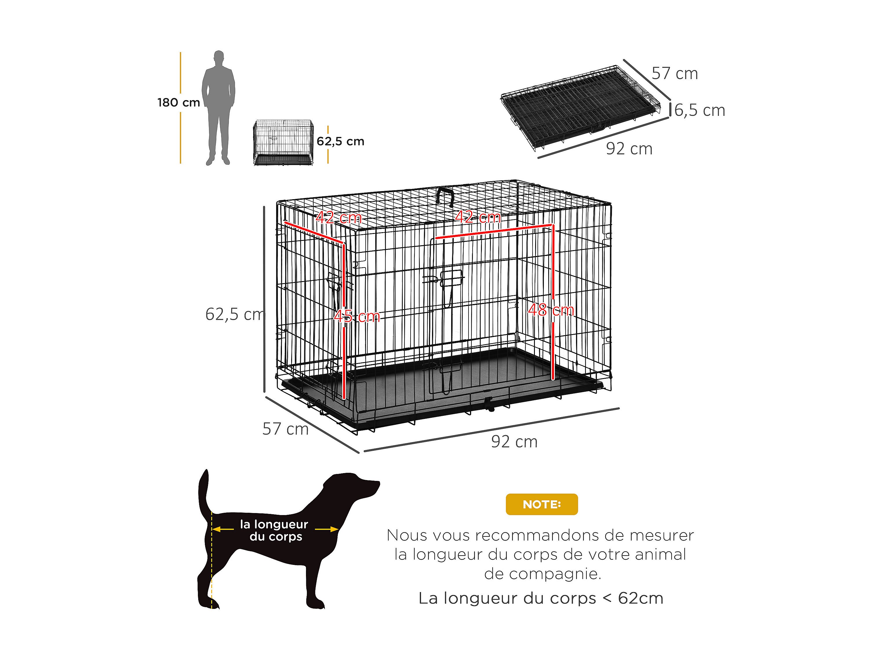 Cage pour chien animaux cage de transport sur roulettes pliable 3 portes verrouillables plateau amovible acier noir