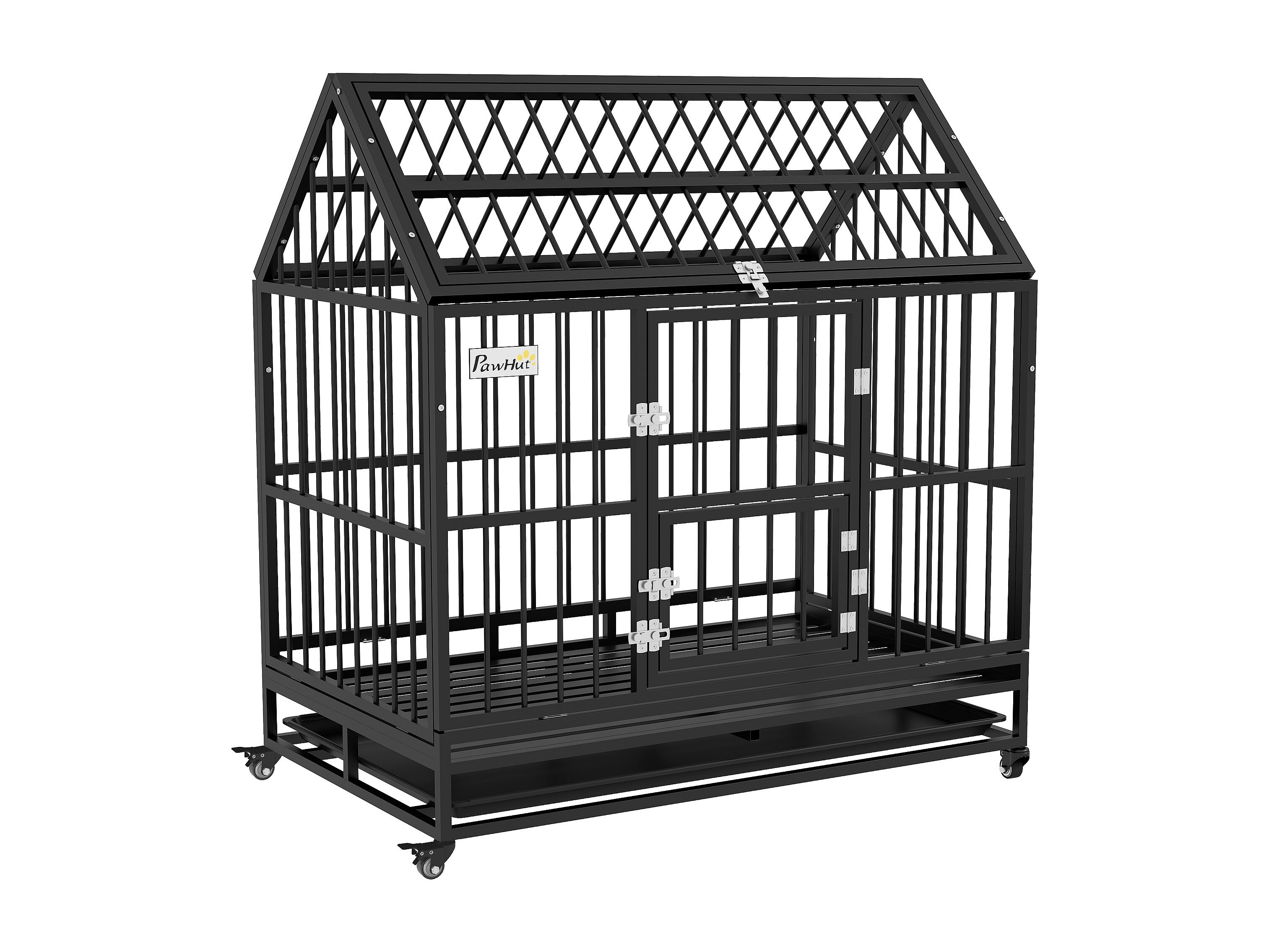 Cage chien grande taille sur roulettes - 2 portes verrouillables, plateau amovible - acier noir