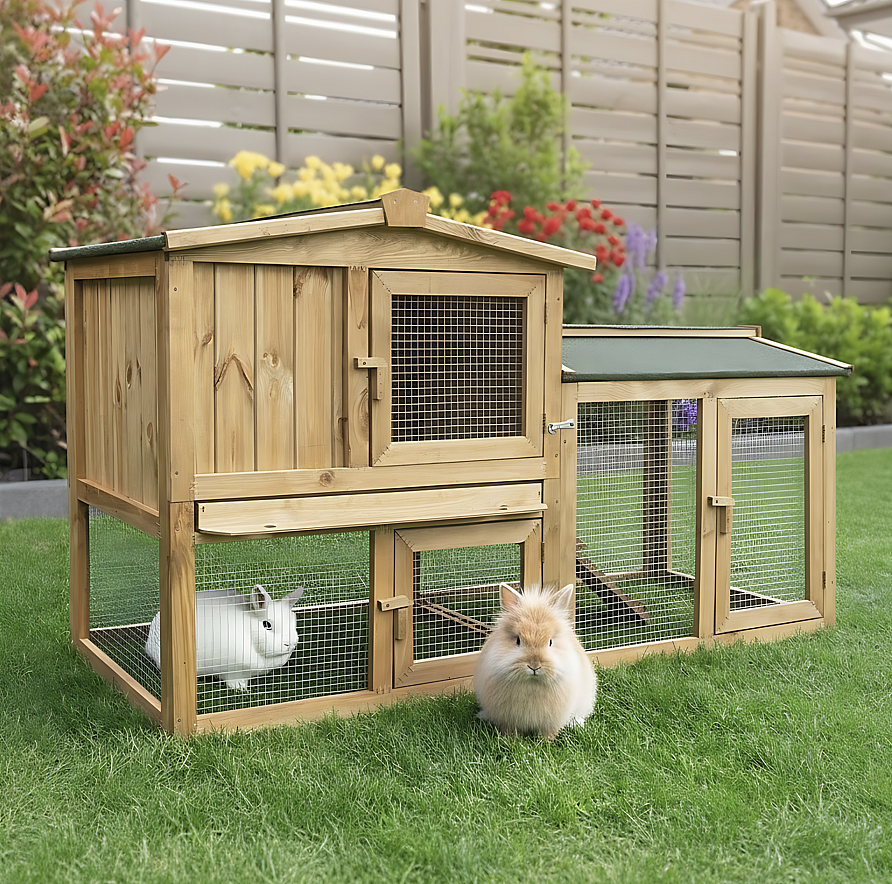 Cage Clapier Enclos lapin Extérieur en bois Haute Qualité pour lapins petits animaux- Modèle : 035 Ranch 152 x 98 x 118 cm