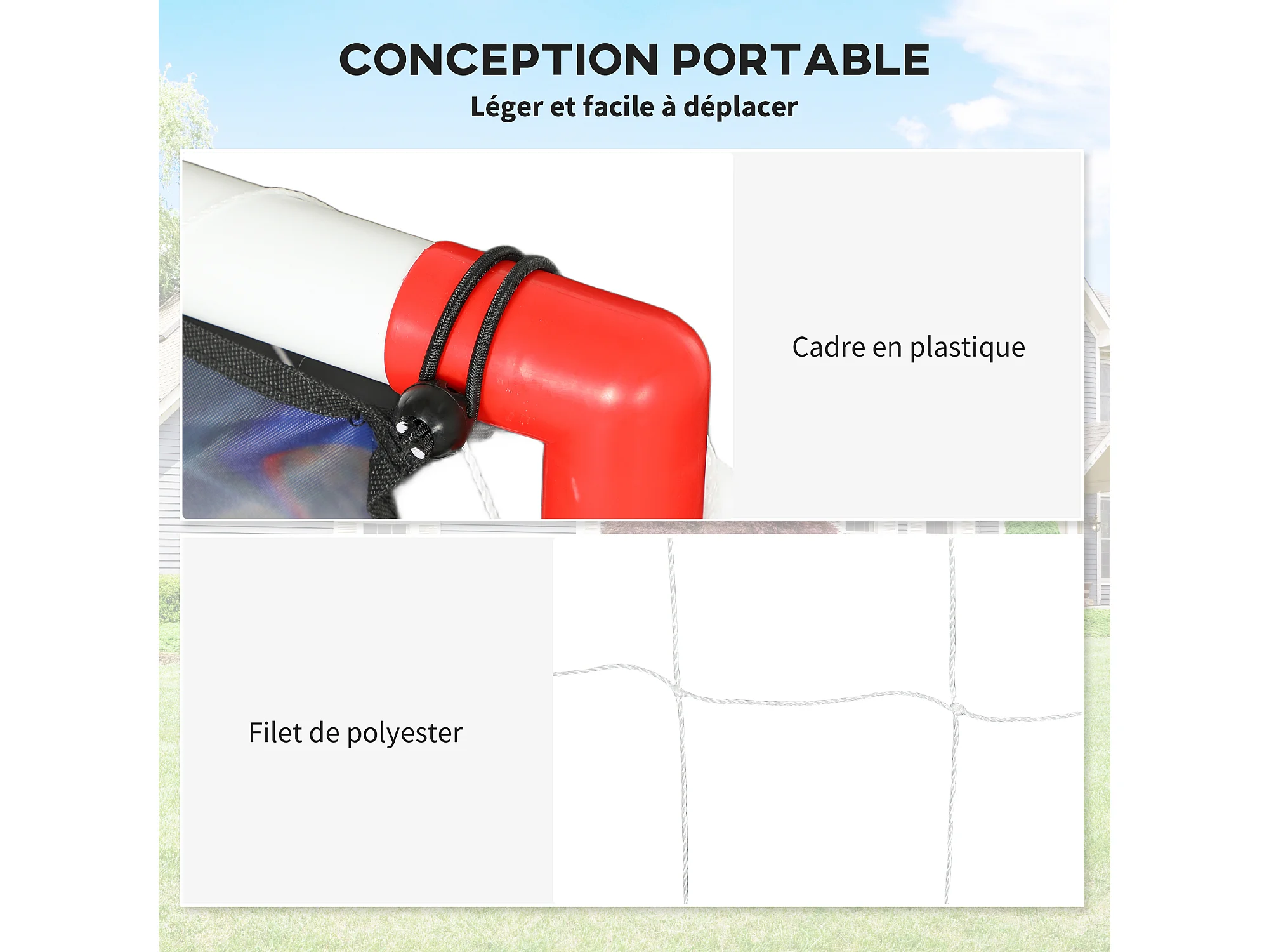 Cage de handball enfant 5 zones cibles - balle, pompe, piquets inclus - blanc rouge