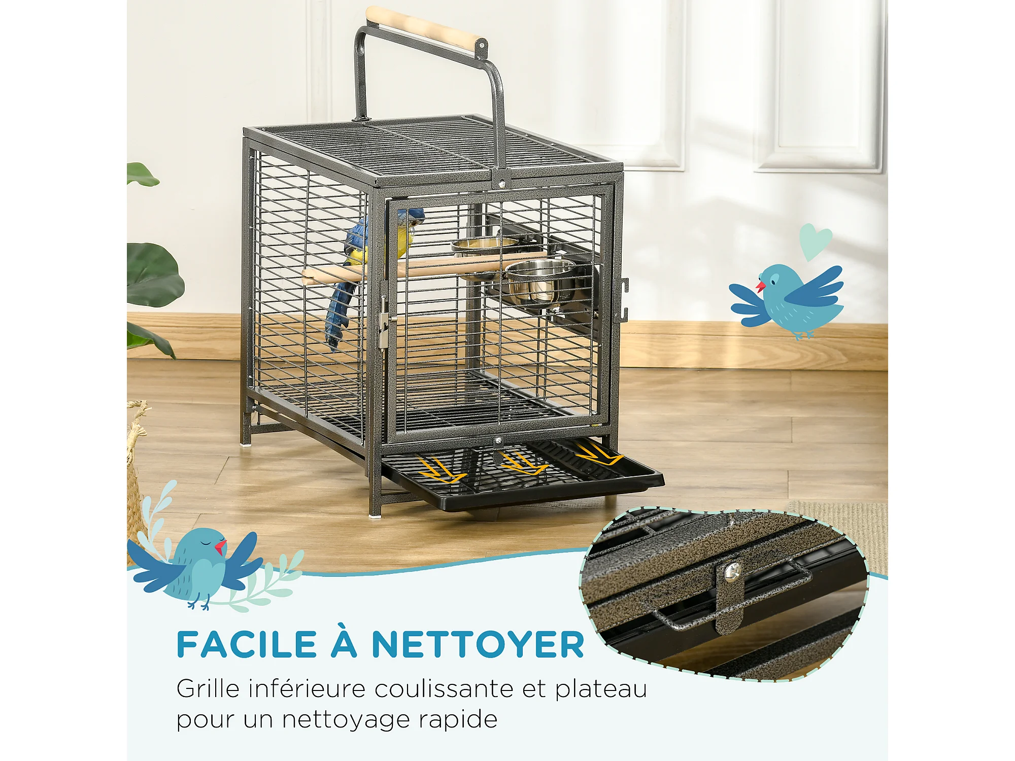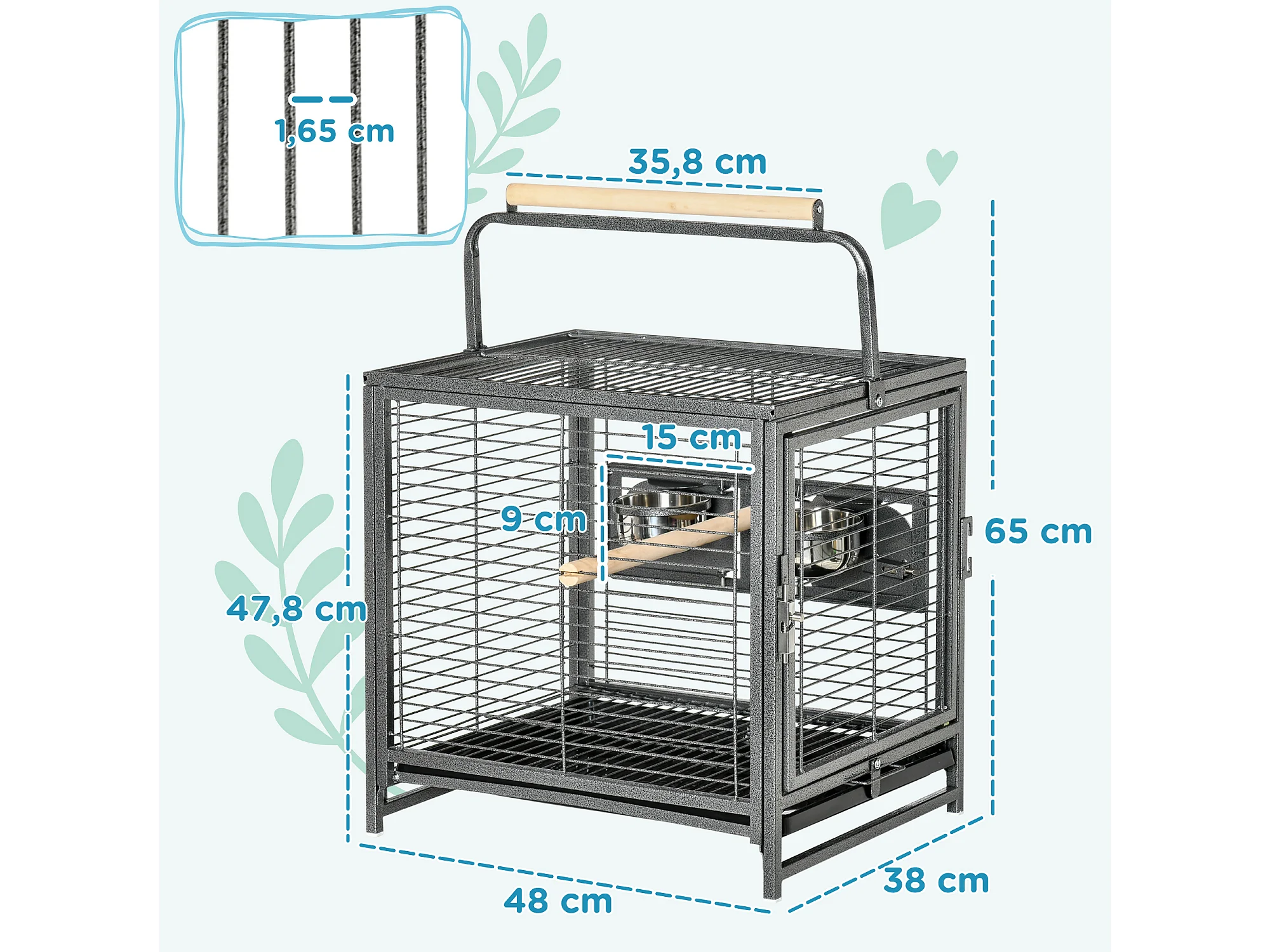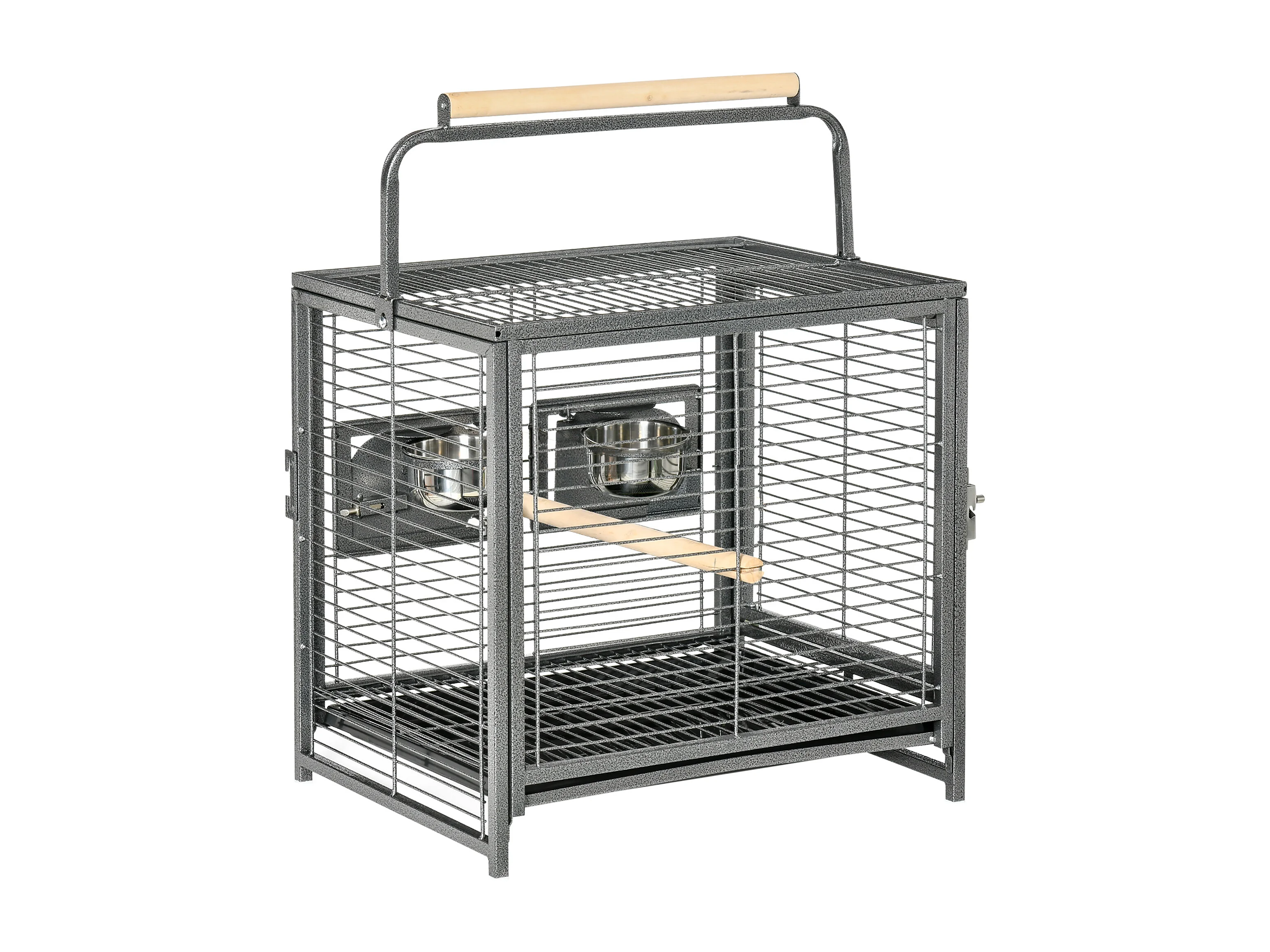 Cage de transport oiseau - cage de transport pour perroquet - porte, 2 trappes de nourrissage - acier gris moucheté