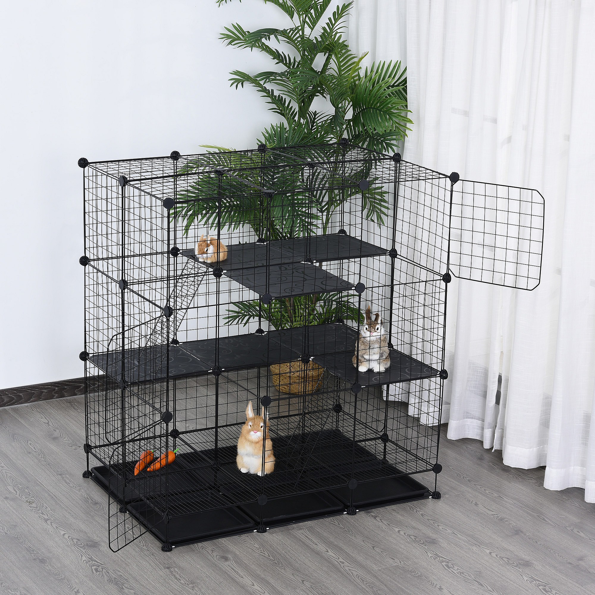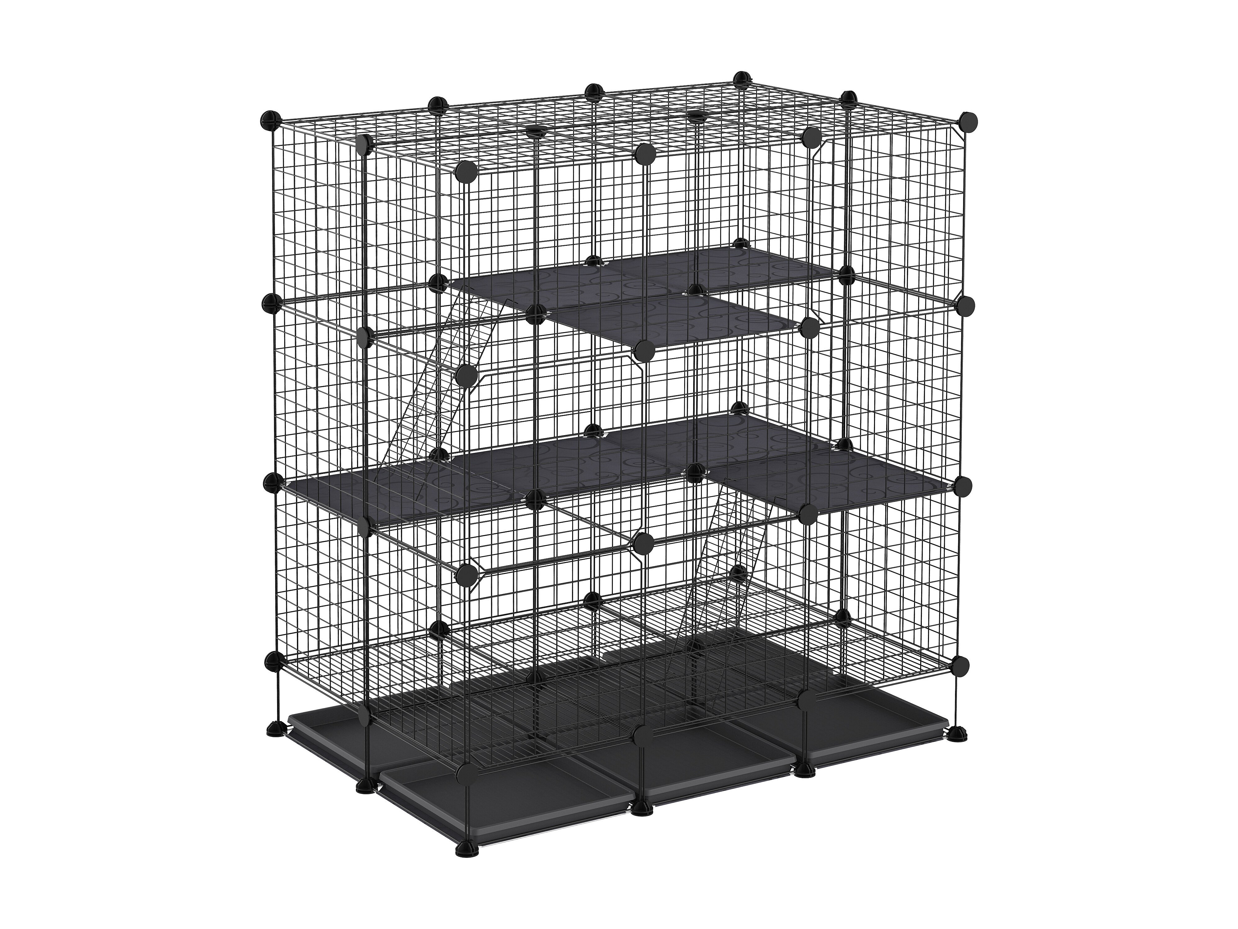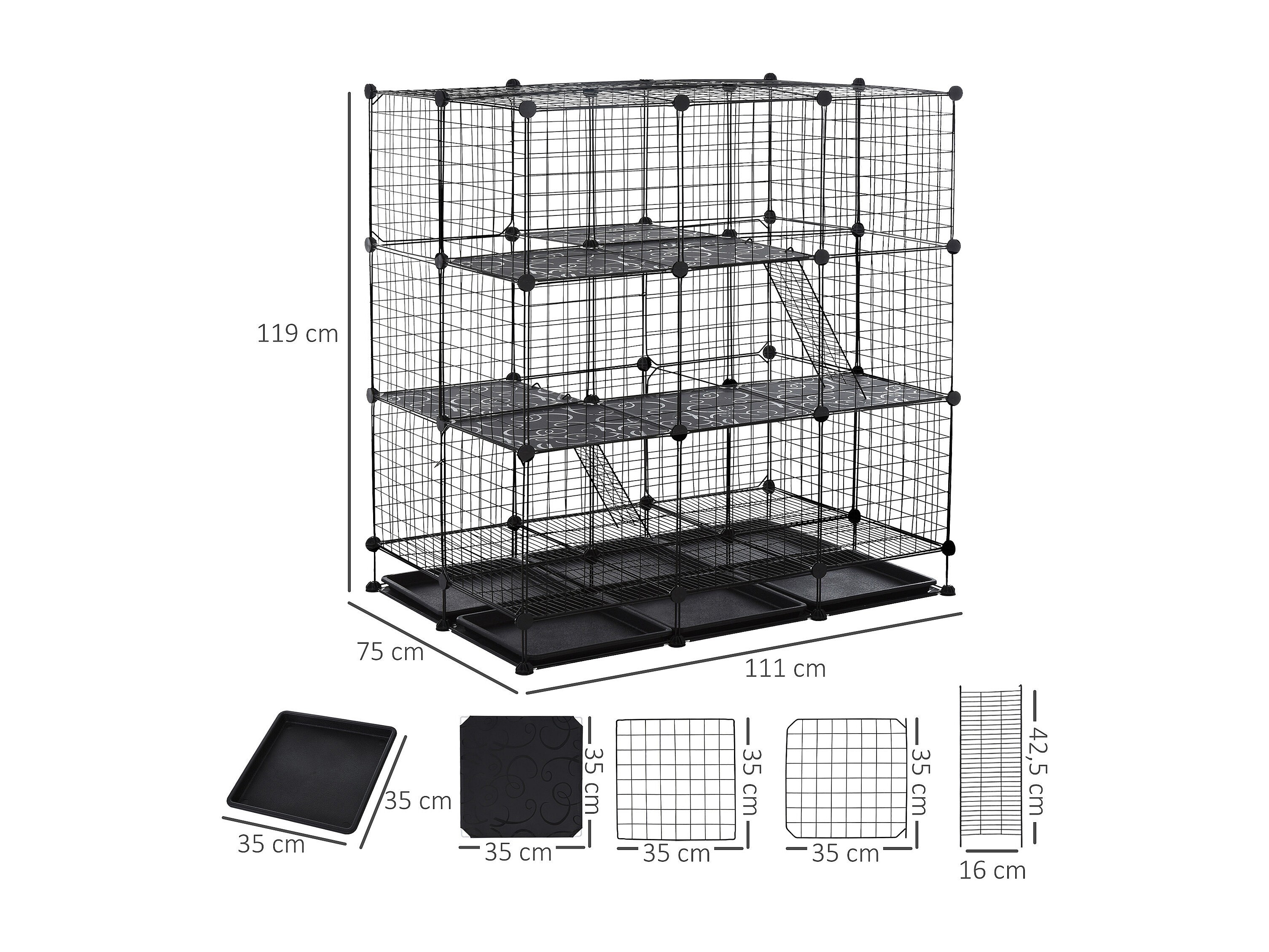 Cage parc enclos rongeurs modulable dim. L 111 x l 75 x H 119 cm 3 niveaux 4 portes fil métallique noir
