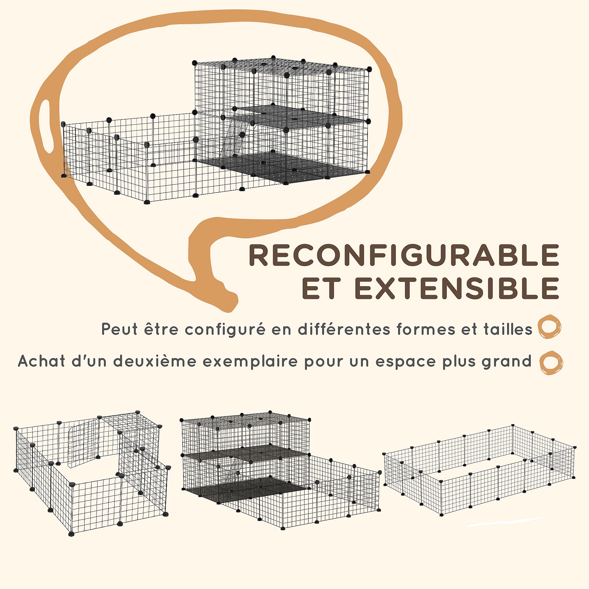 Cage parc enclos rongeurs modulable dim. L 105 x l 70 x H 35 cm résine PP fil métallique noir