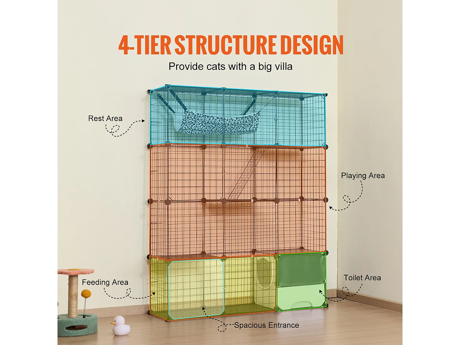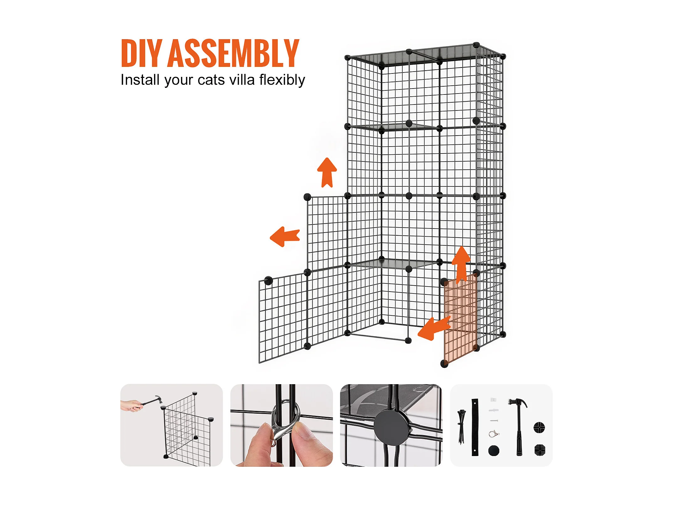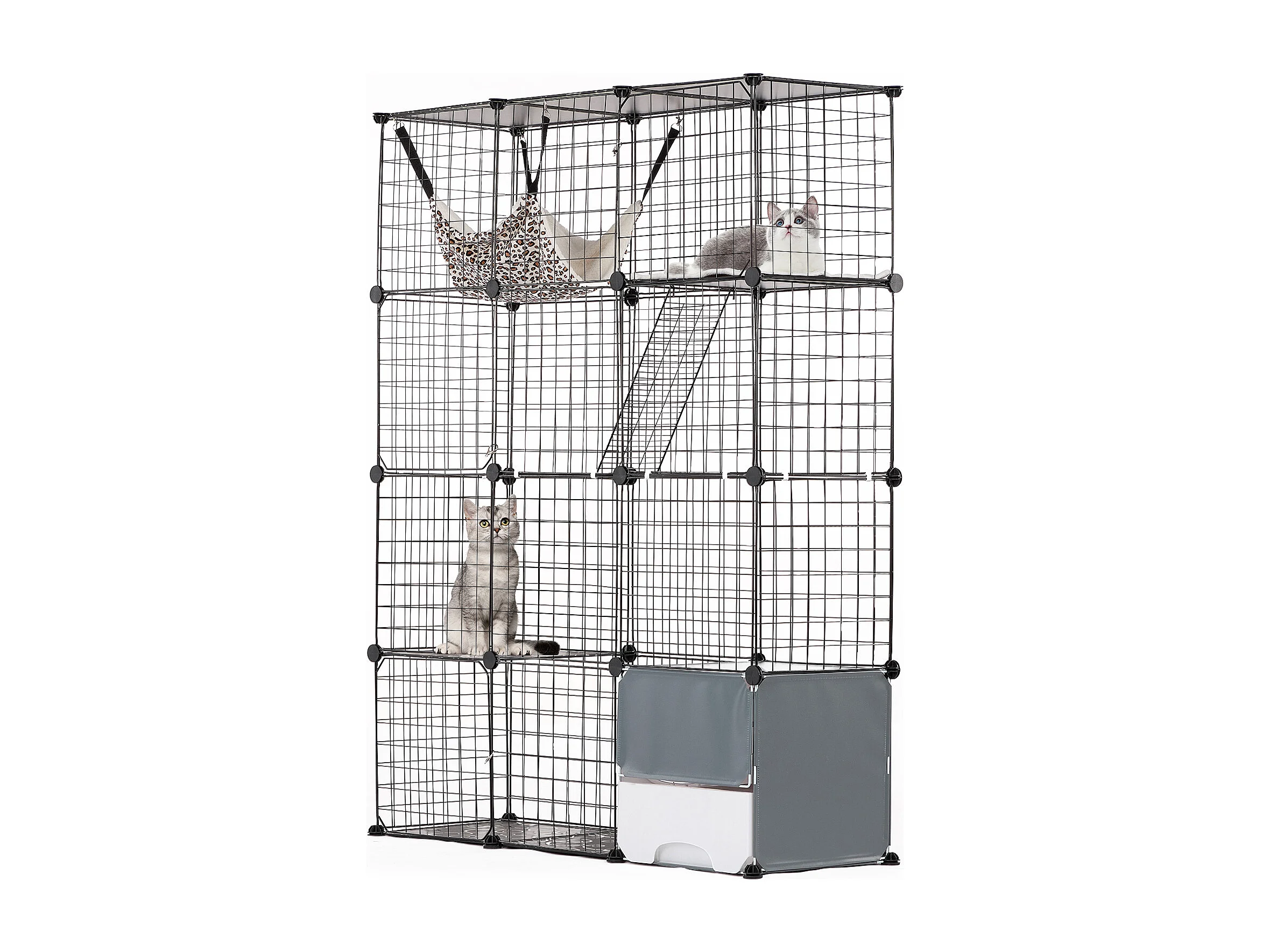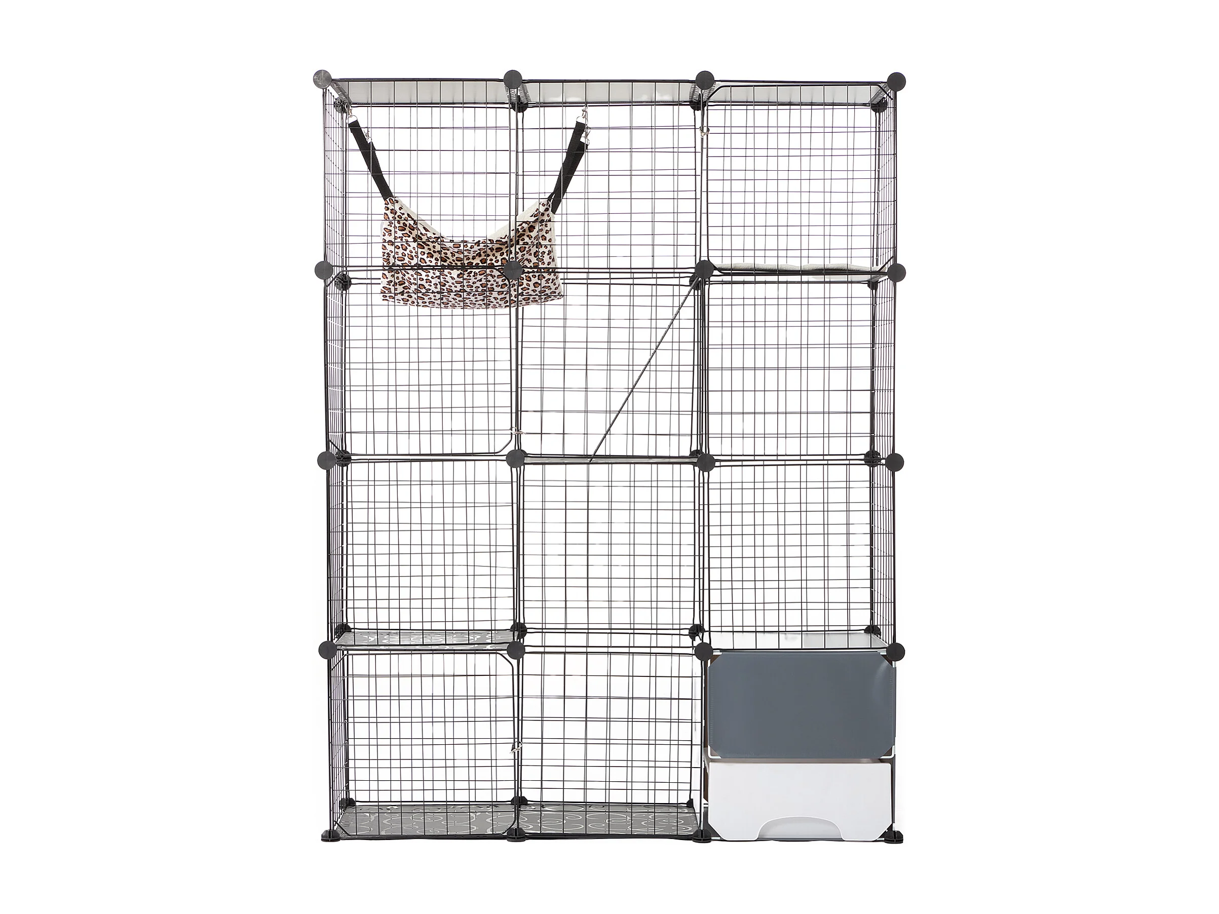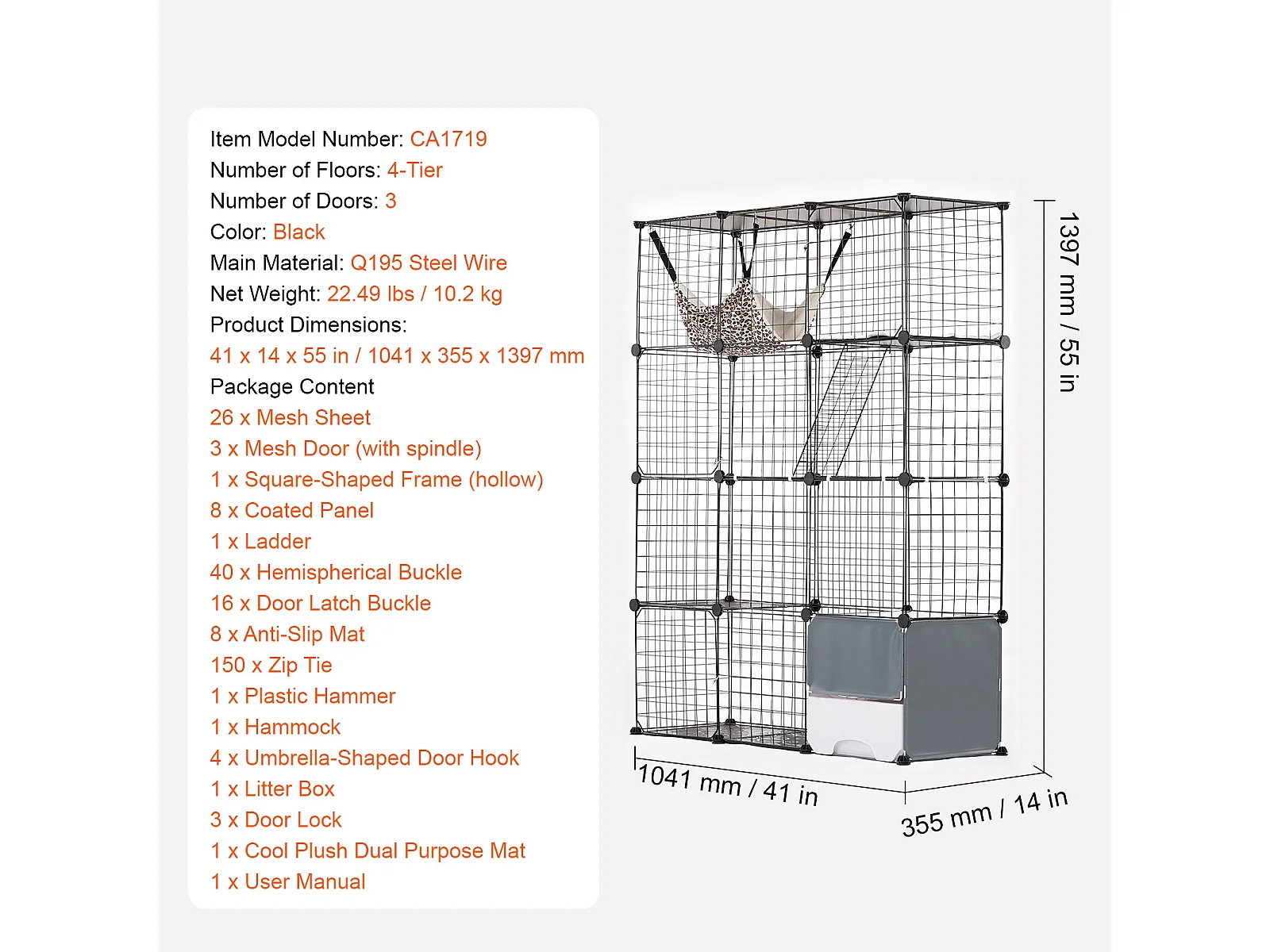 Cage pour Chat SucceBuy à 4 Niveaux de Grande Taille, 41 x 14 x 140 cm, fil Métallique avec Hamac