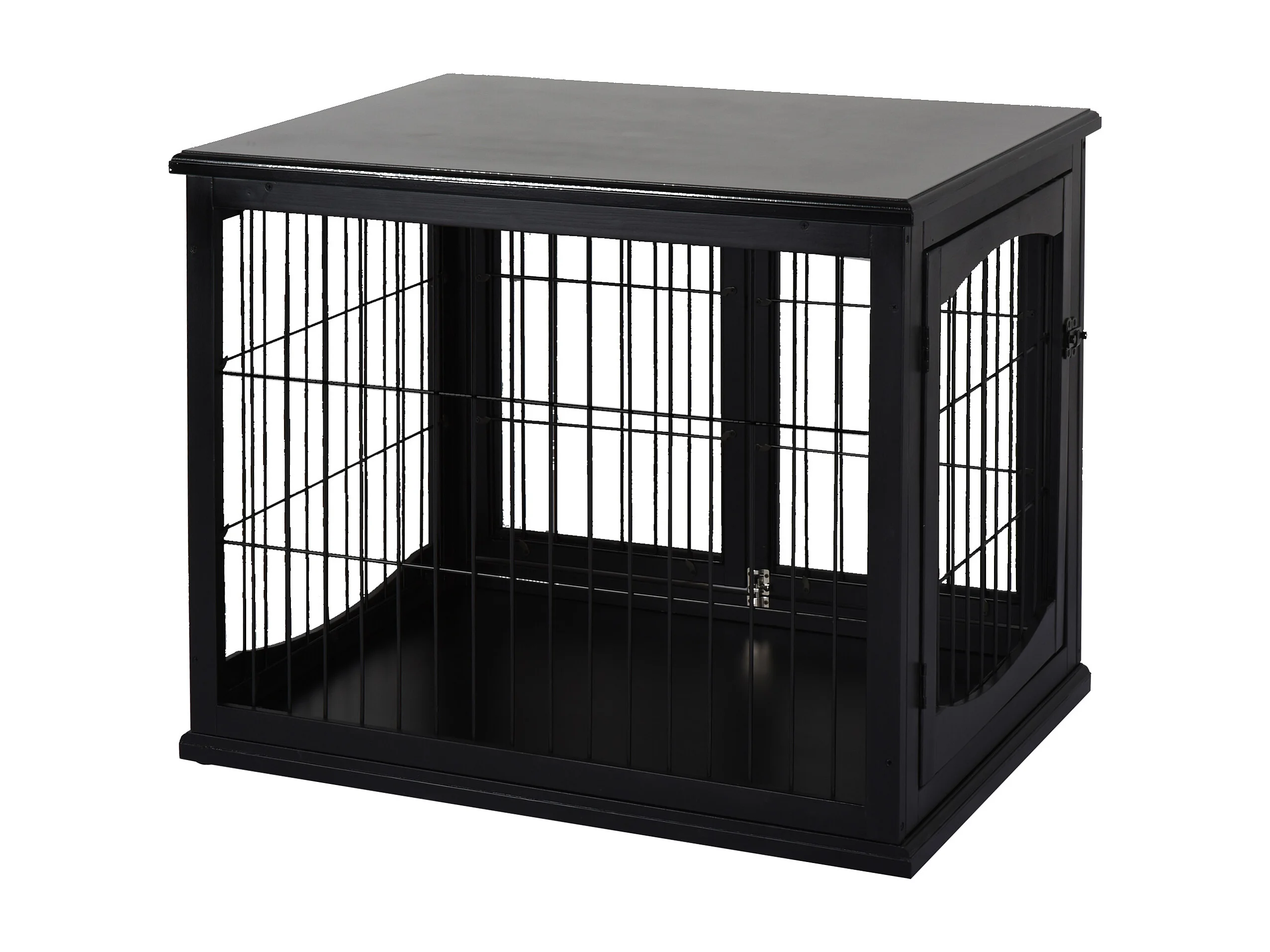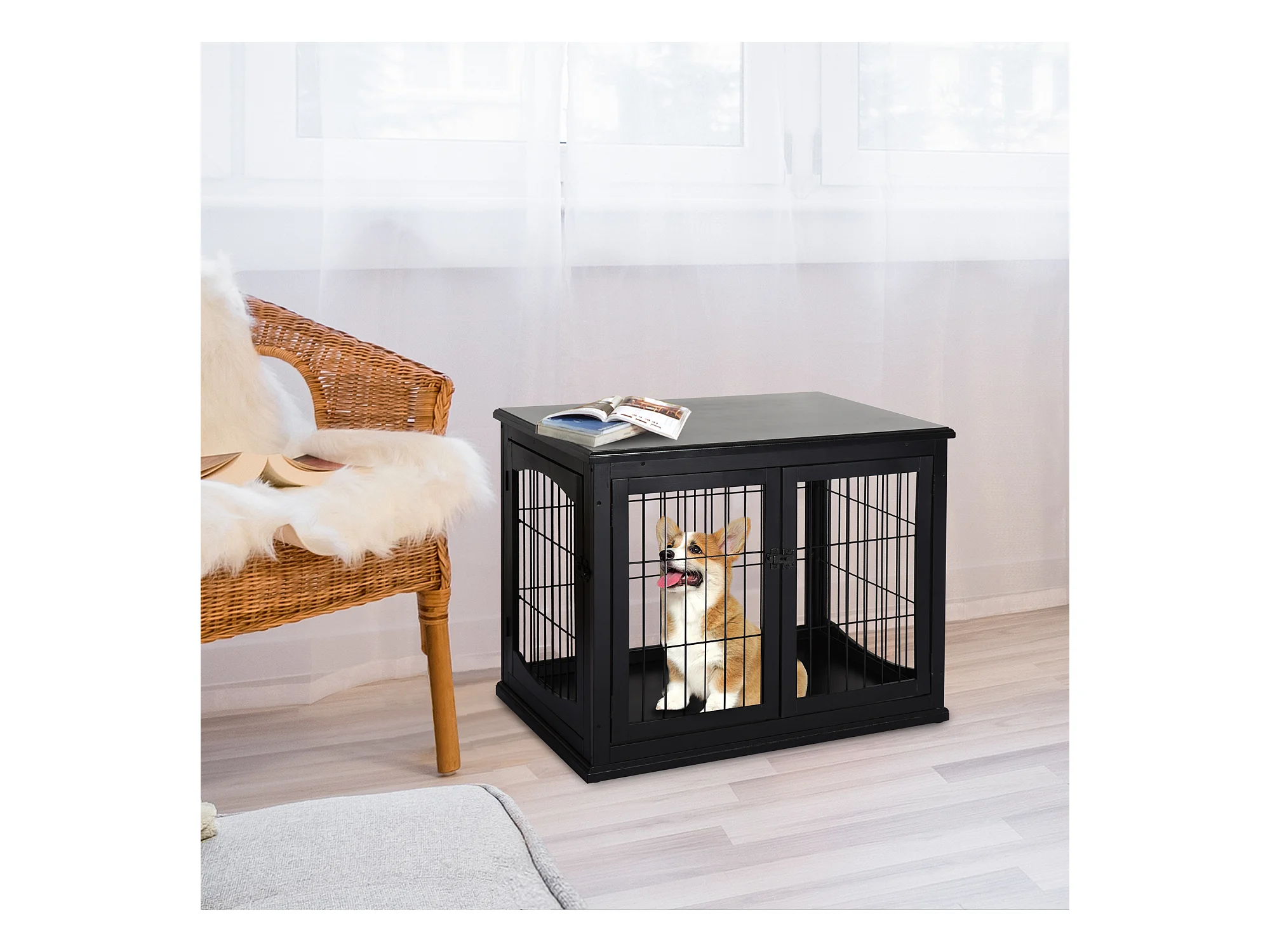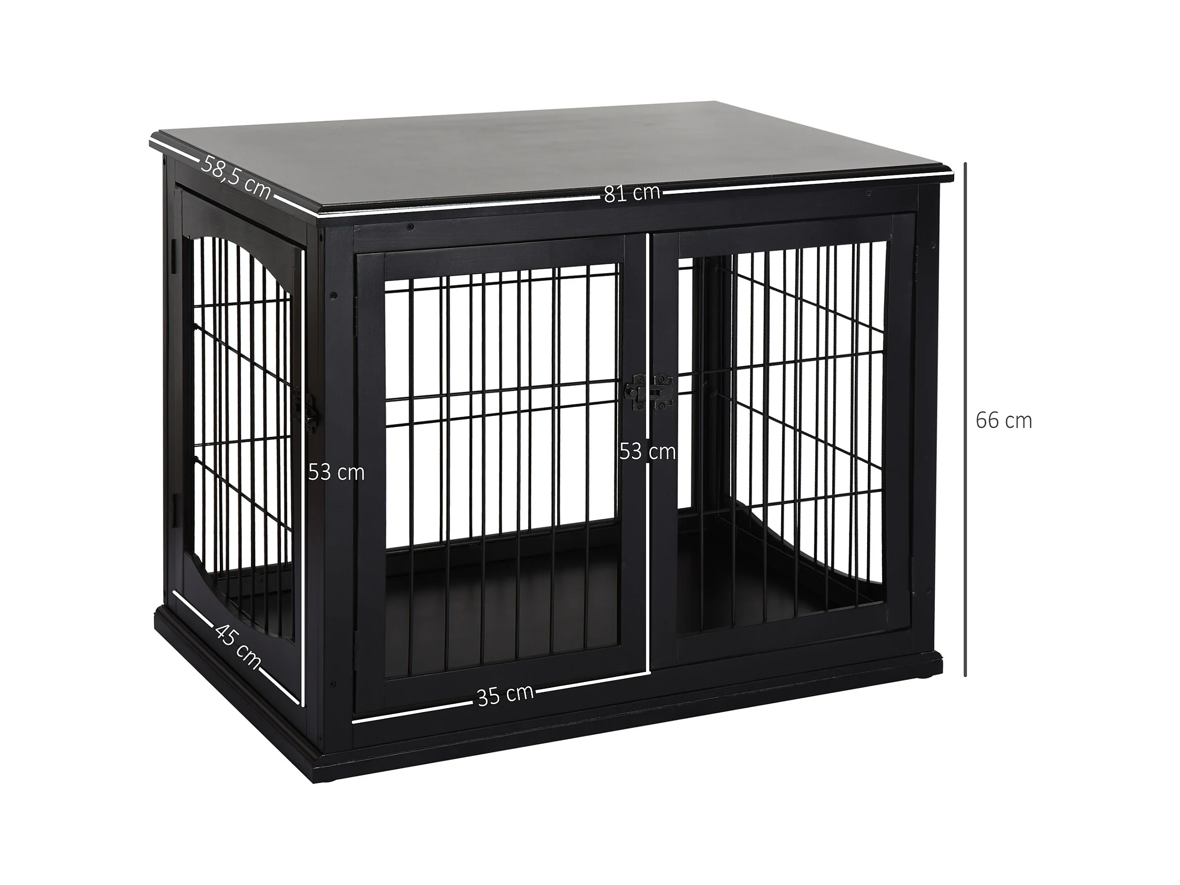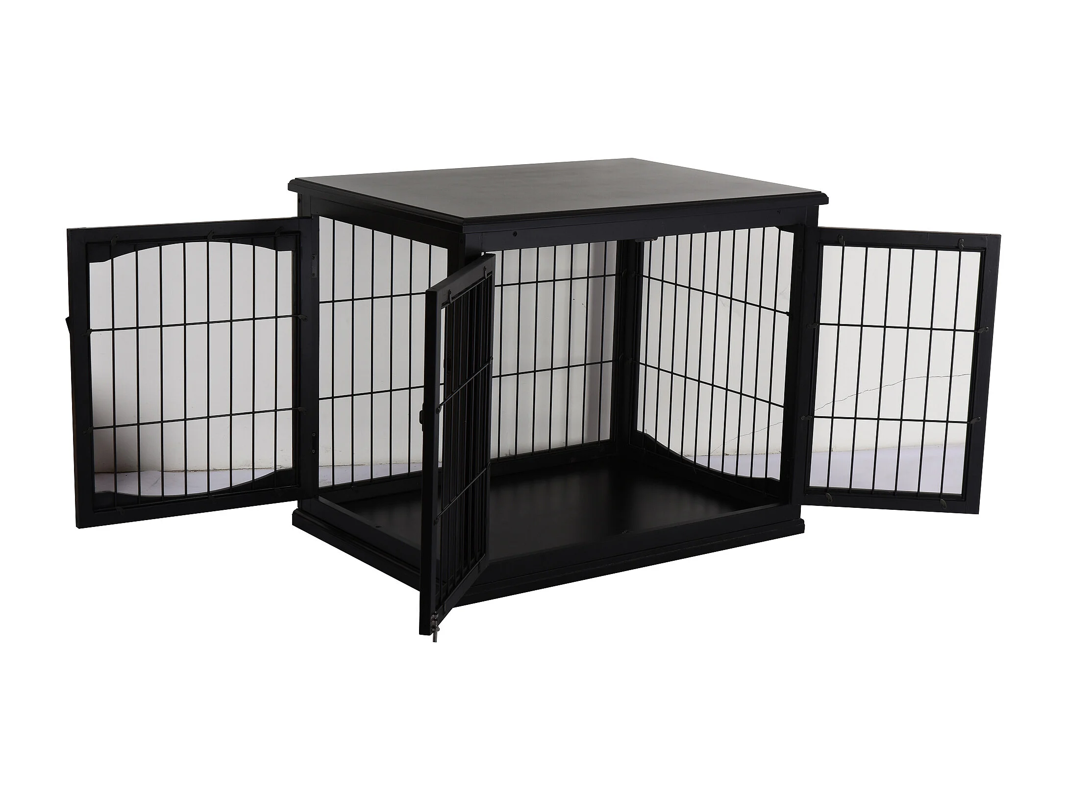 Cage pour chien animaux cage en bois MDF classe E1 3 portes verrouillables max. 30 Kg dim. 81L x 58l x 66H cm noir