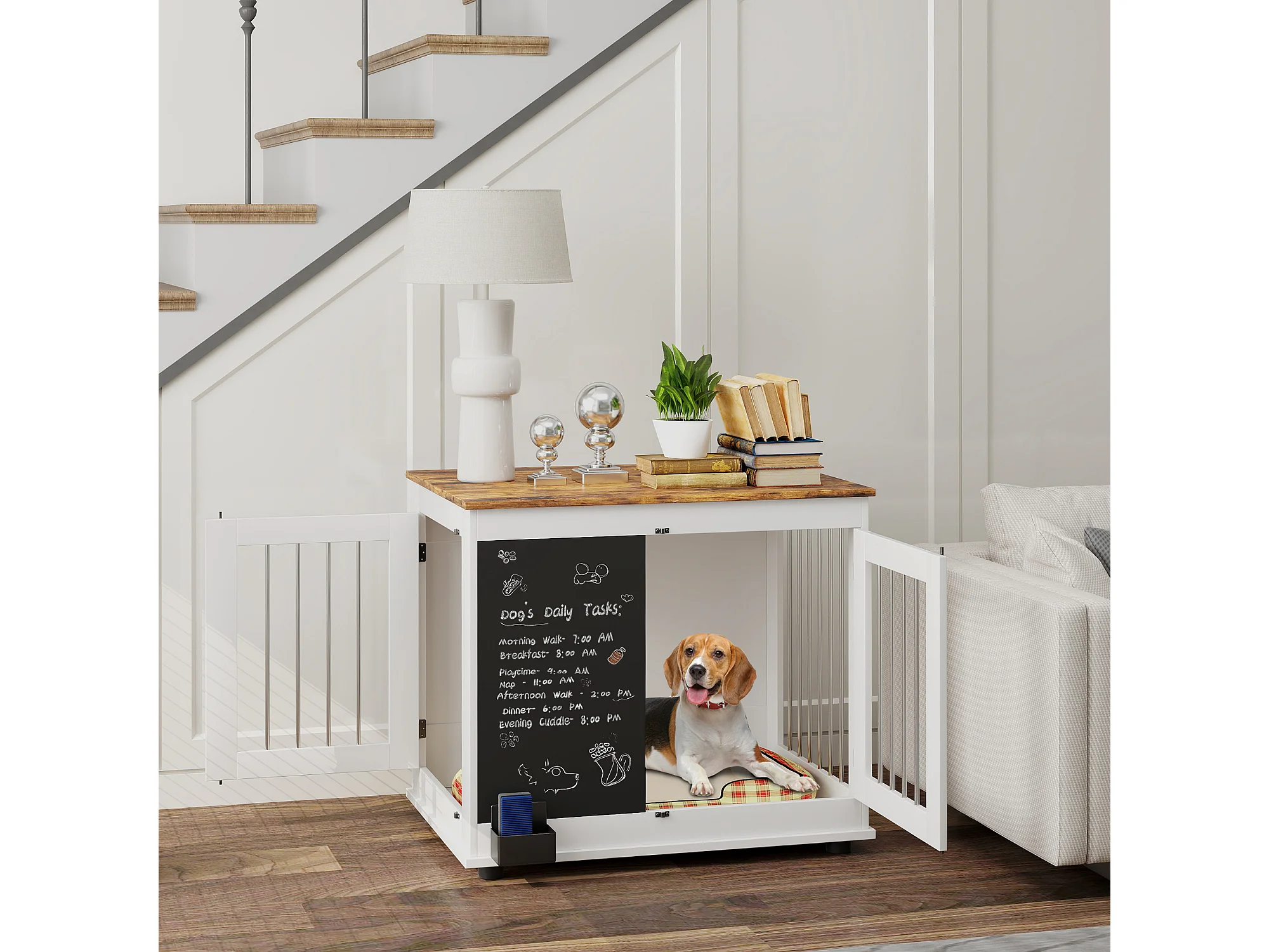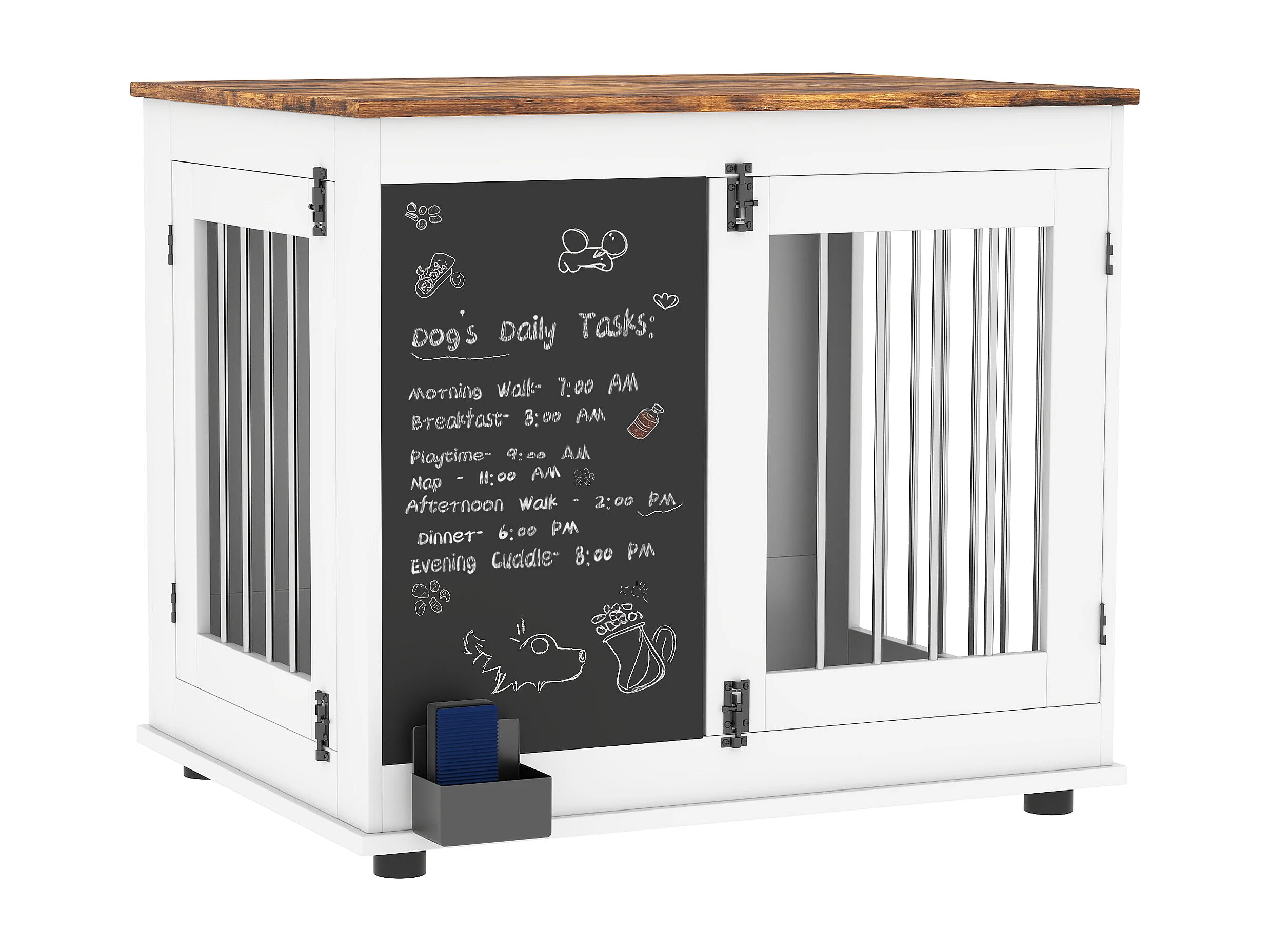 Cage pour chien intérieur - cage d'intérieur design - 2 portes - tableau noir pour craie - barreaux acier