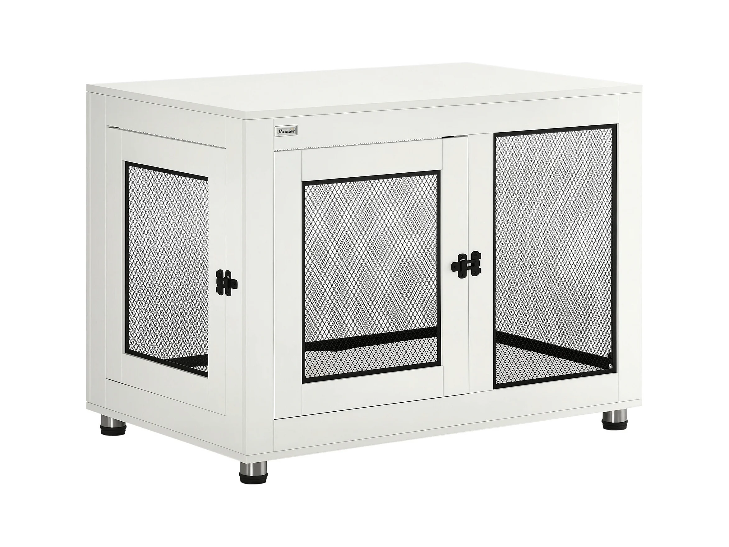 Cage pour chien animaux table d'appoint 2 en 1 - 2 portes verrouillables - dim. 76L x 54,5l x 56H cm - MDF acier blanc