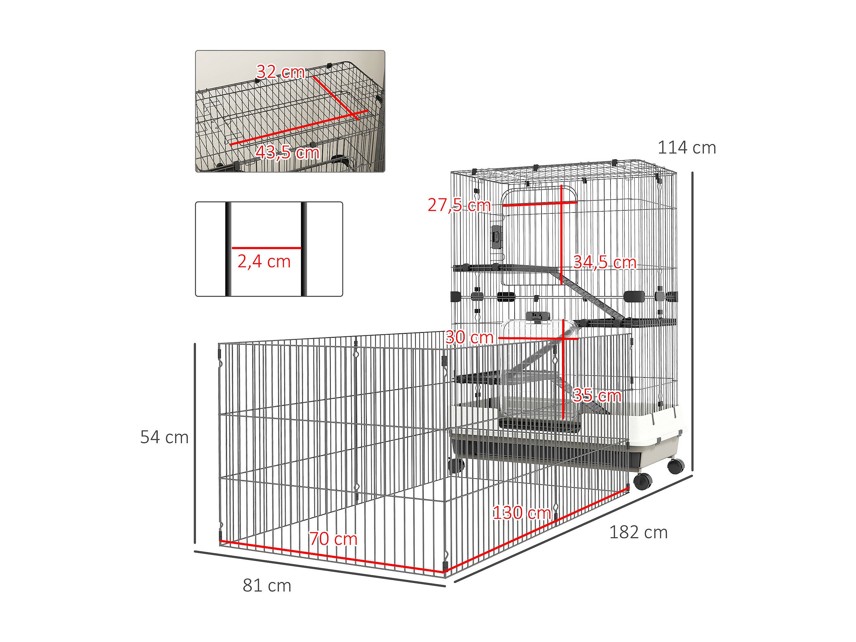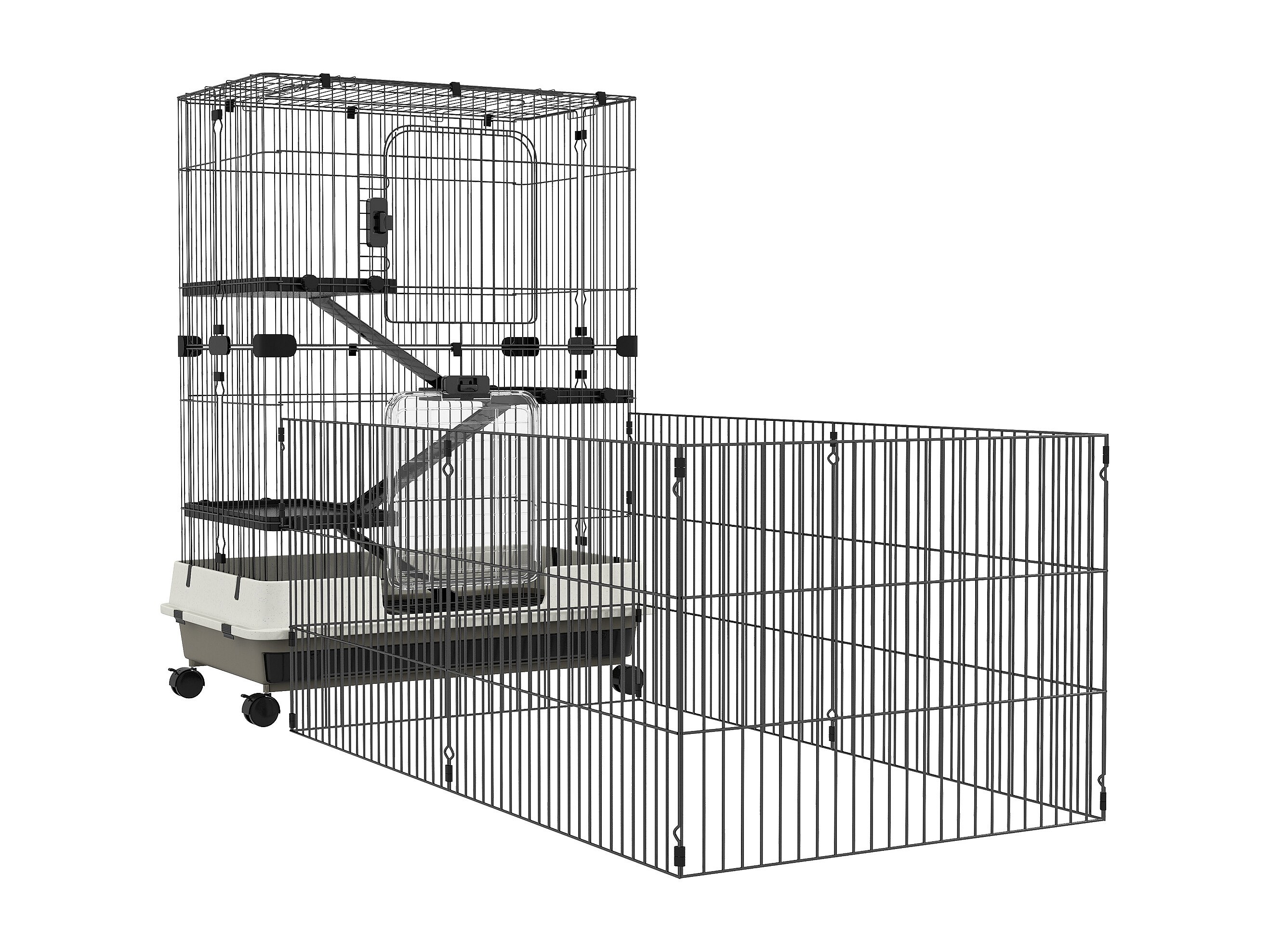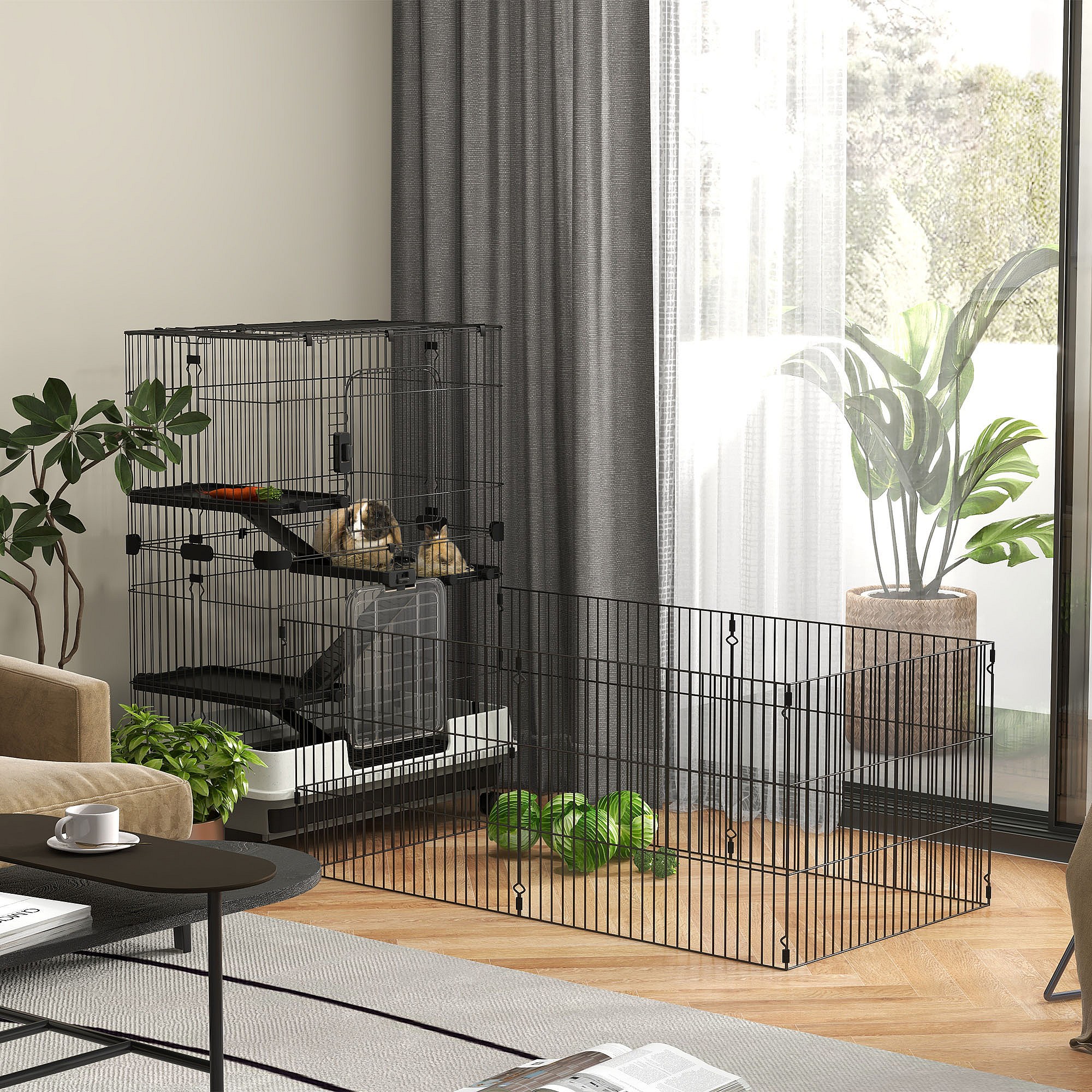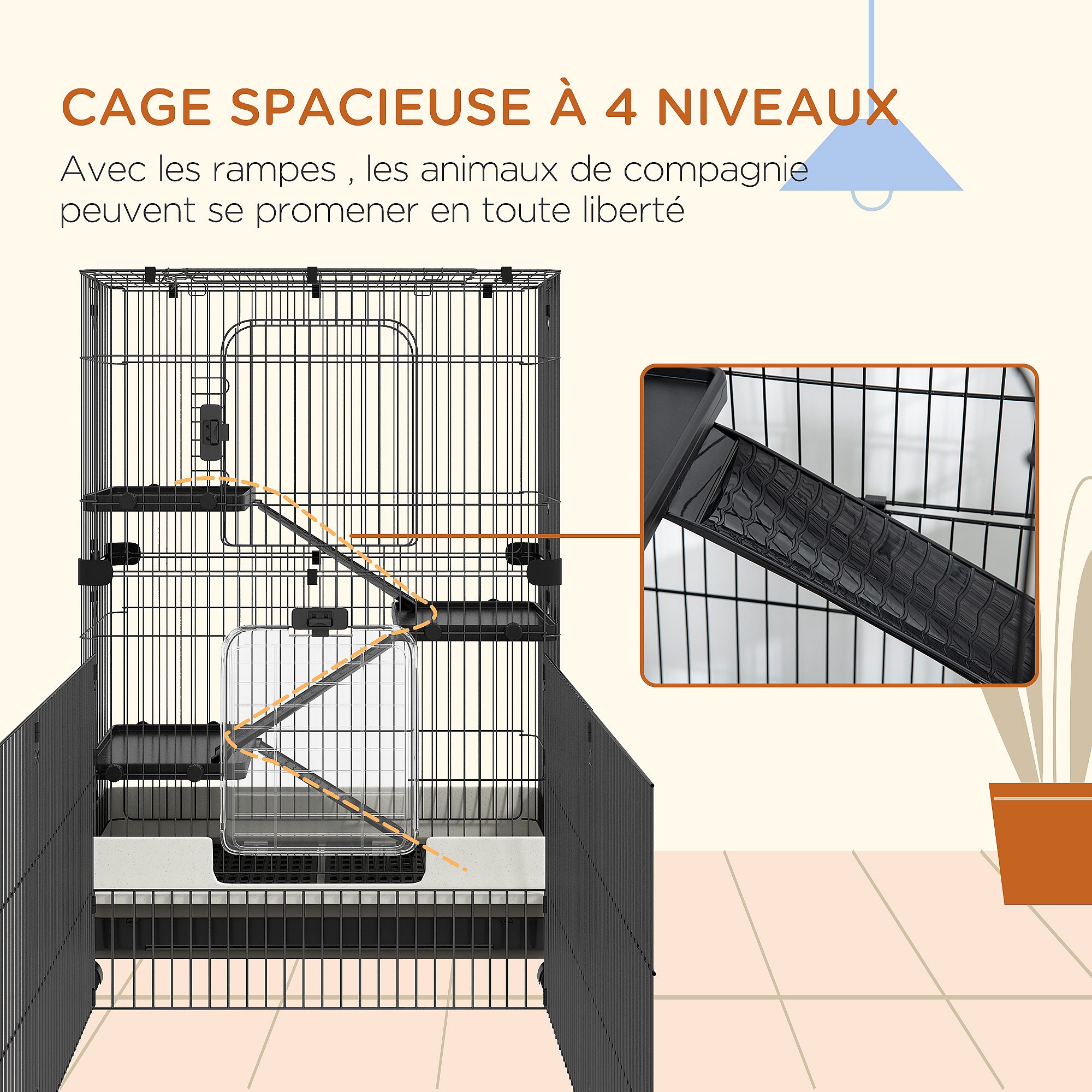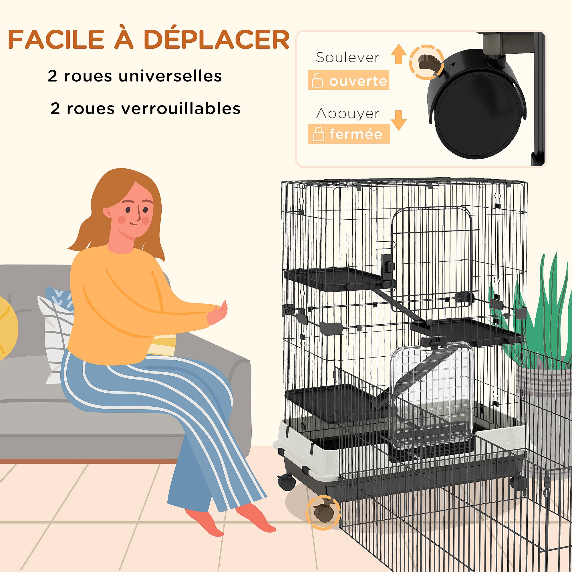 Cage pour petits animaux roulante 3 plates-formes démontables 3 rampes plateau inférieur amovible métal PP 182 x 81 x 114 cm noir