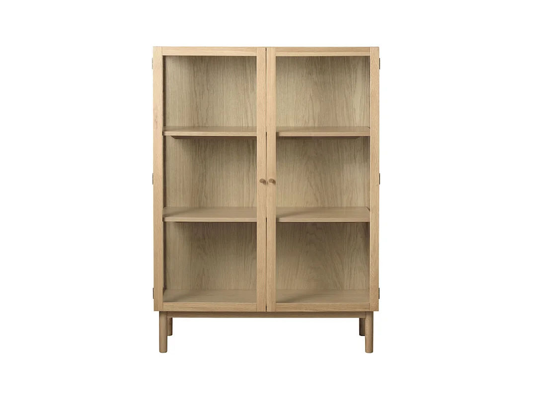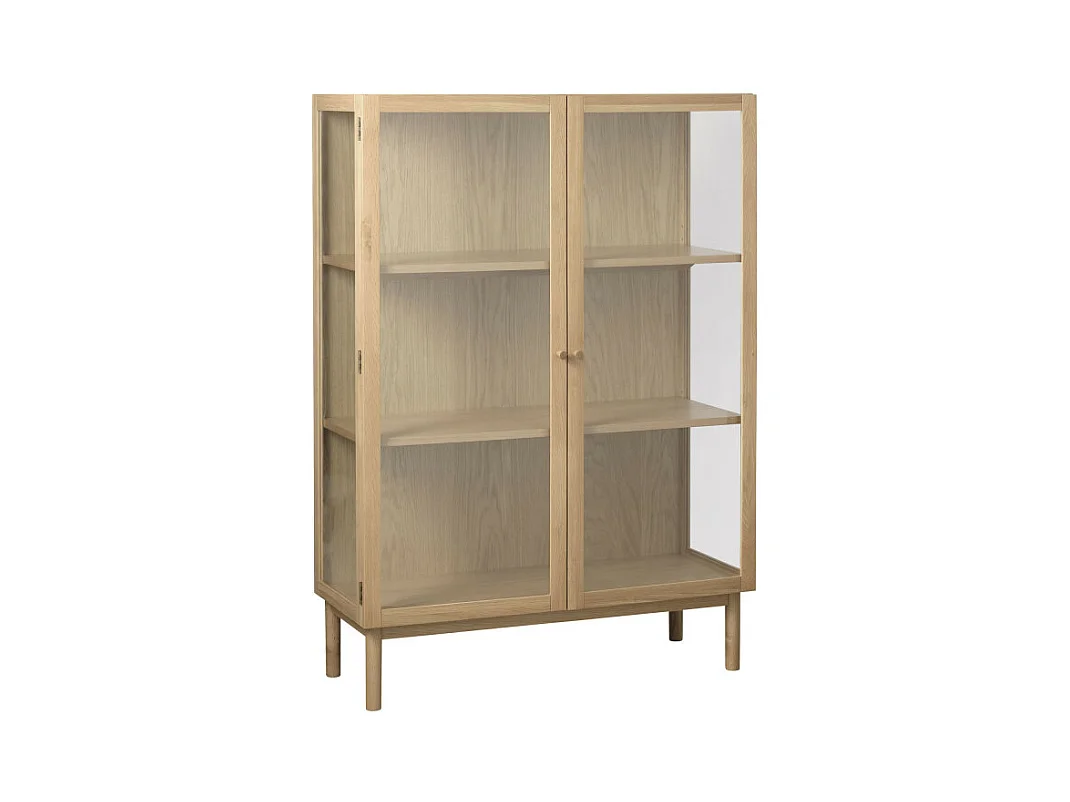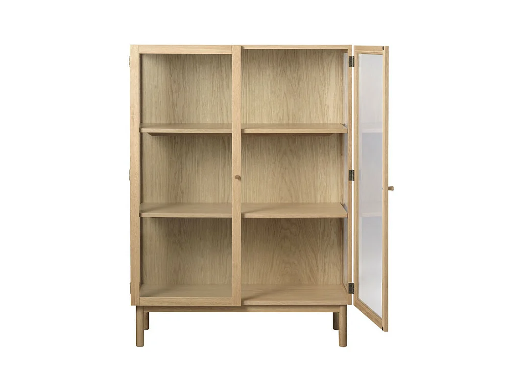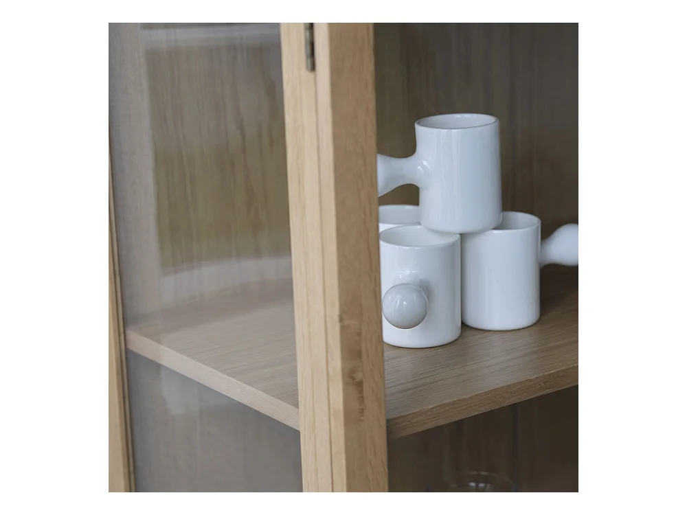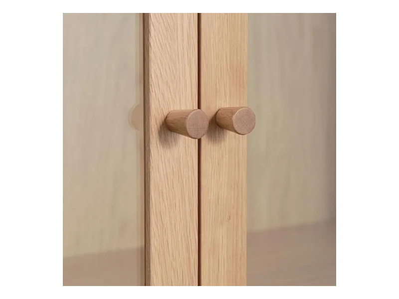 Cahir - Vitrine 2 portes en verre trempé et bois H140cm - Bois clair