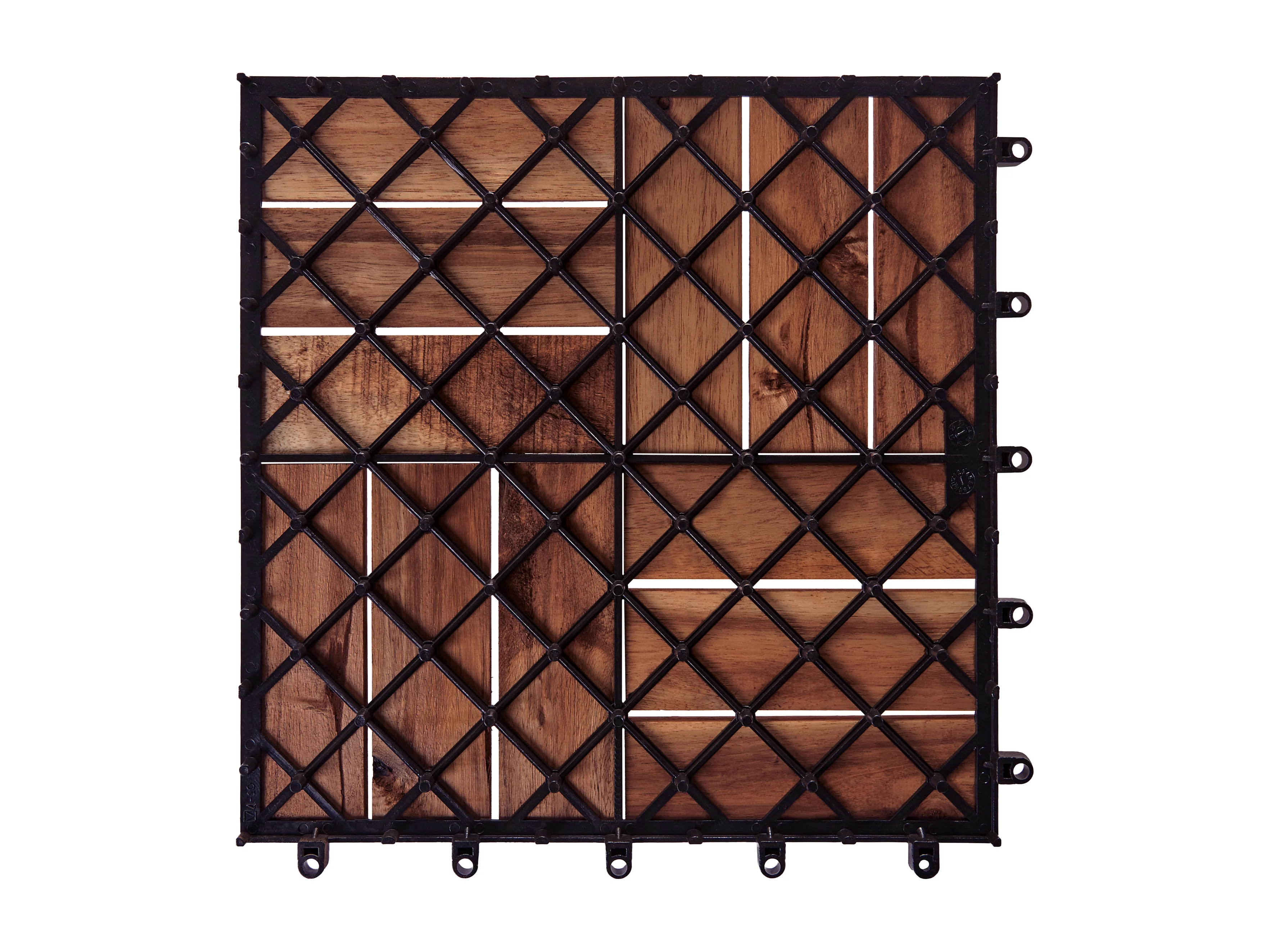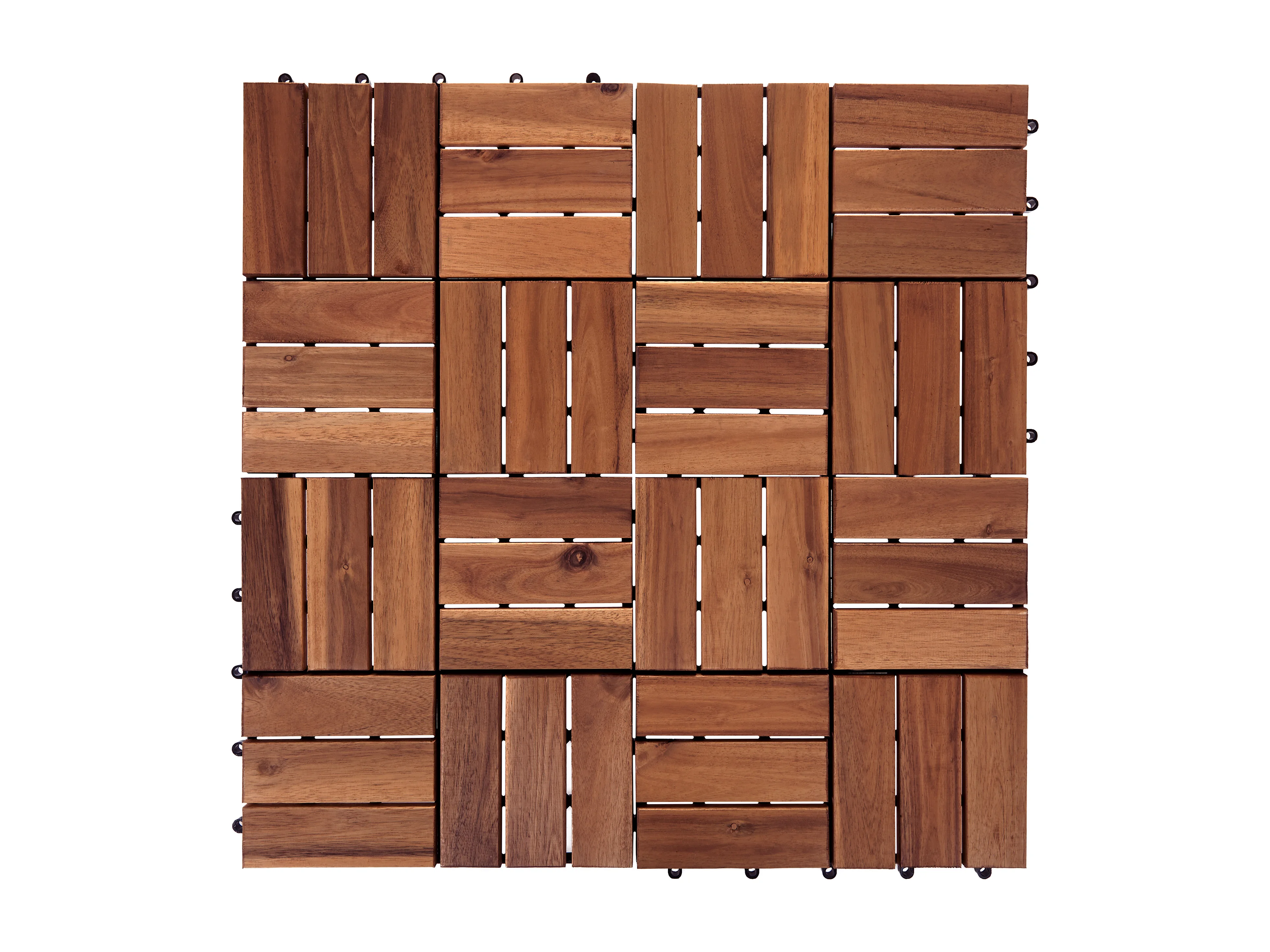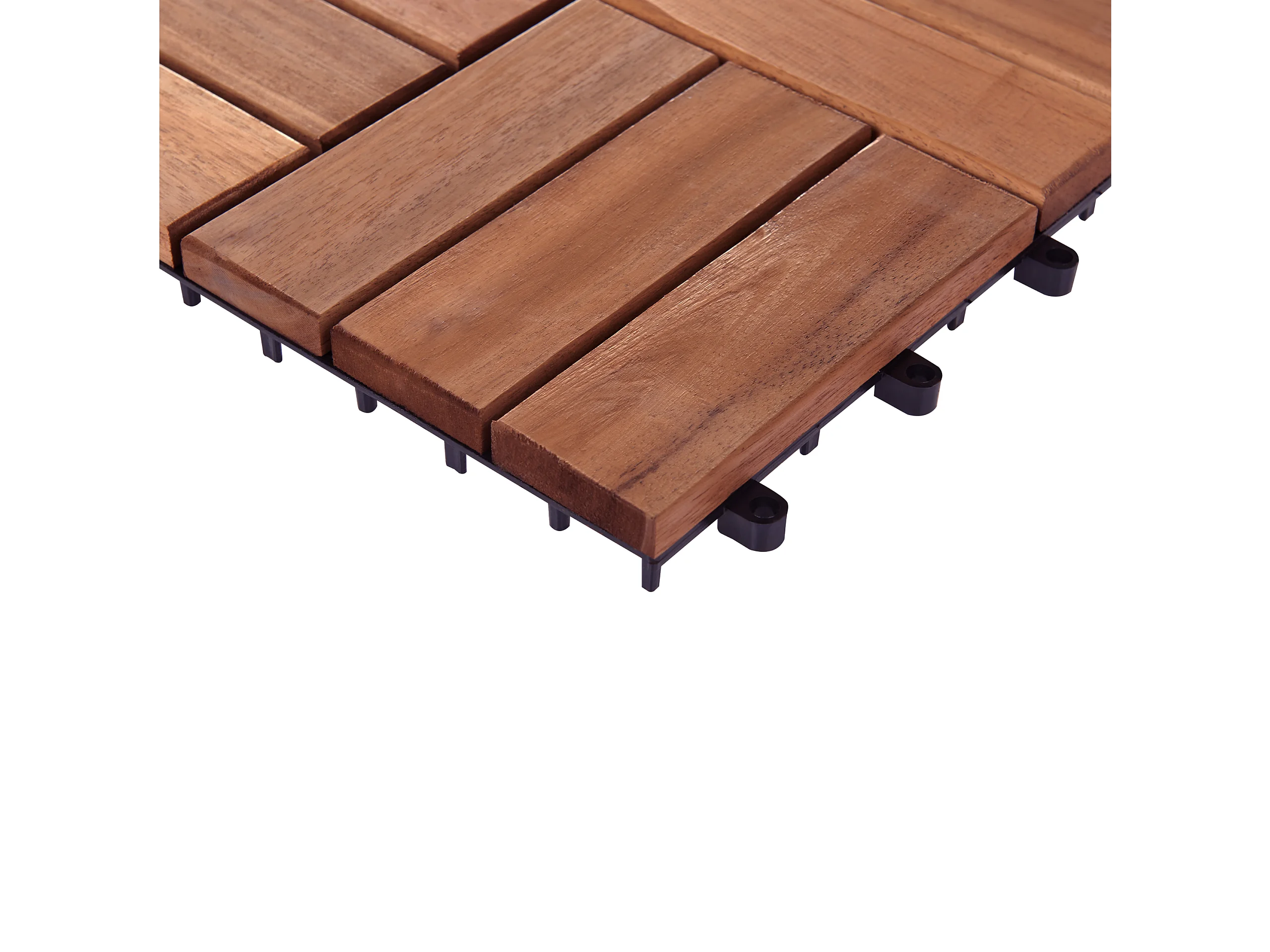 Lot de 10 dalles de terrasses 30x30cm en bois d'acacia. motif linéaire. à lattes. clipsables