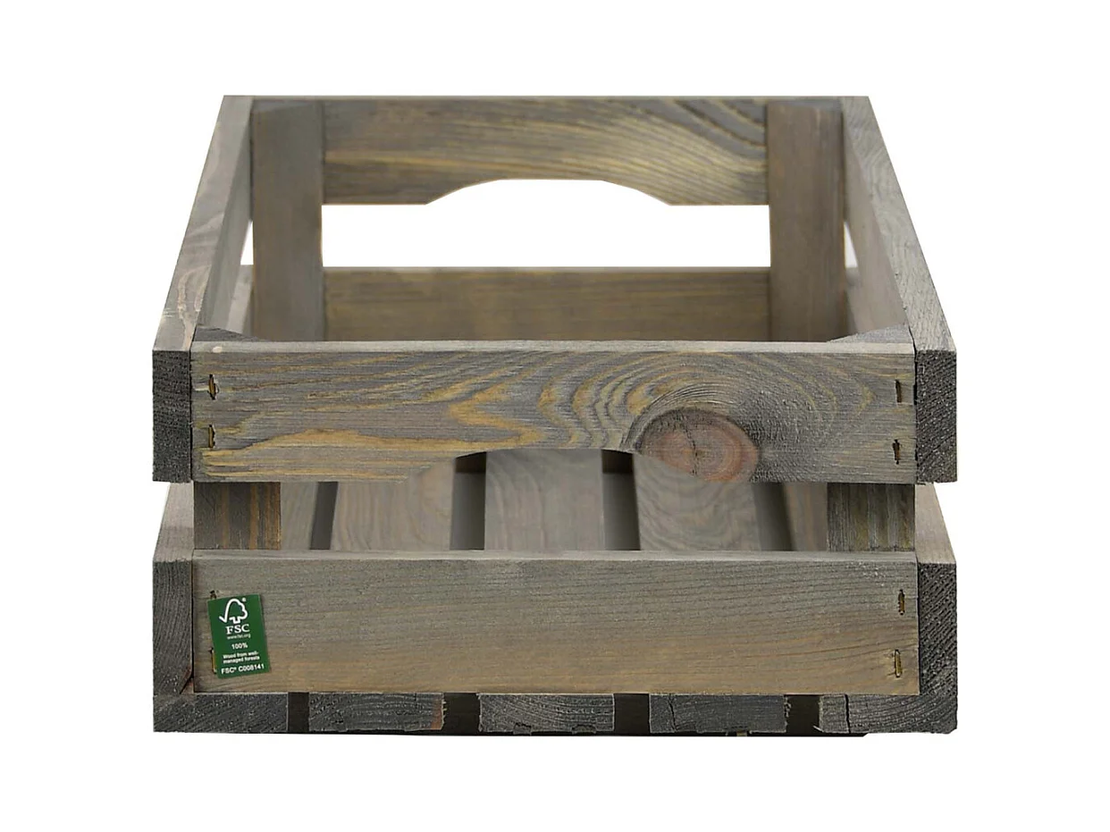 Panier rectangulaire en bois gris 45.5x14.5x11h