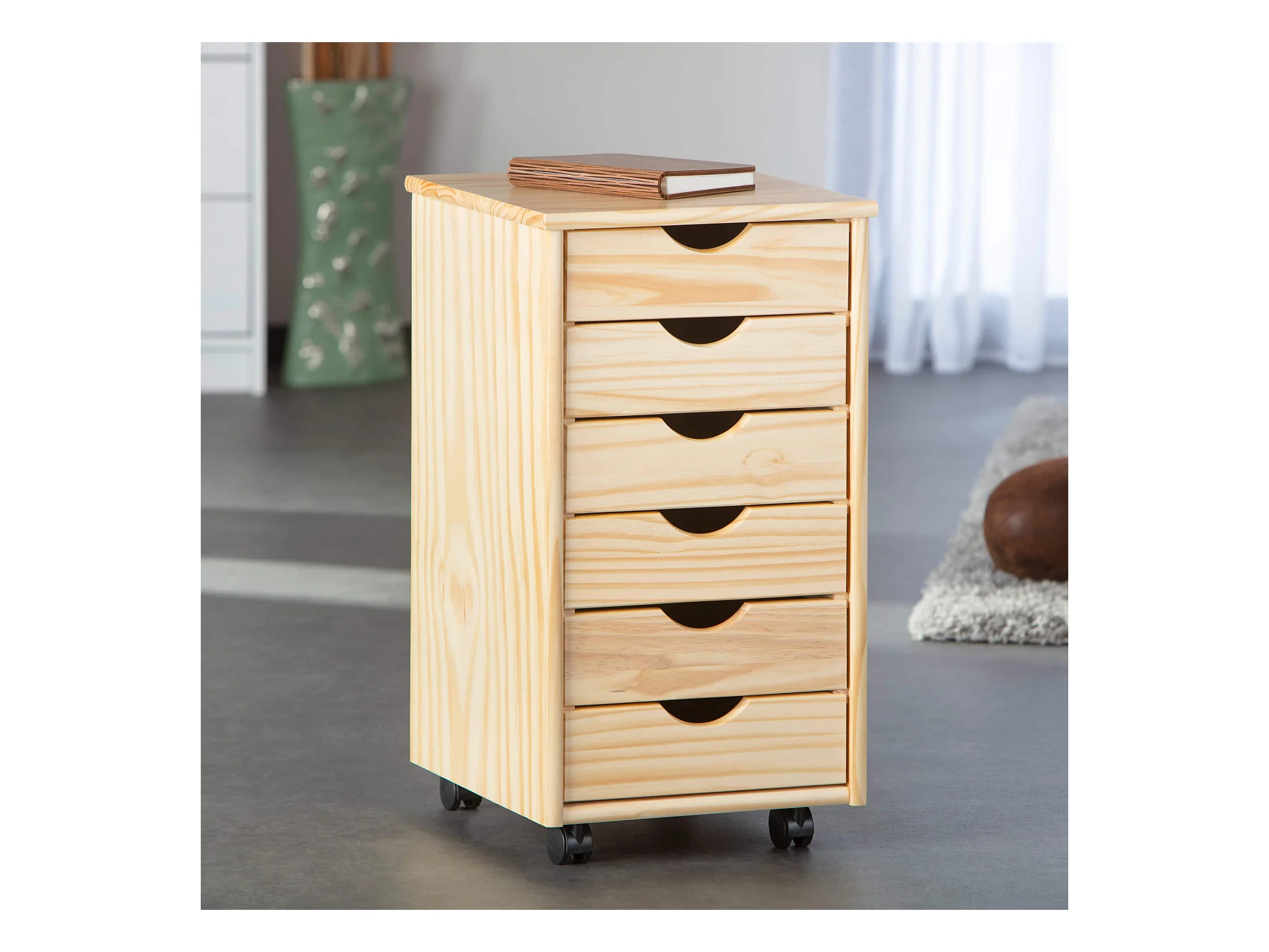 Armoire roulante avec tiroirs MOSS bois de pin marron miel
