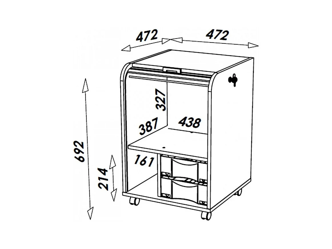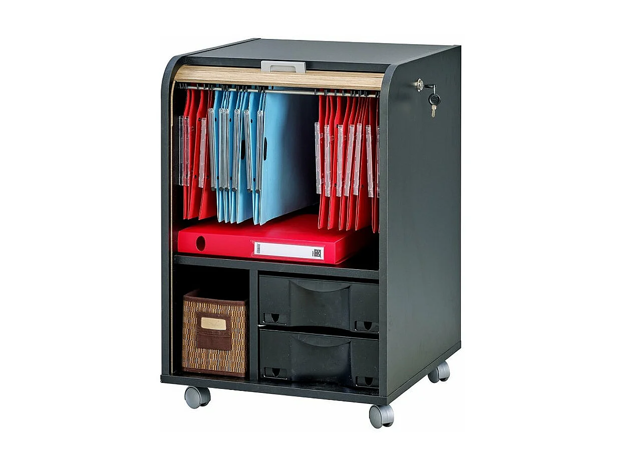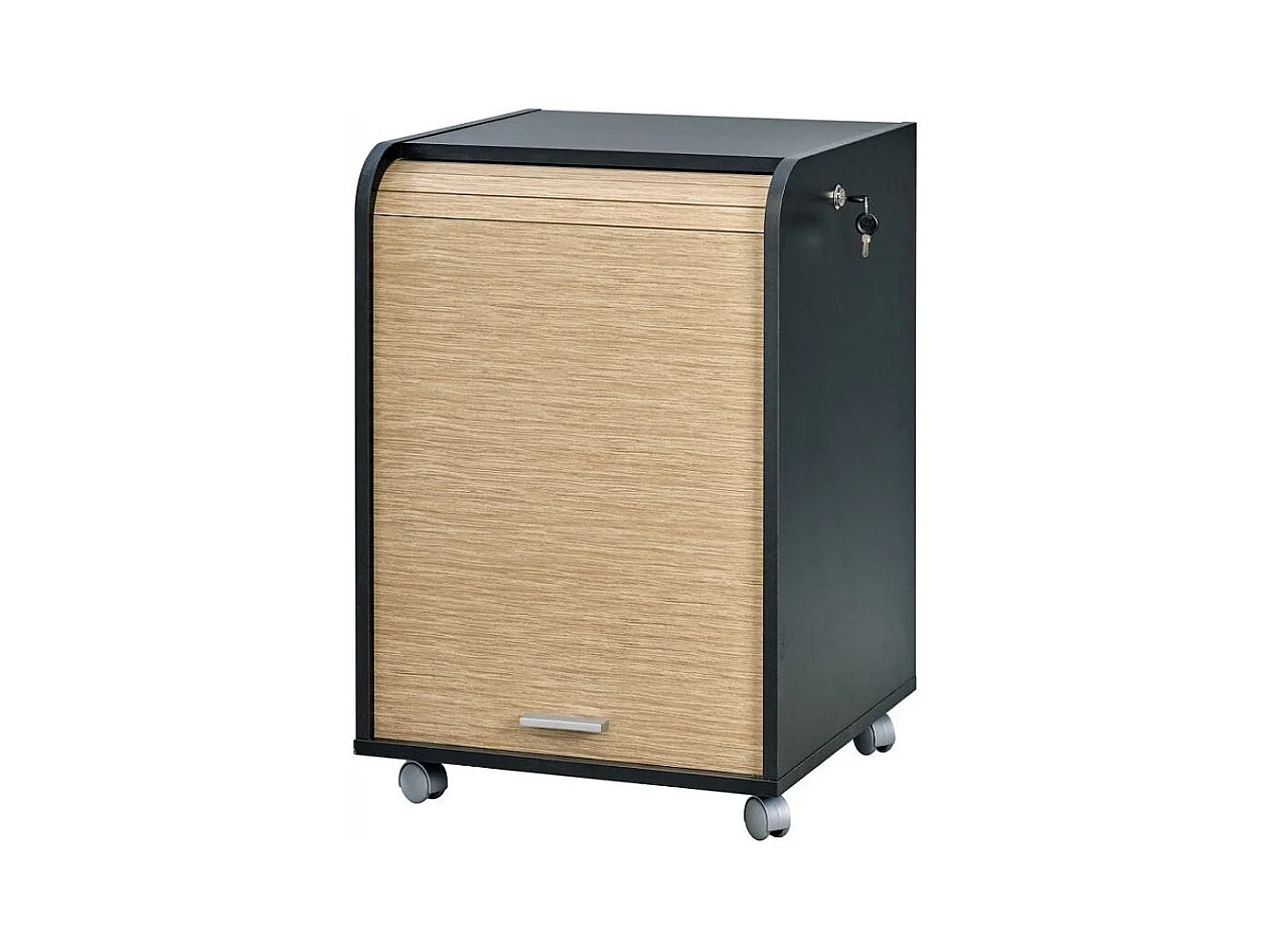 Caisson à rideau sur roulettes 2 tiroirs noir et bois clair Orga 70cm