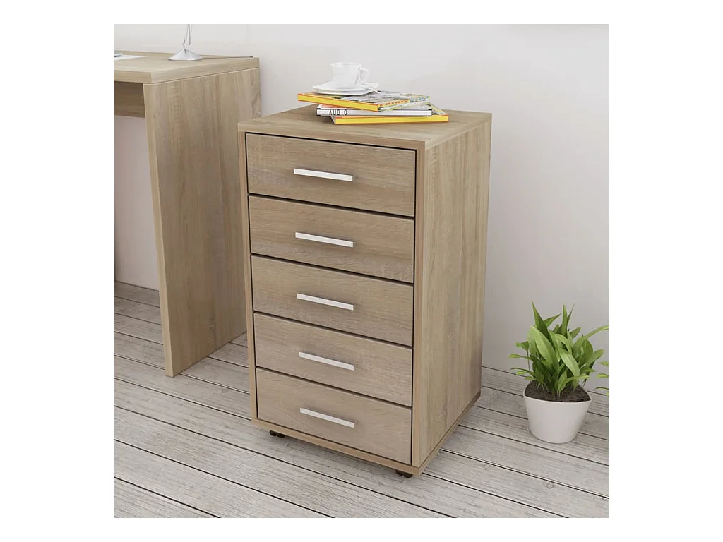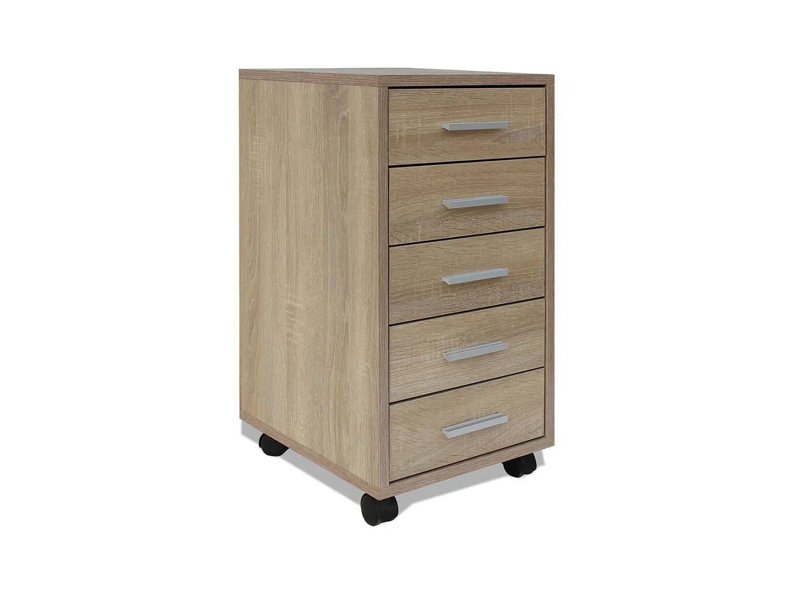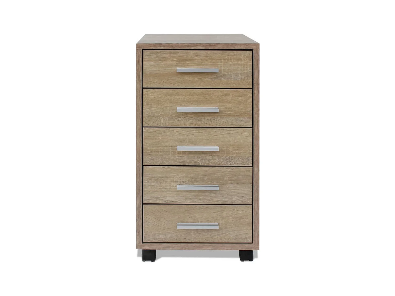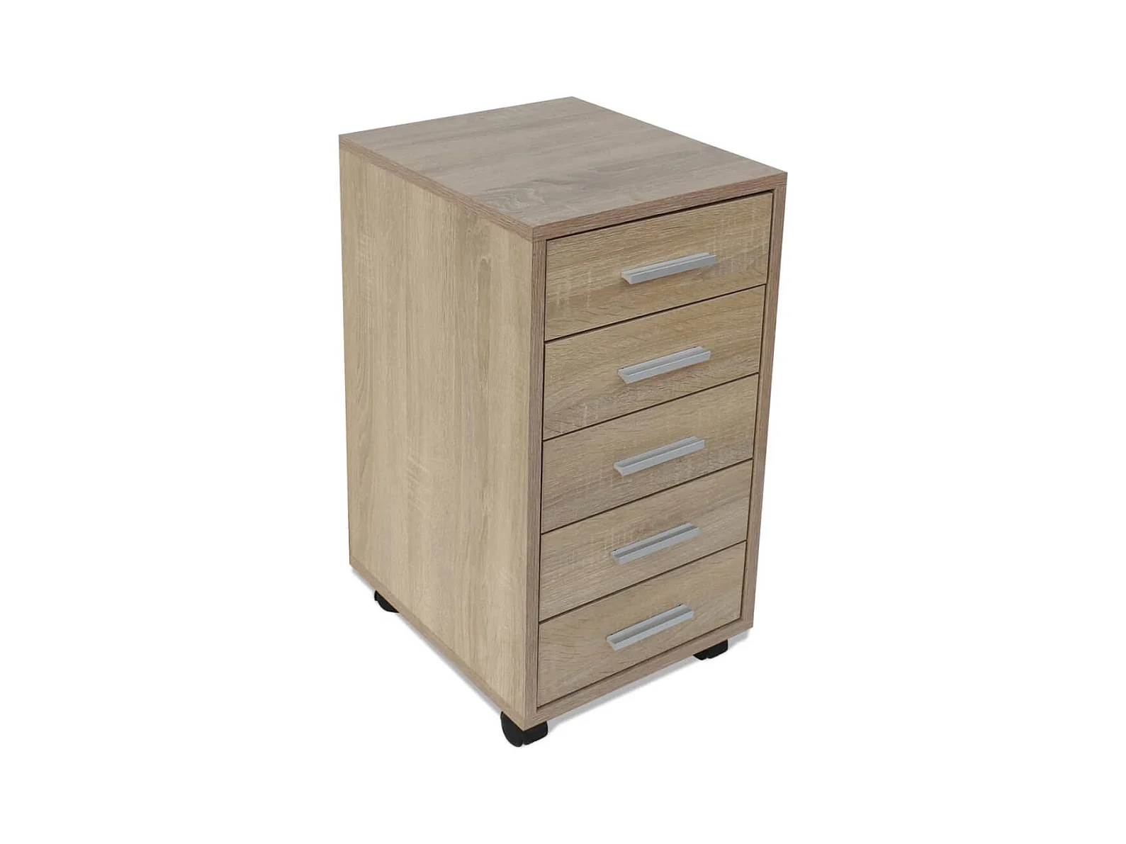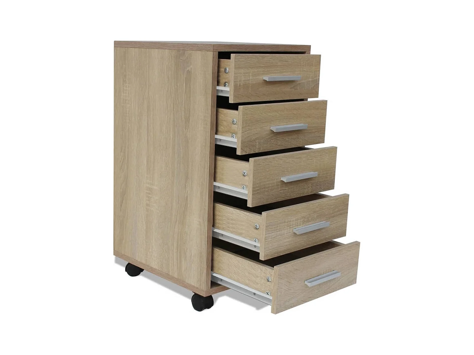 Caisson à tiroir de bureau avec roulettes 5 tiroirs Chêne