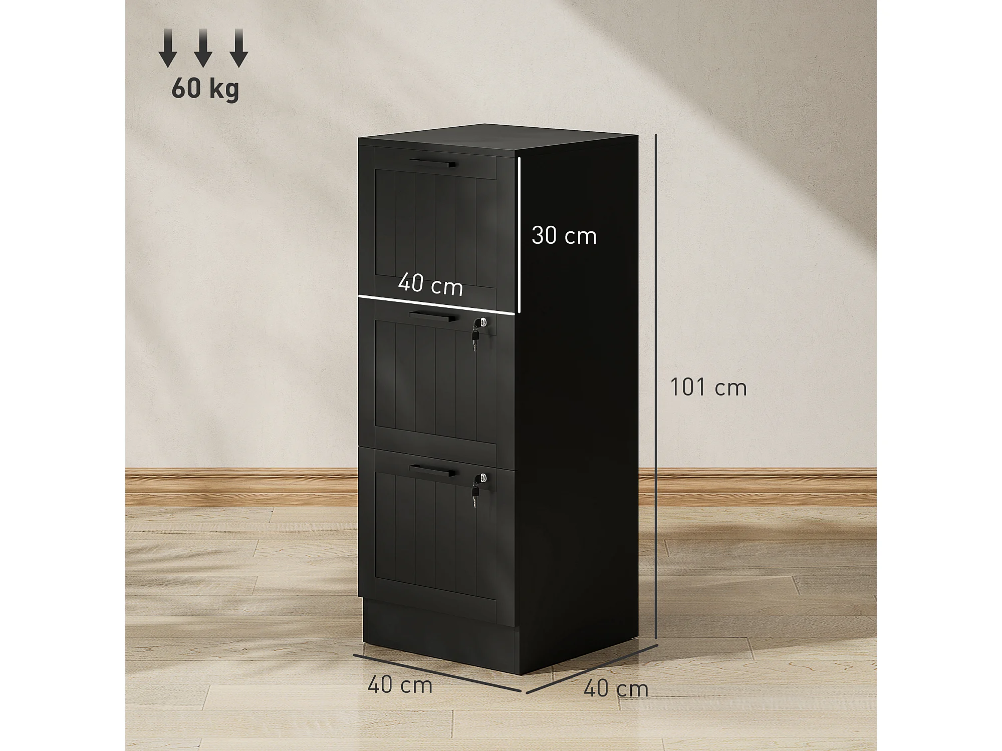 Caisson bureau 2+1 tiroir verrouillable dossiers suspendus dim. 40x40x101cm MDF noir