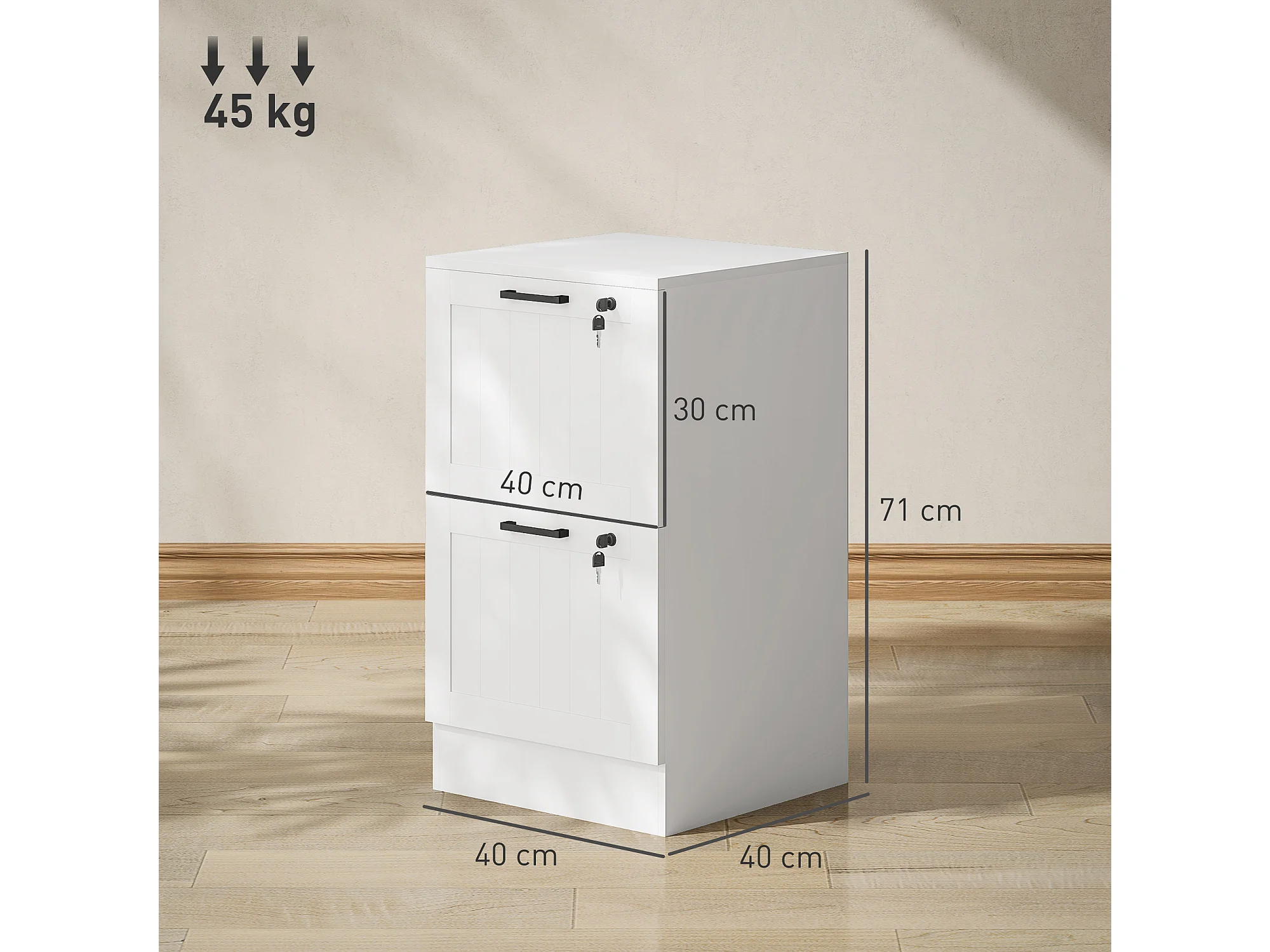 Caisson bureau 2 tiroirs verrouillables dossiers suspendus dim. 40x40x71cm MDF blanc