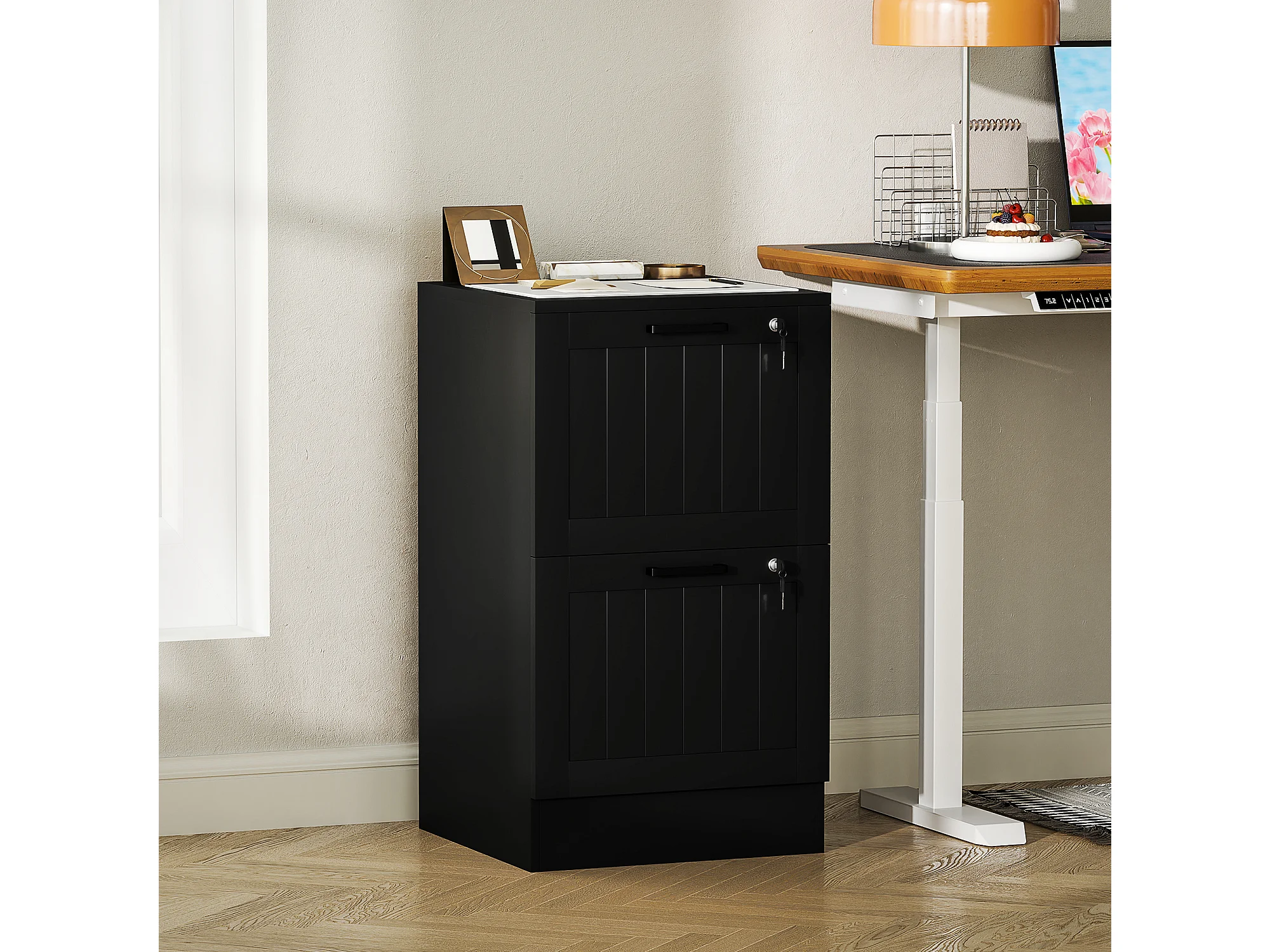 Caisson bureau 2+1 tiroir verrouillable dossiers suspendus dim. 40x40x101cm MDF noir
