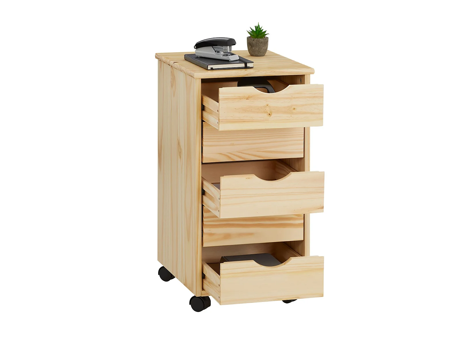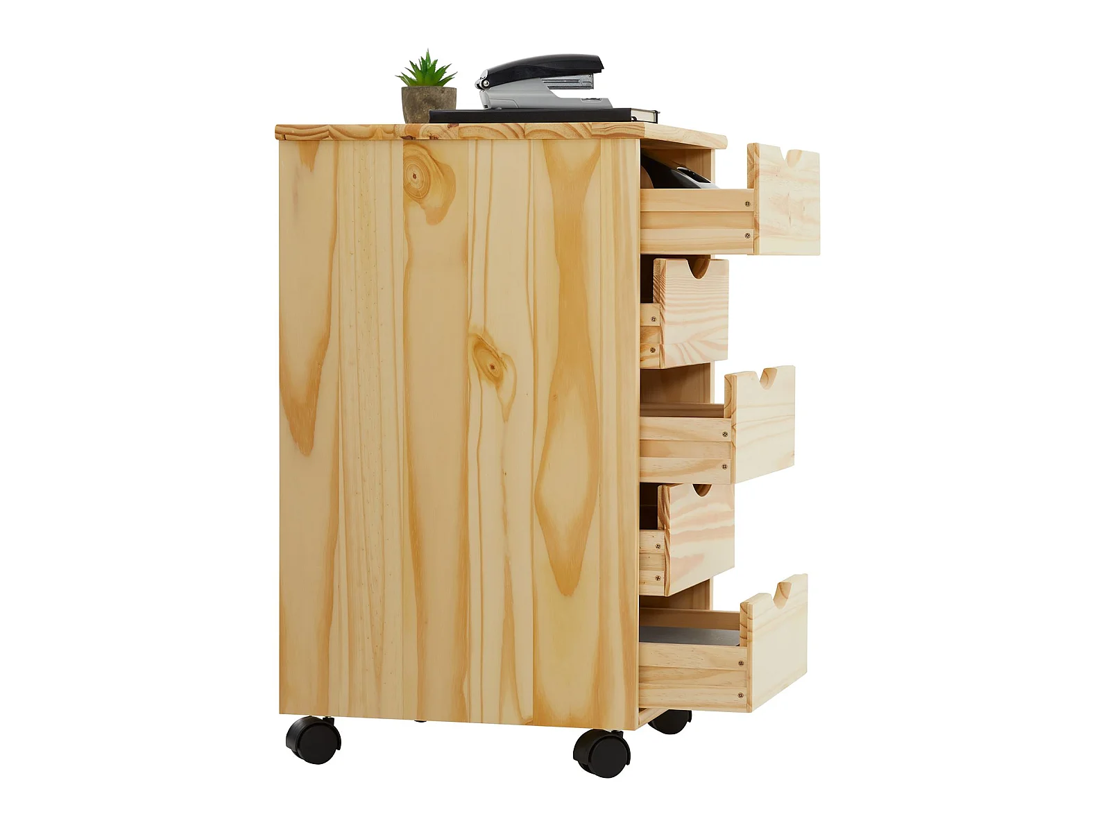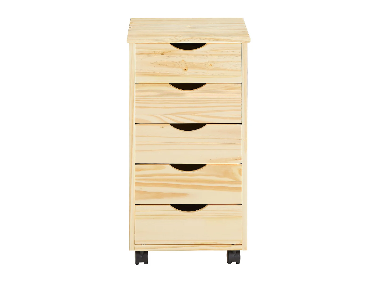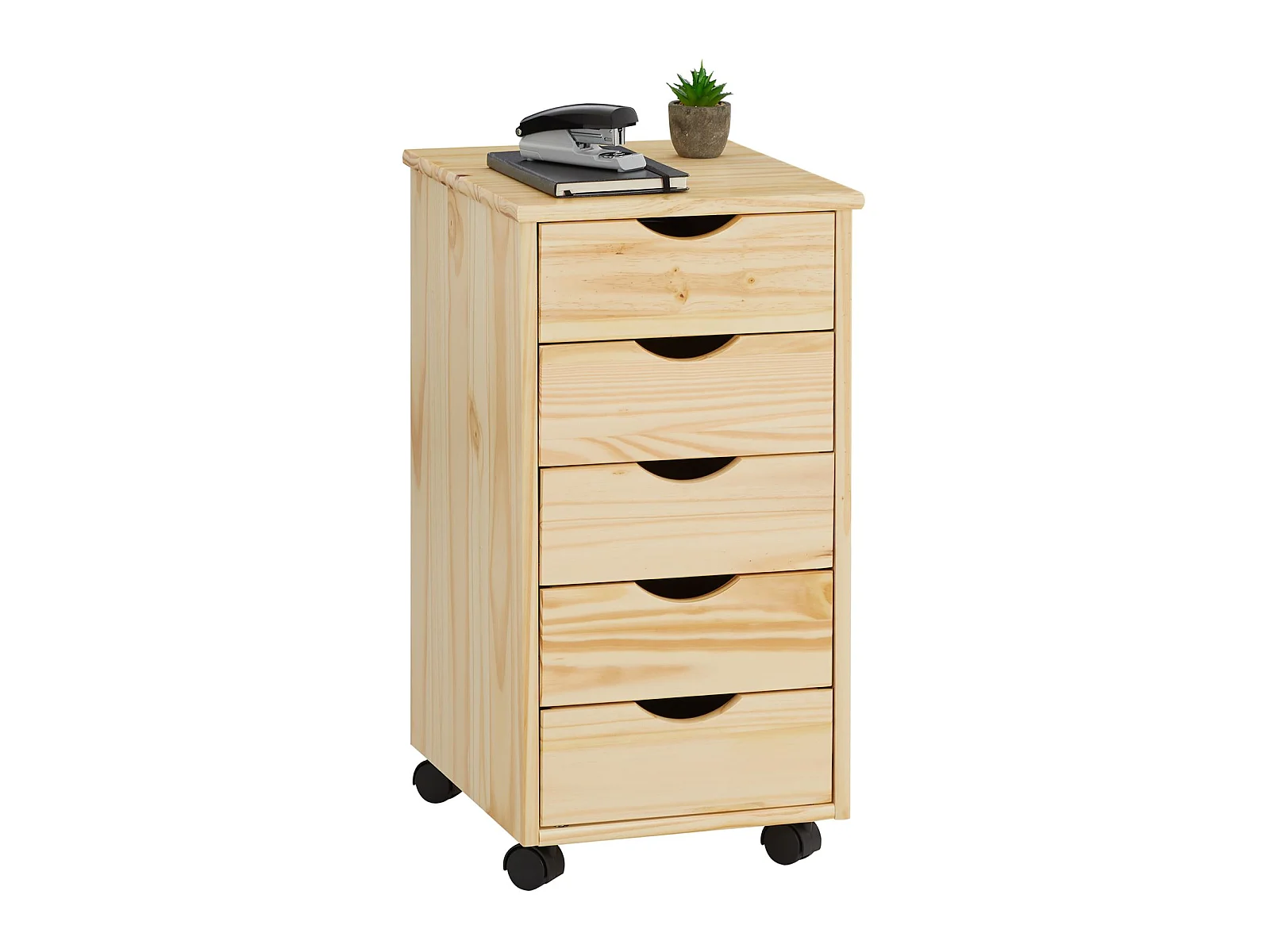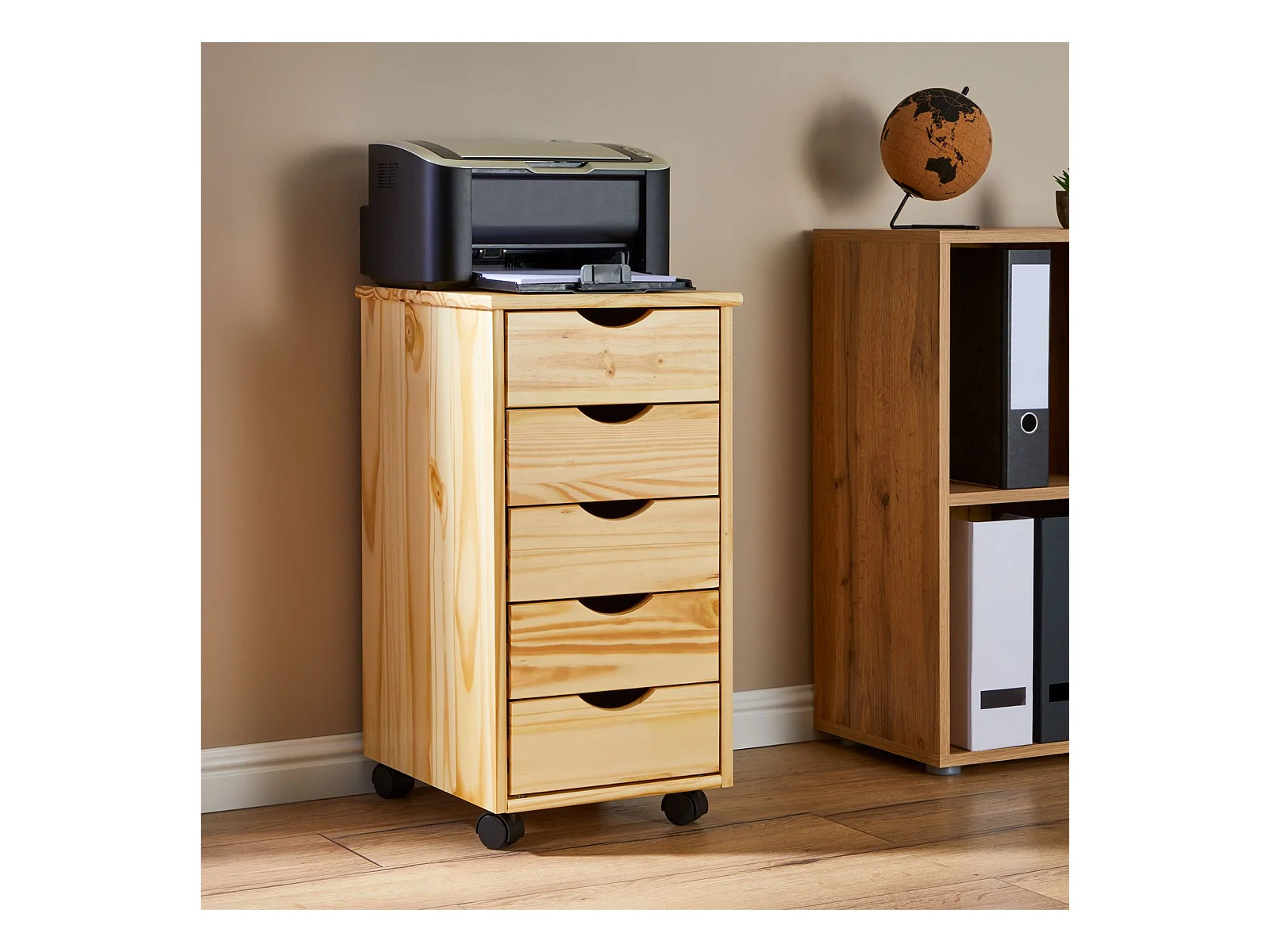 Caisson de bureau LAGOS meuble de rangement sur roulettes avec 5 tiroirs, en pin massif finition vernis naturel