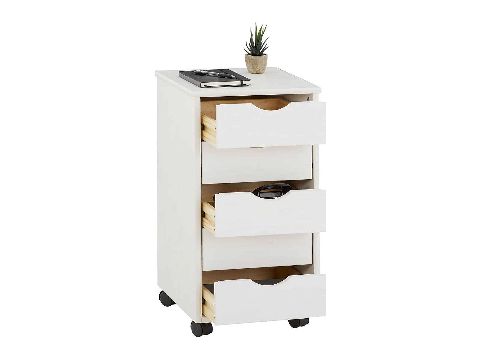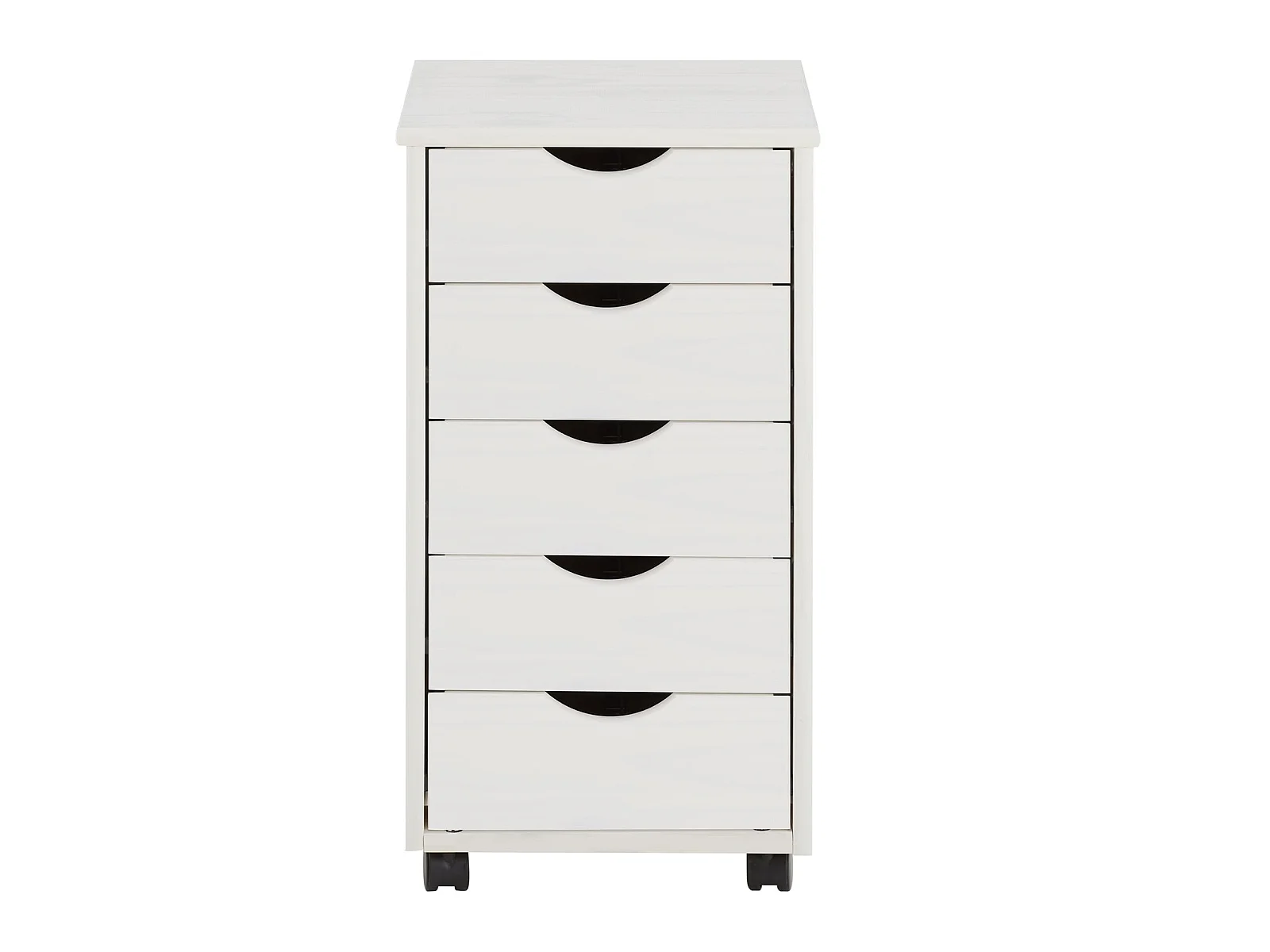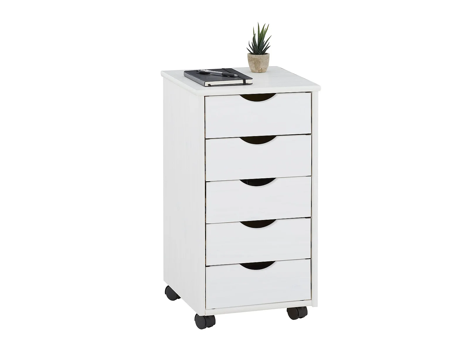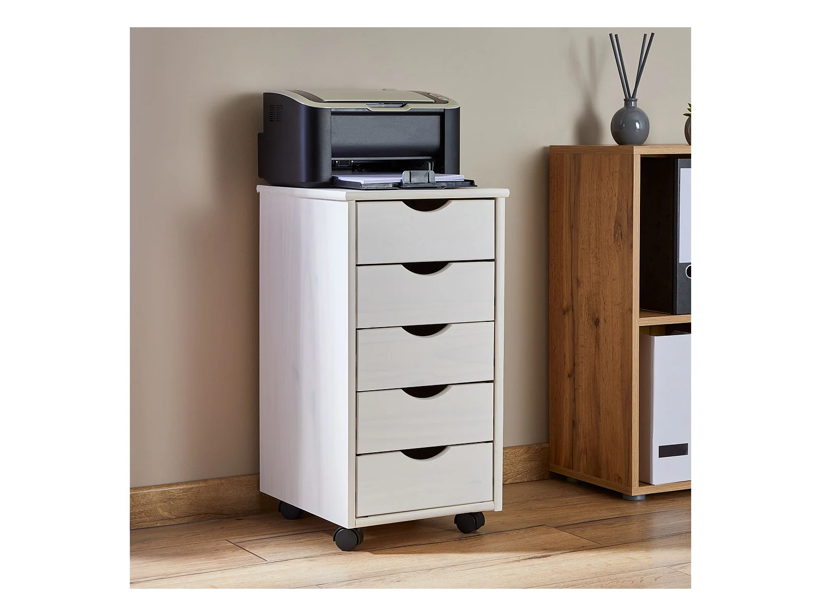 Caisson de bureau LAGOS meuble de rangement sur roulettes avec 5 tiroirs, en pin massif lasuré blanc