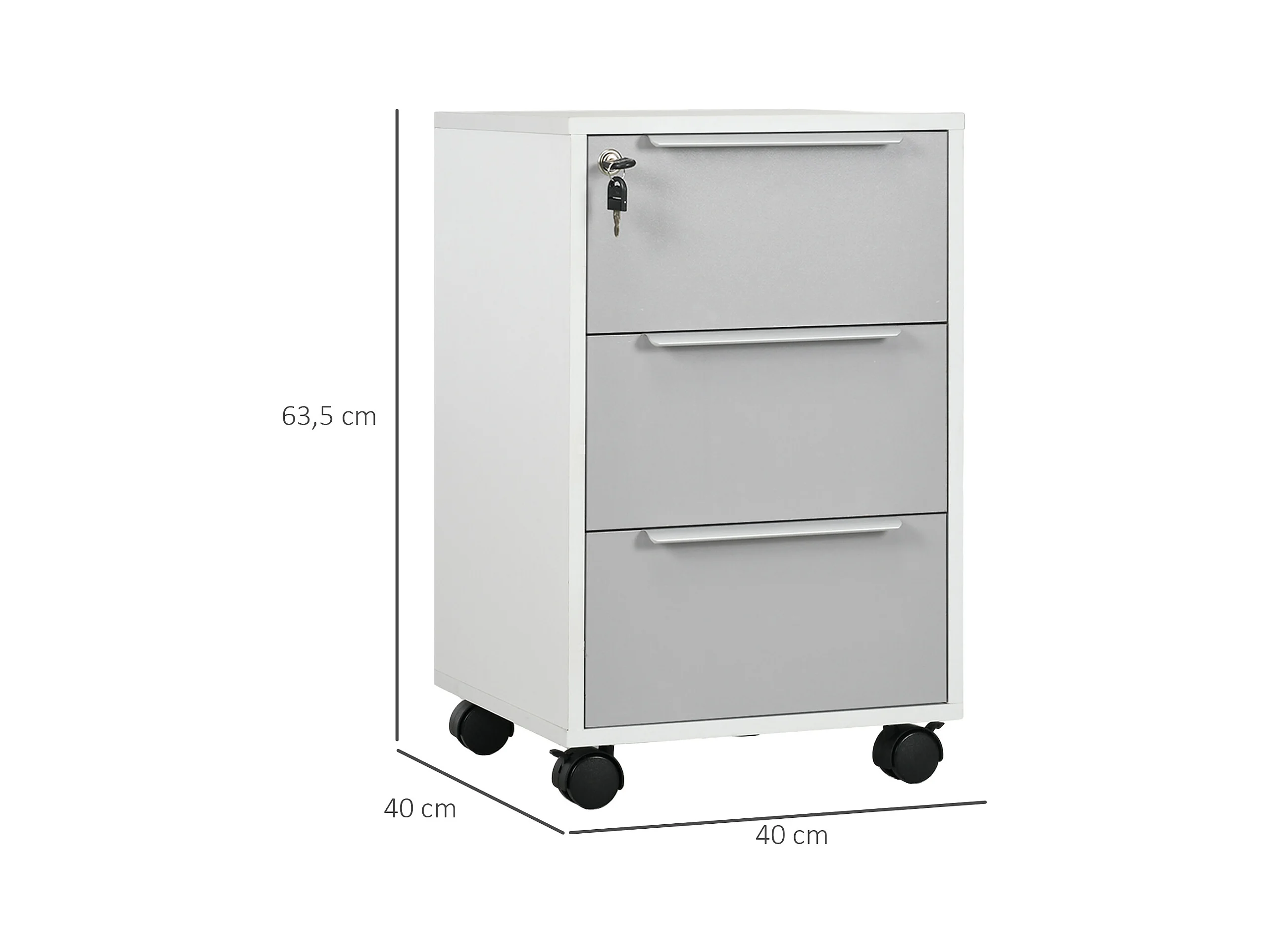 Caisson de bureau rangement bureau sur roulettes 3 tiroirs verrouillables 2 clés fournies panneaux gris blanc