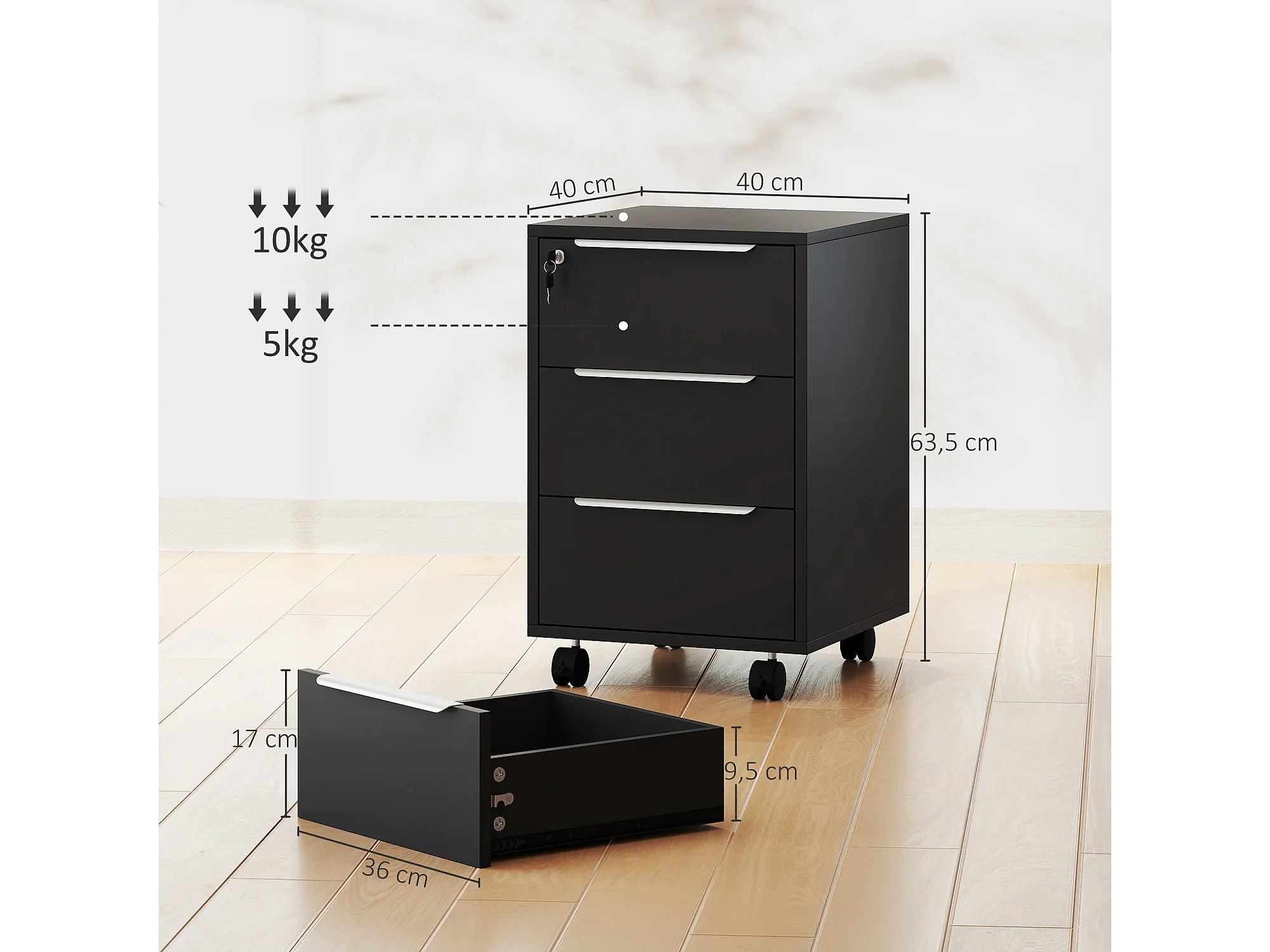 Caisson de bureau rangement bureau sur roulettes 3 tiroirs verrouillables 2 clés fournies panneaux noir