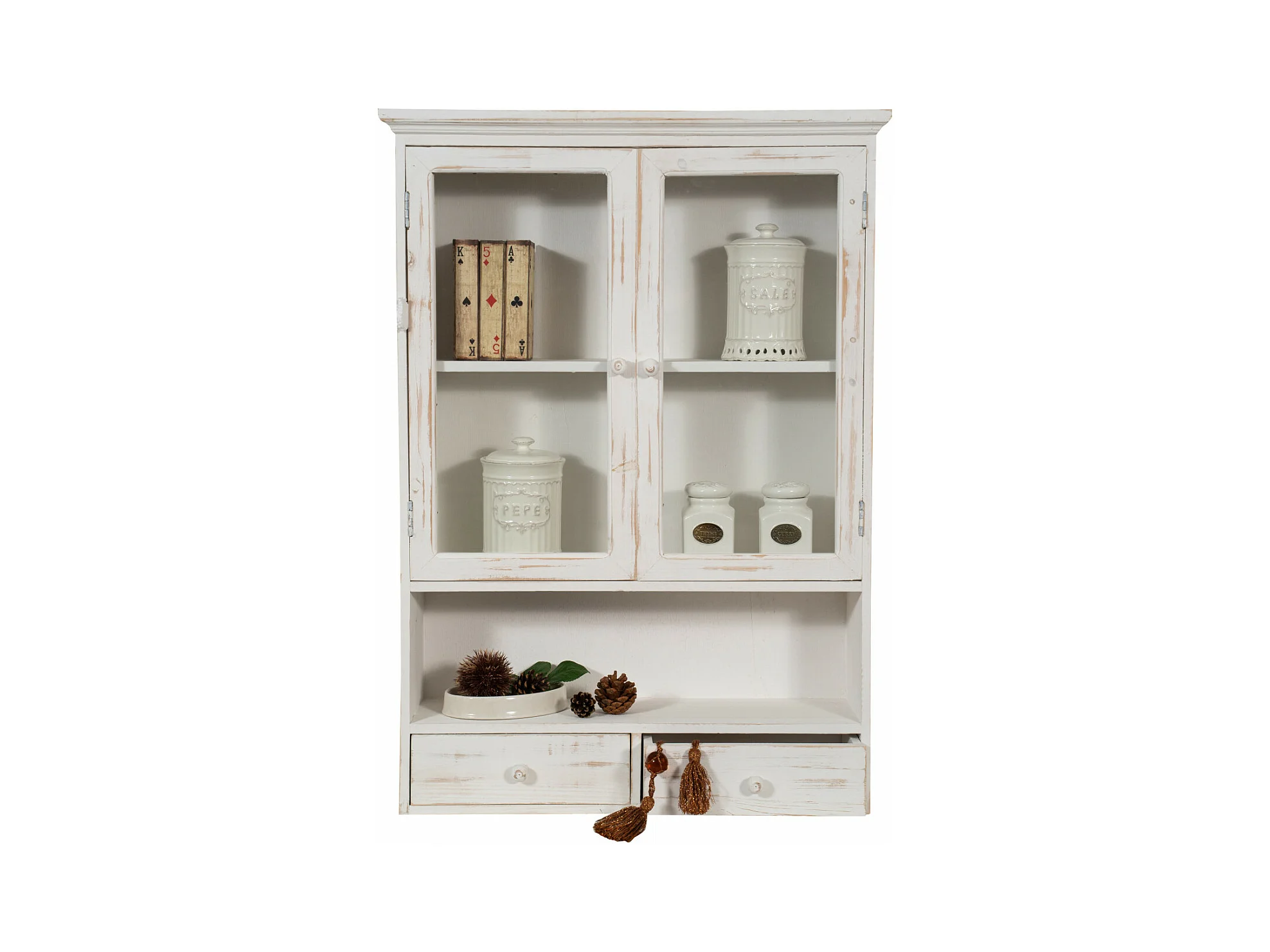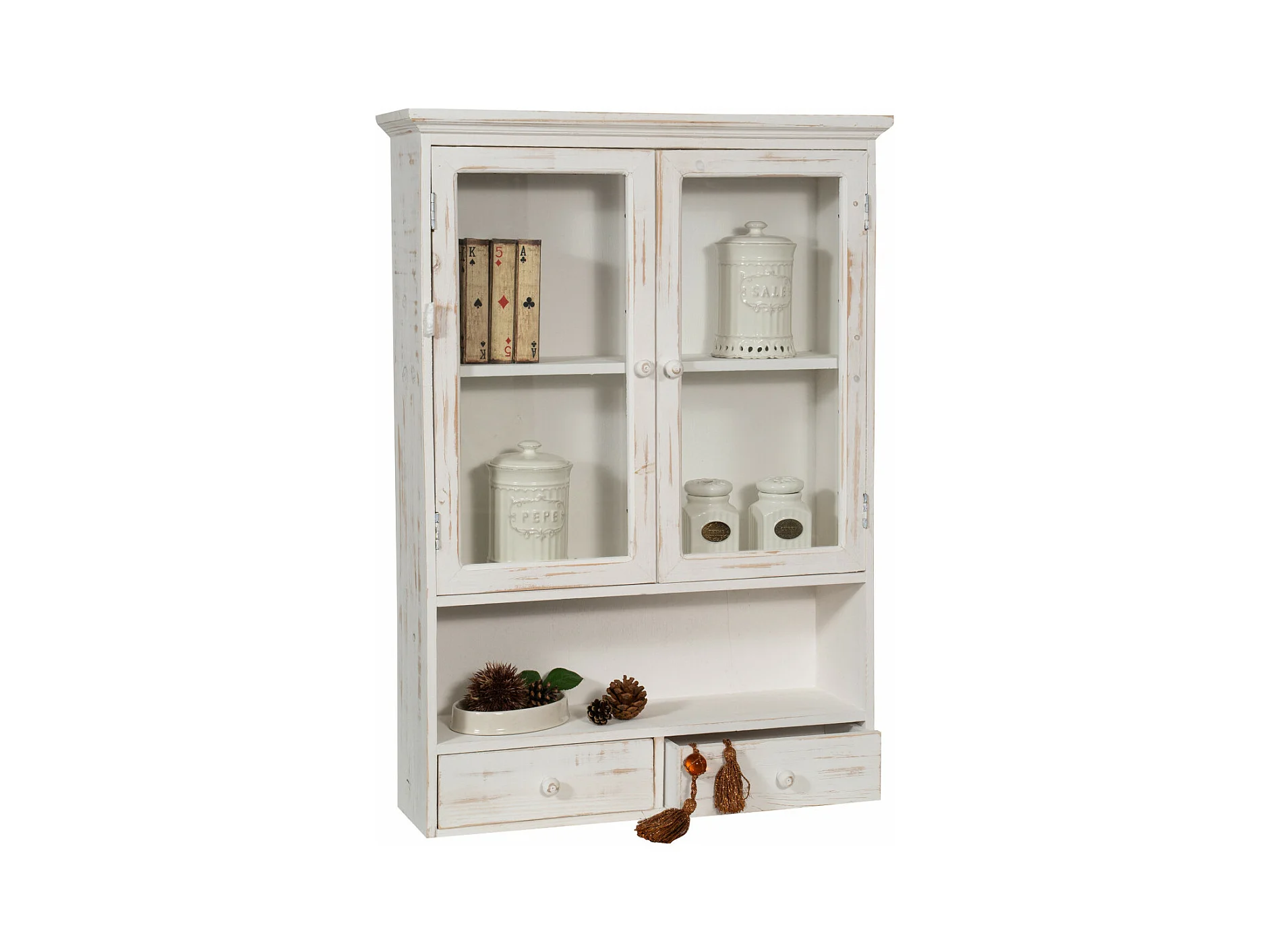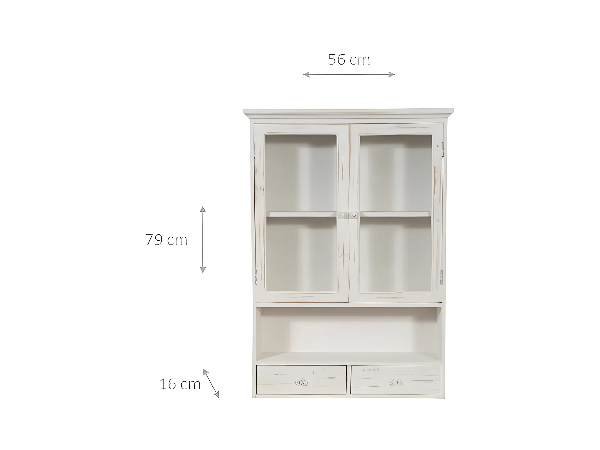 BISCOTTINI Commode en Bois - Buffet Finition Blanc Antique - Vitrine pour Chambre et Salon - 56x16x79cm