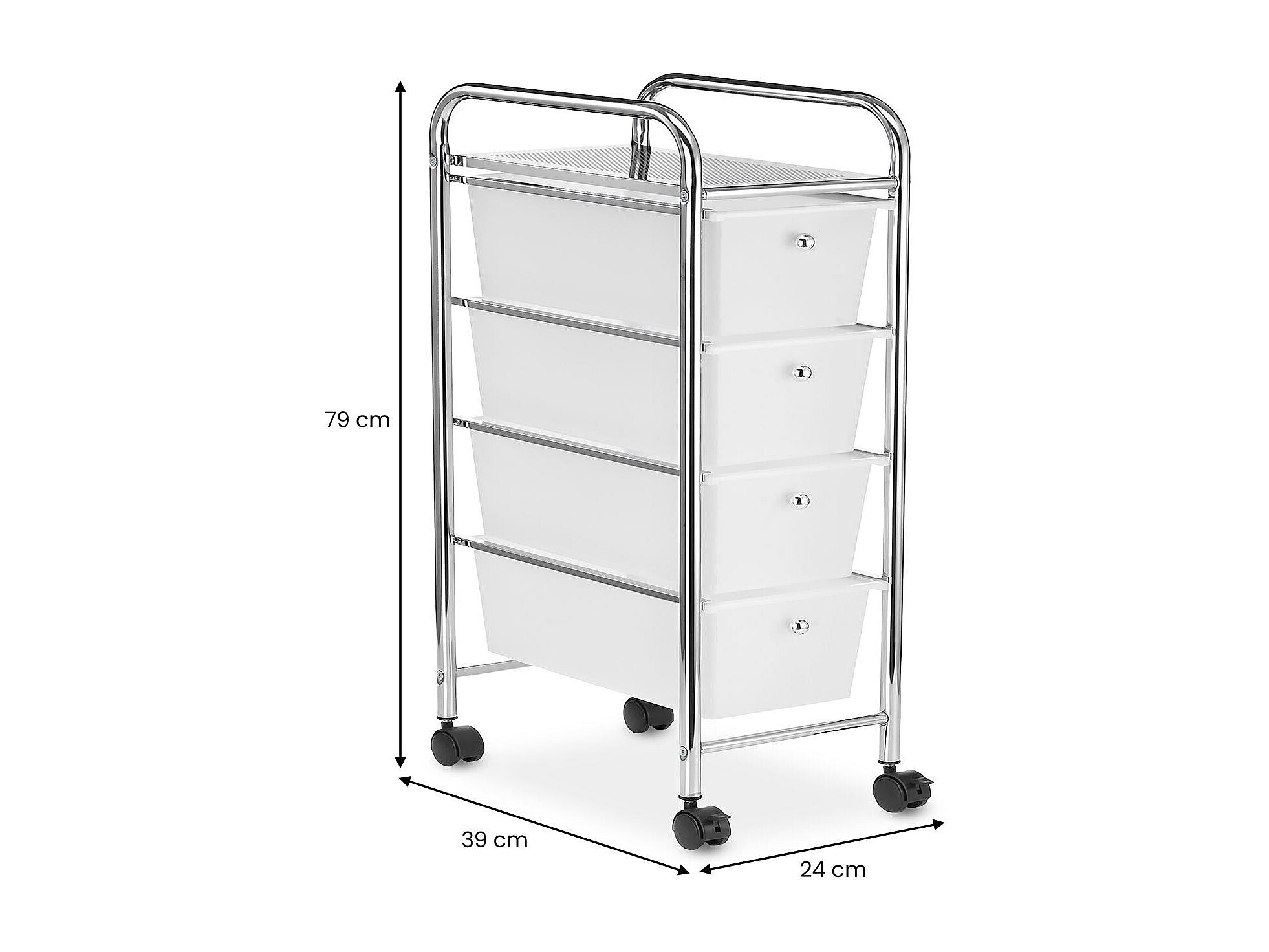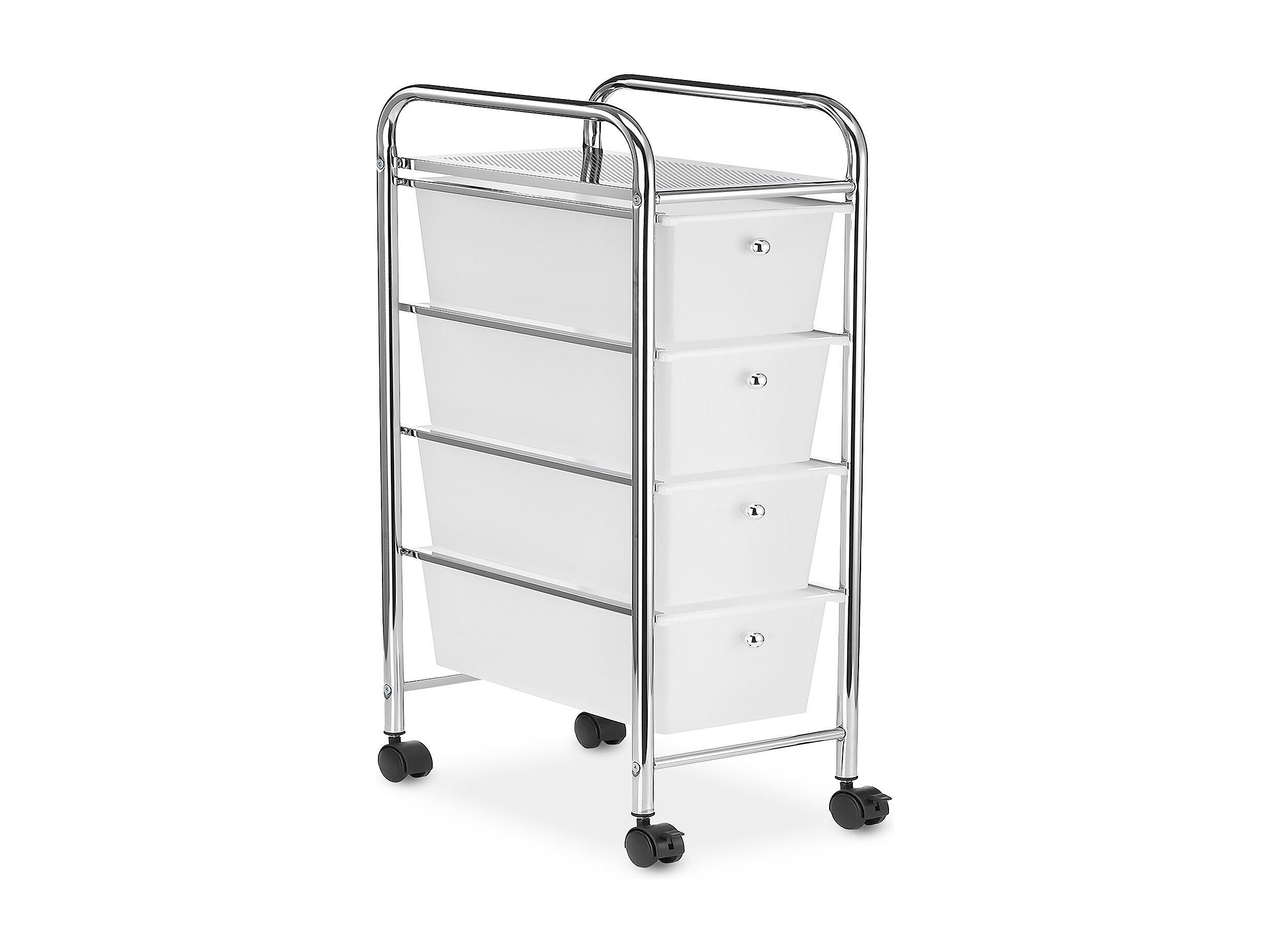 Caisson de rangement sur roulettes GINA, colonne 4 tiroirs et 1 étagère pour salle de bain ou bureau, en plastique et métal