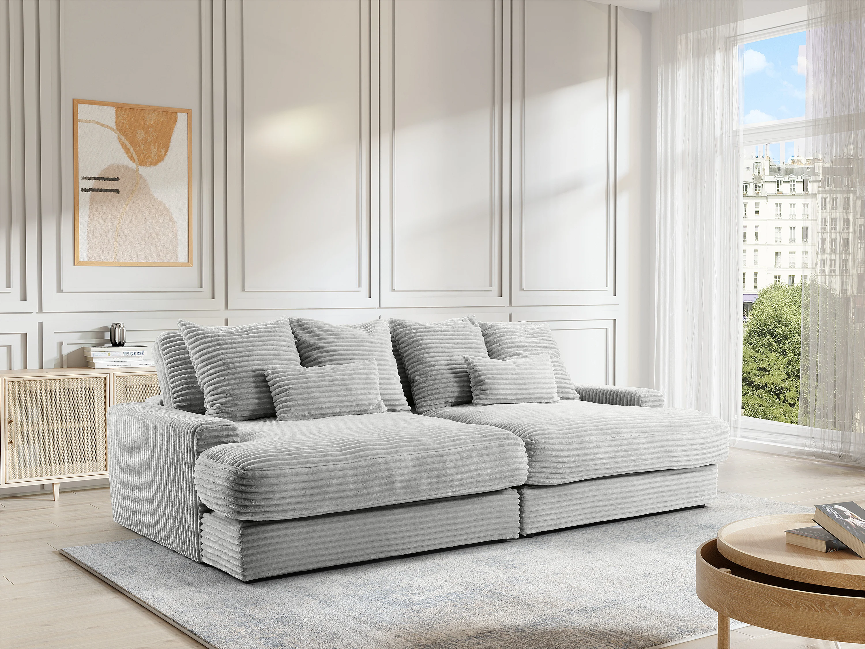 Canapé 4 places confort assise profonde en velours côtelé grosses côtes gris CALAZO de Pascal Morabito