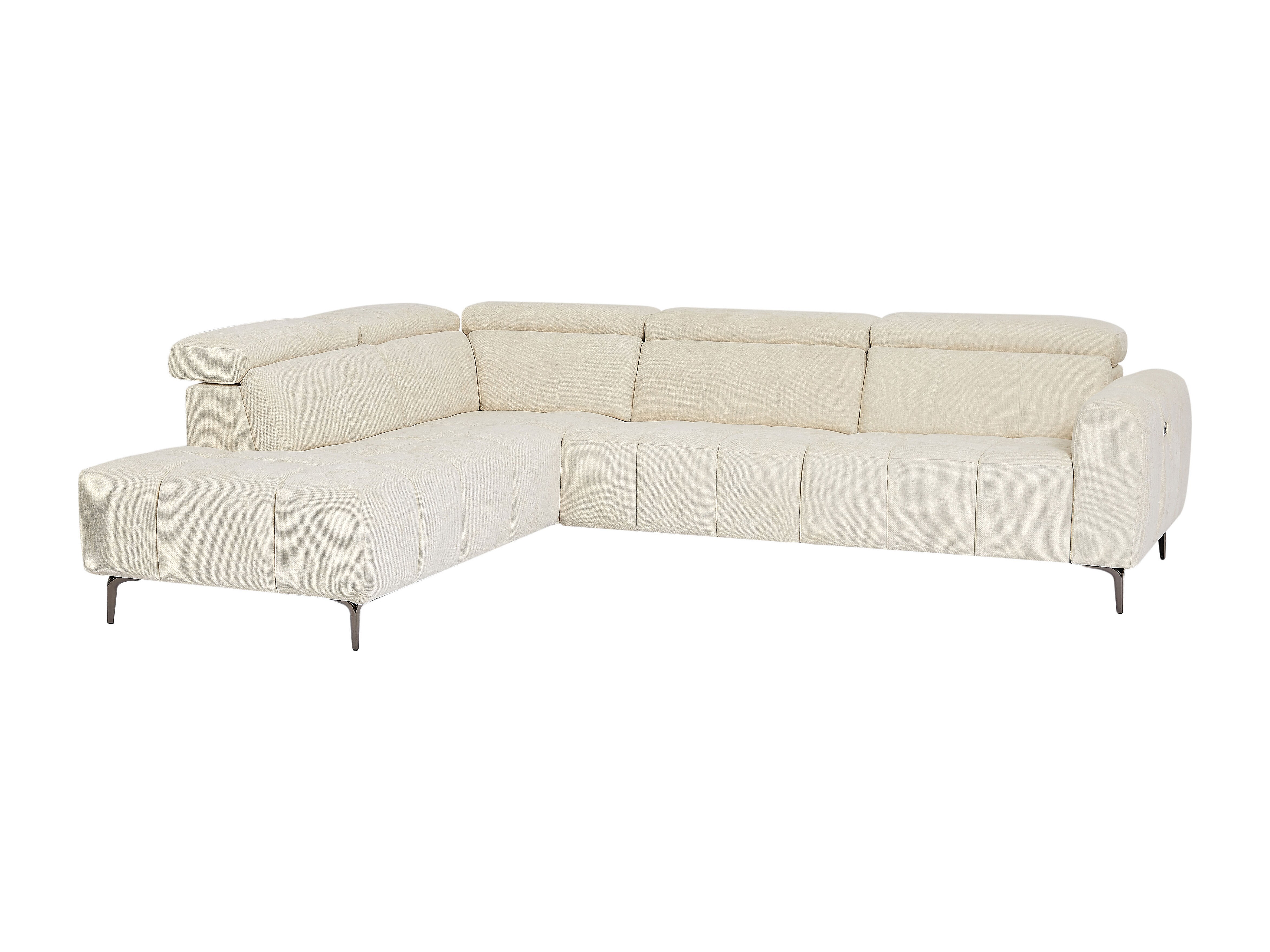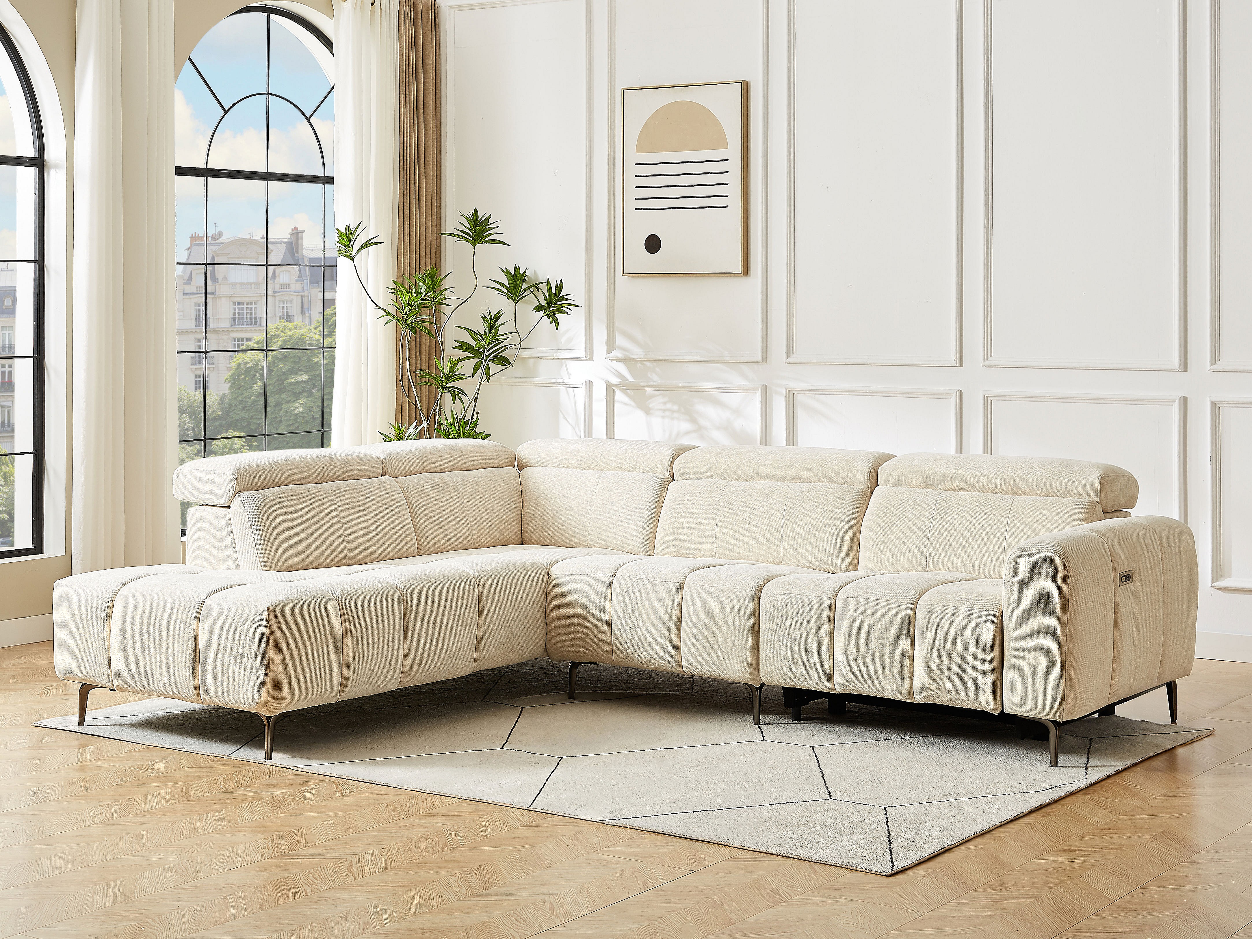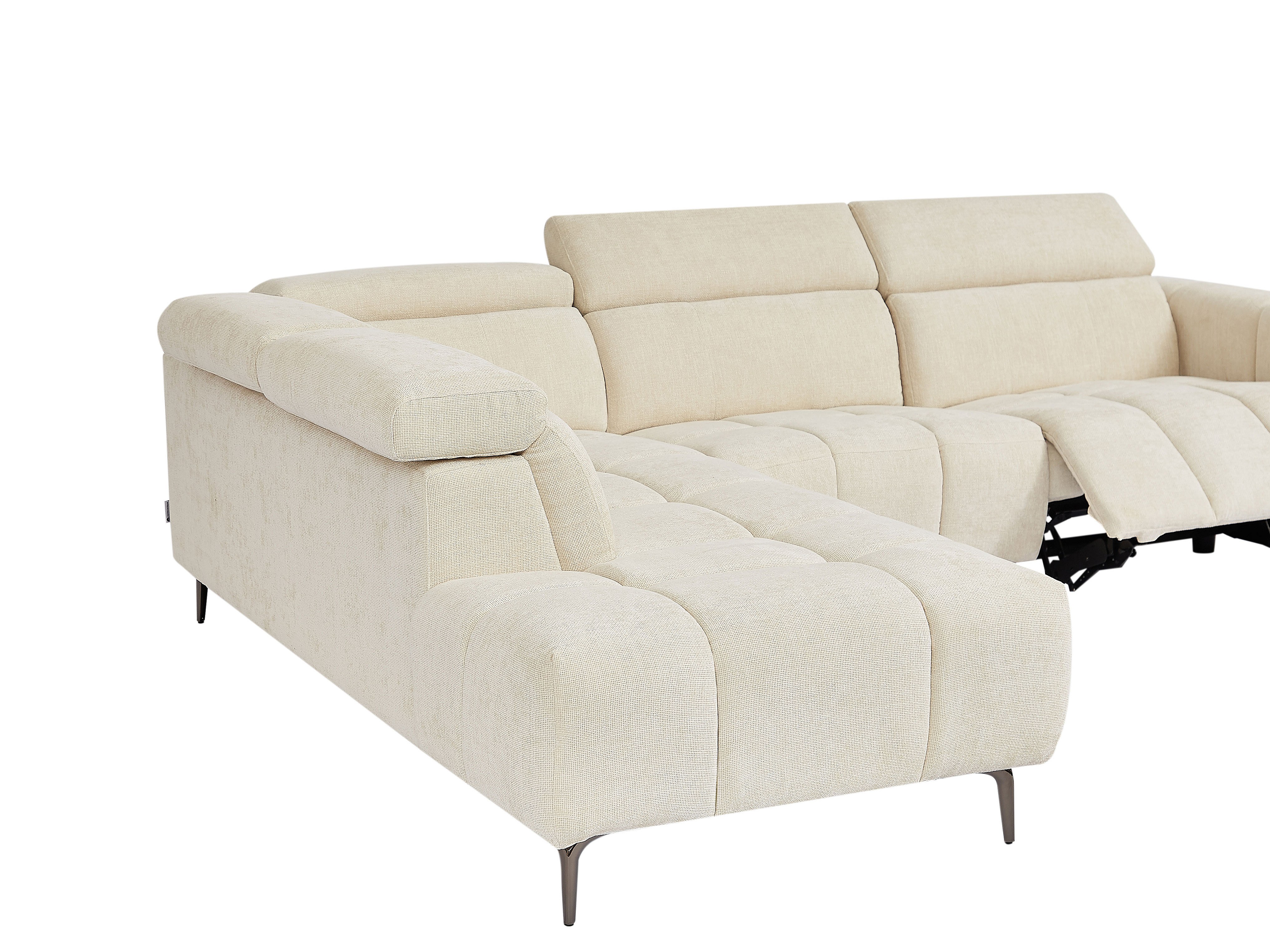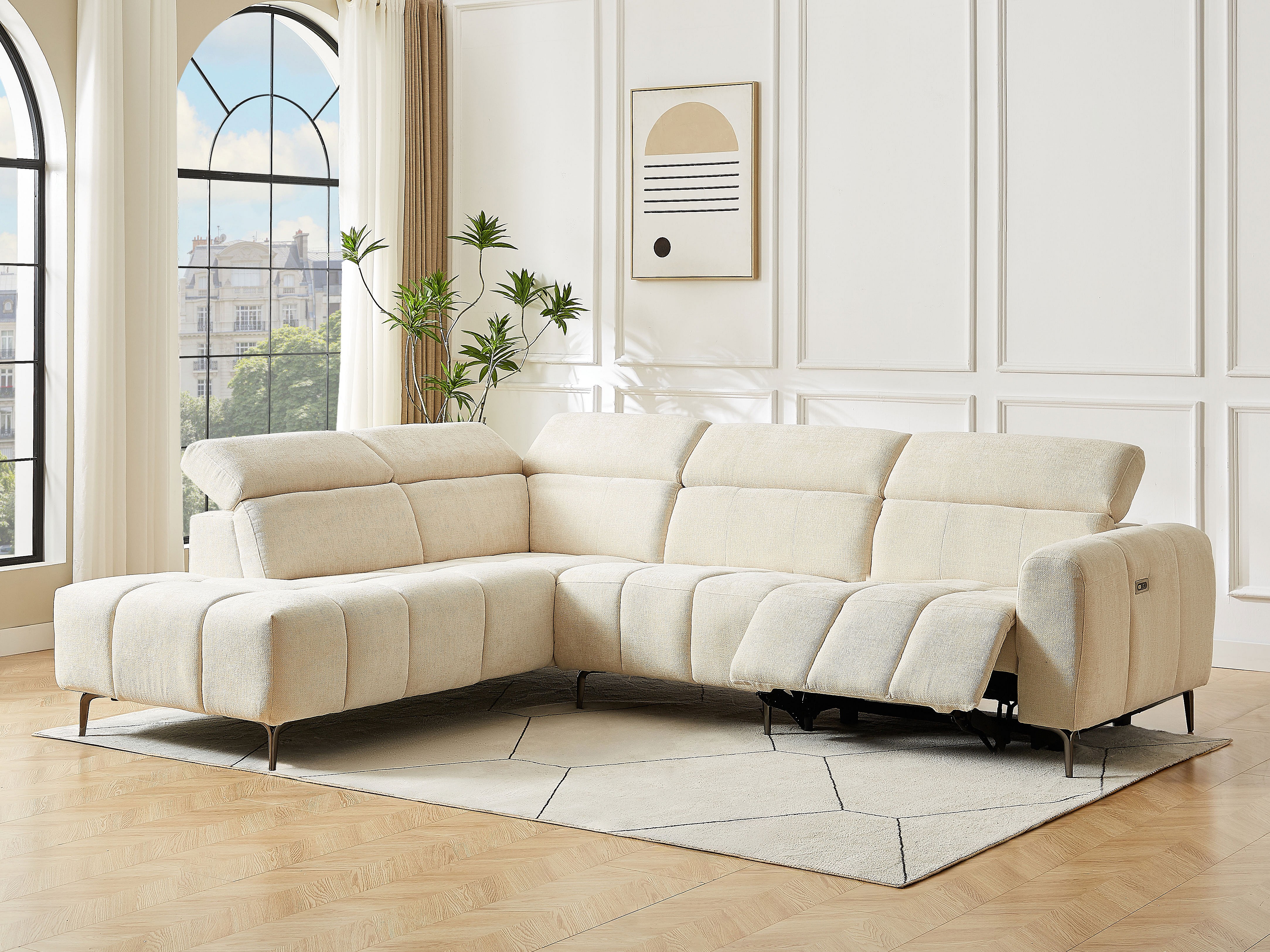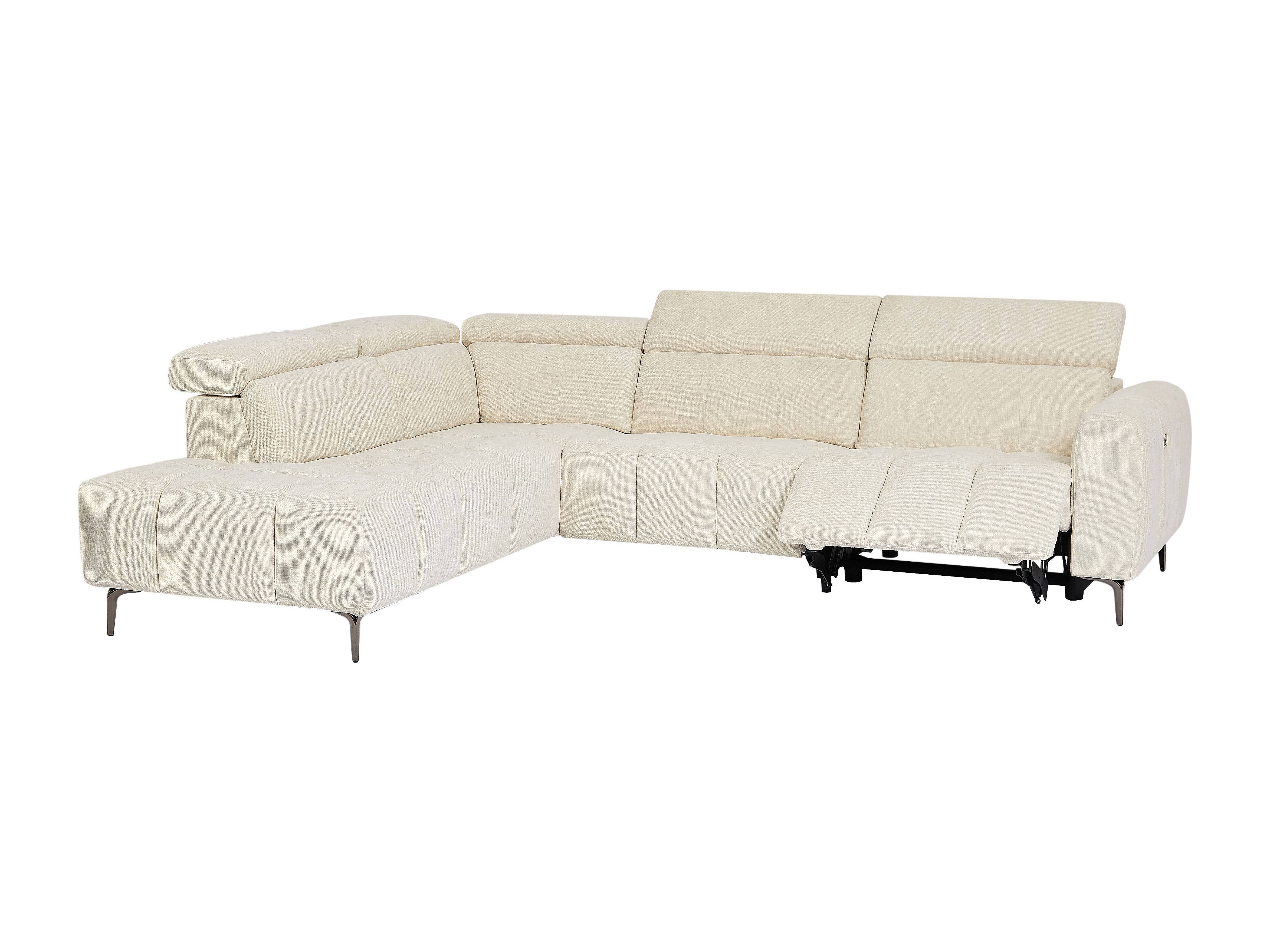 Canapé d'angle gauche relax électrique en tissu texturé beige CALDORIA