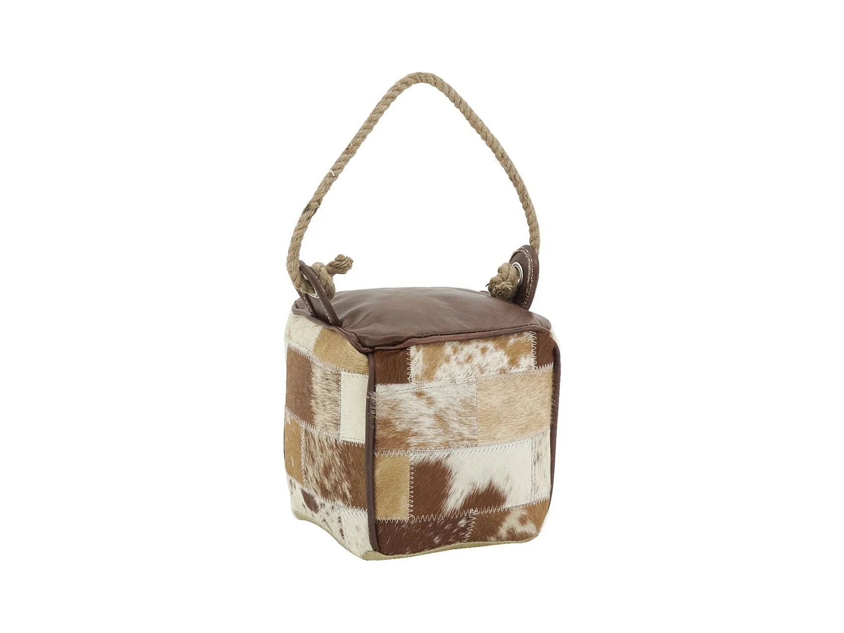 Arrêt de porte en cuir et corde marron 20x20x20h