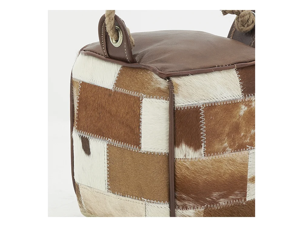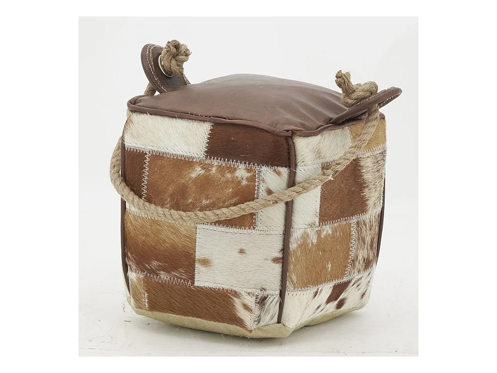 Cale-porte en cuir marron et corde 20x20x20h cm