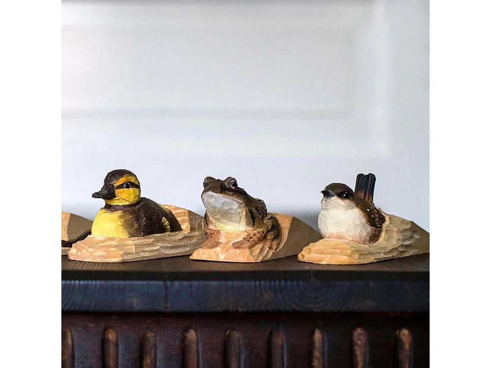Cale-porte en bois sculpté à la main Animal Grenouille des champs