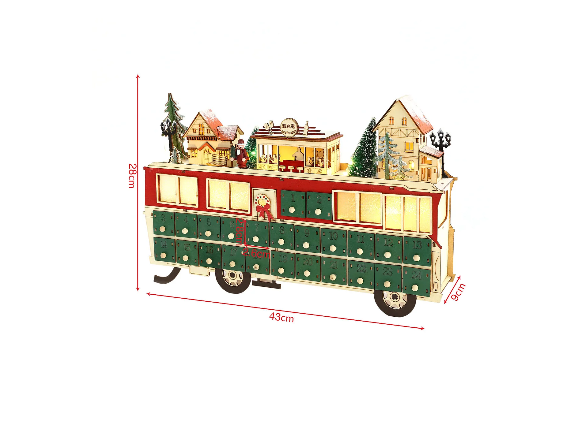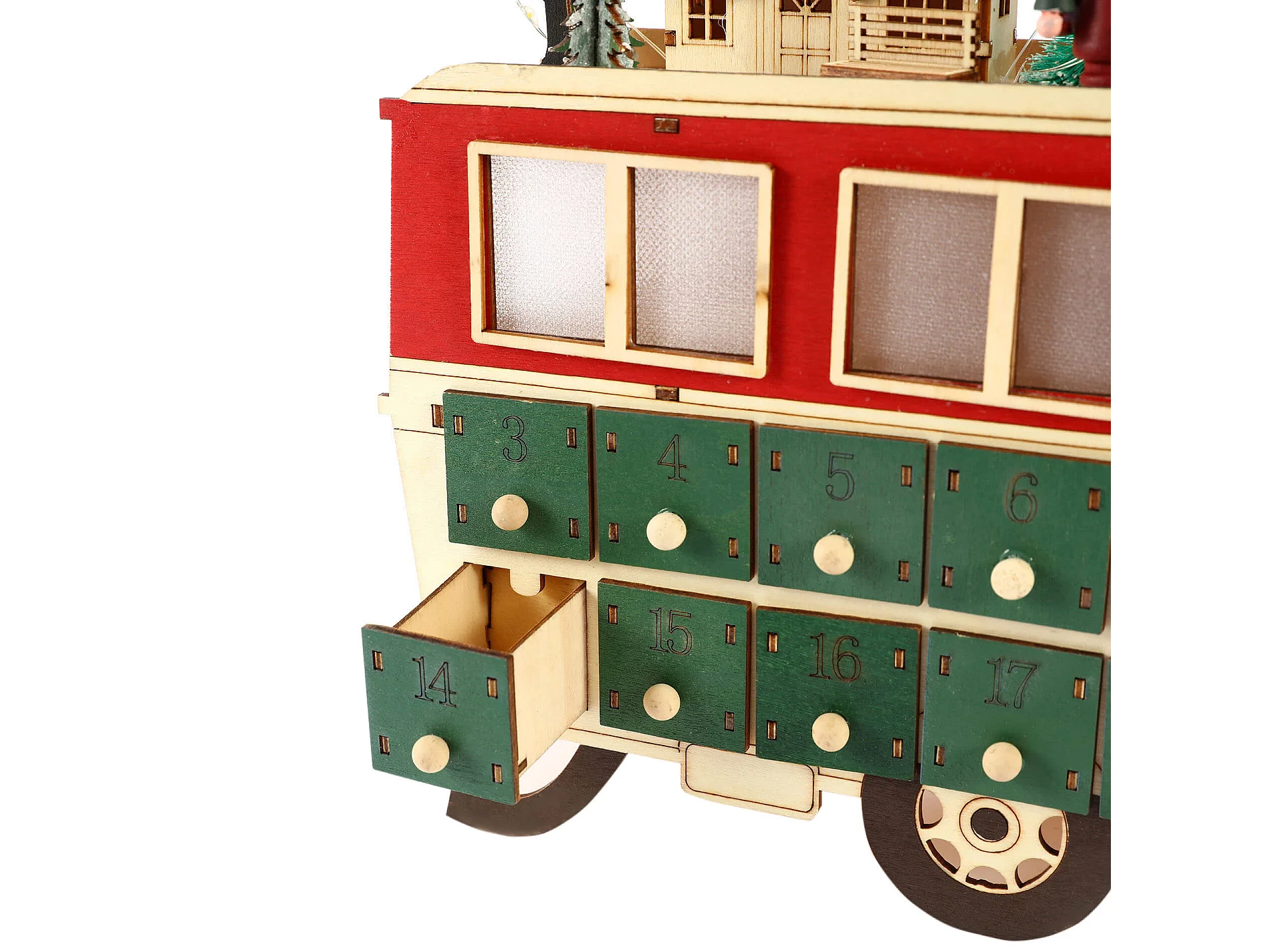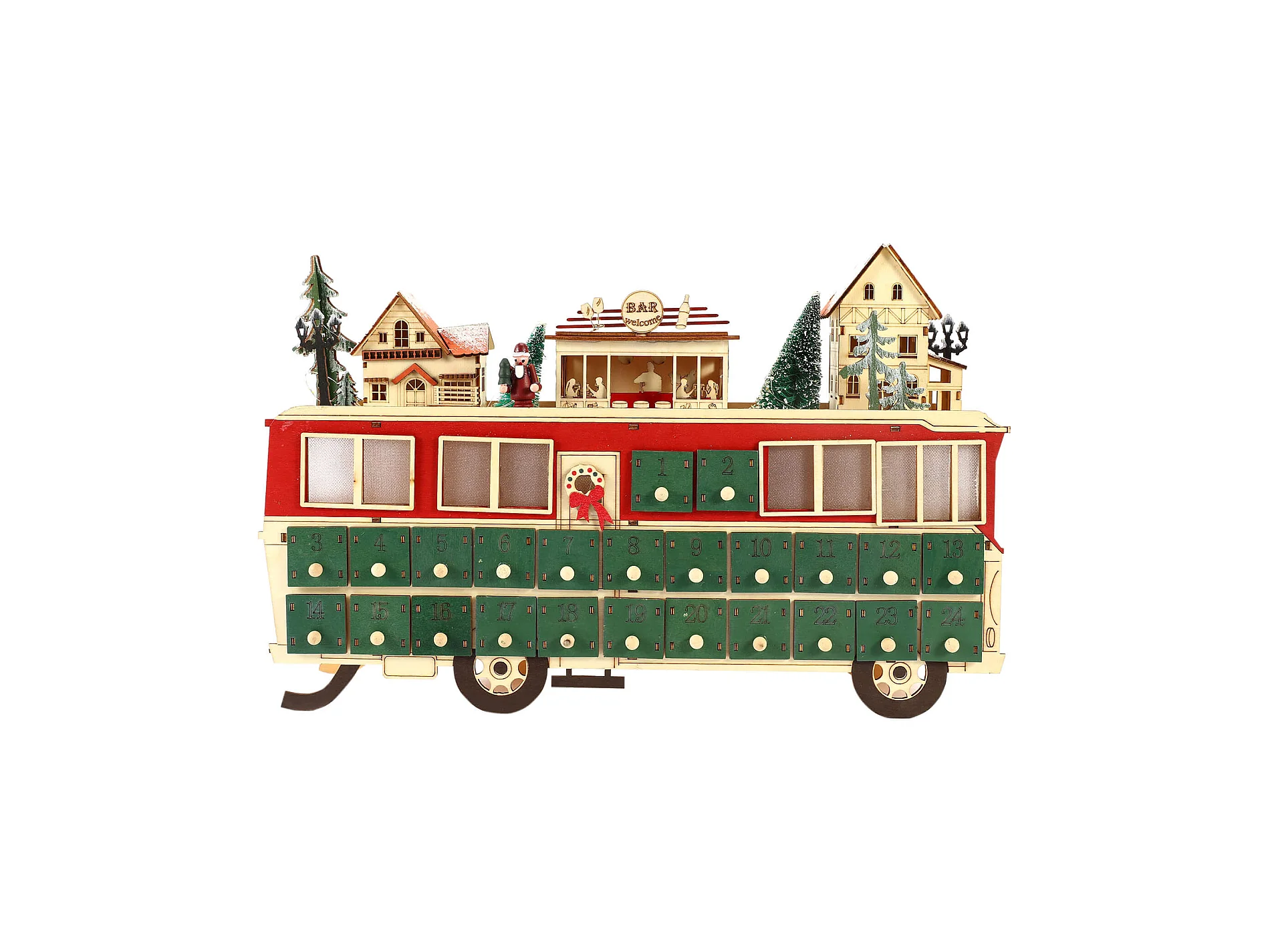 Calendrier de l'Avent en Forme de Train en Bois avec 24 Tiroirs et Lumières Idée de Cadeau