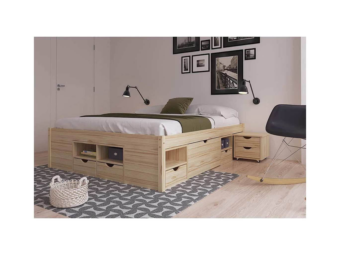 CALI - Lit 180x200cm multi-rangement Bois Massif