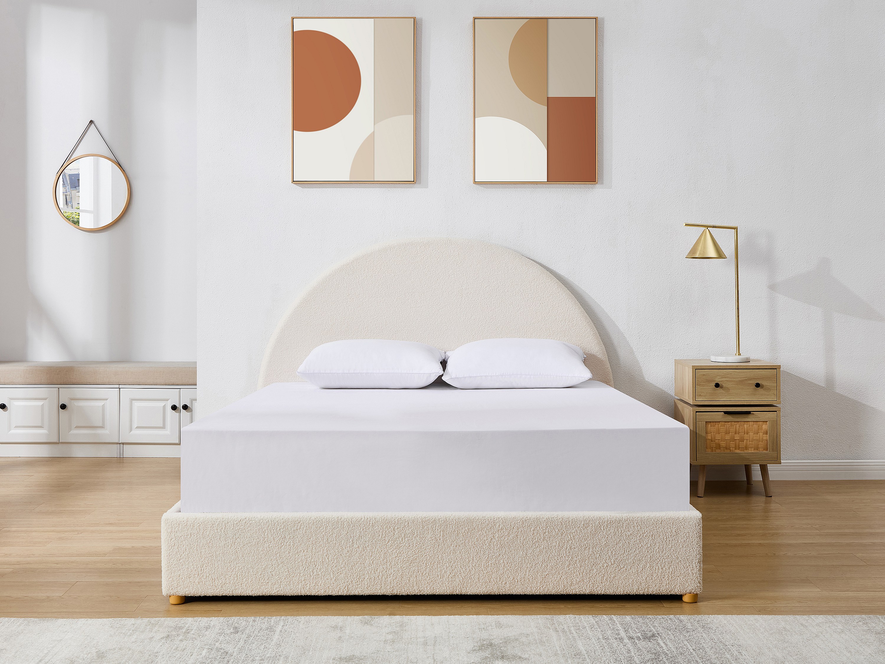 Lit coffre 180 x 200 cm - Tissu bouclette – Blanc + Matelas – CALIDORYA
