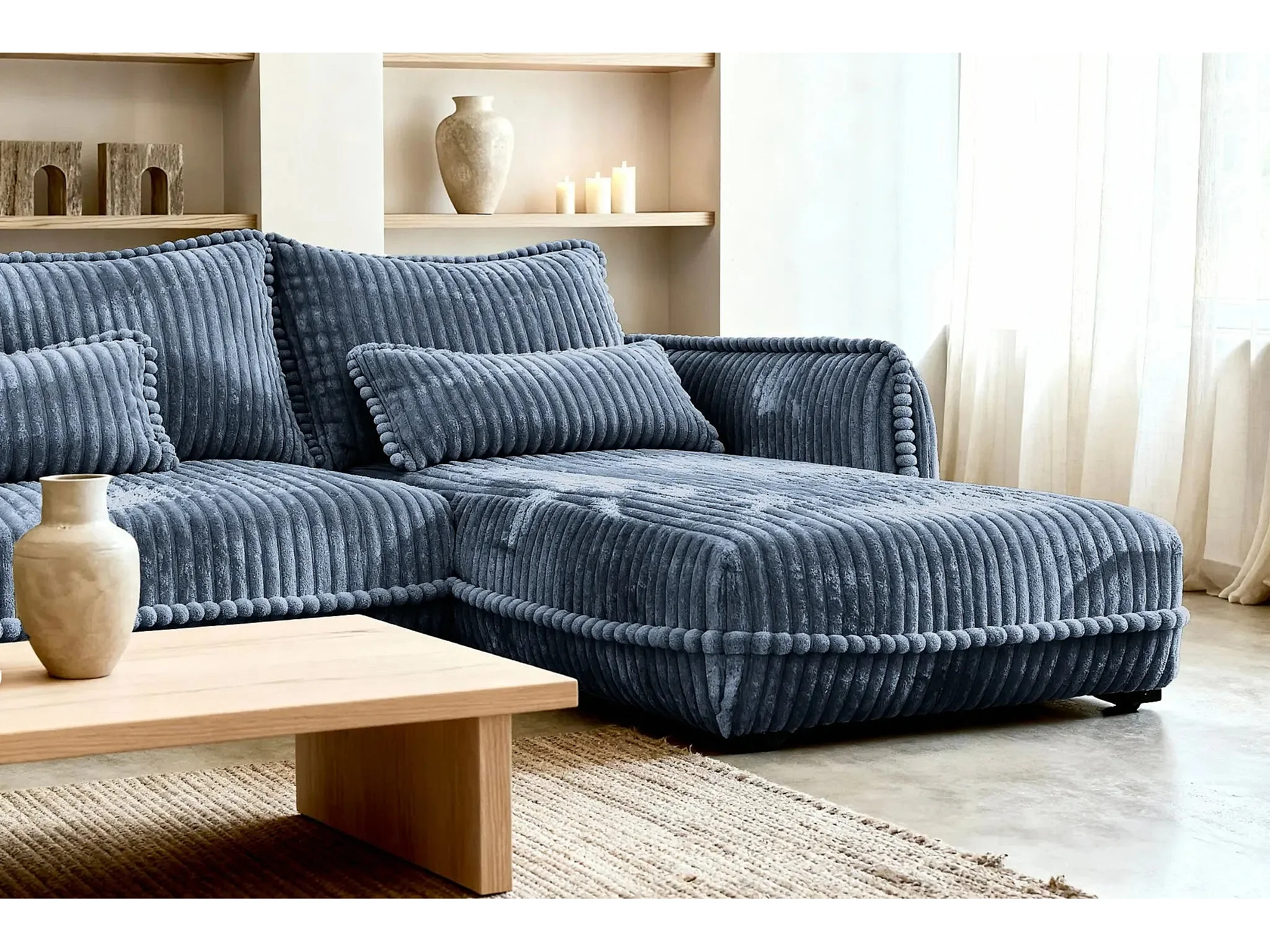 CALIE - Canapé d'angle velours côtelé 3 places - Bleu - Droit